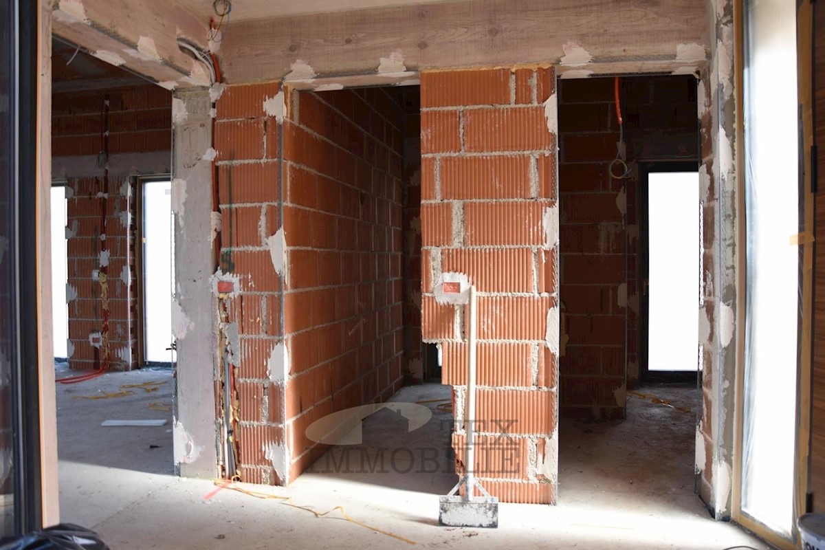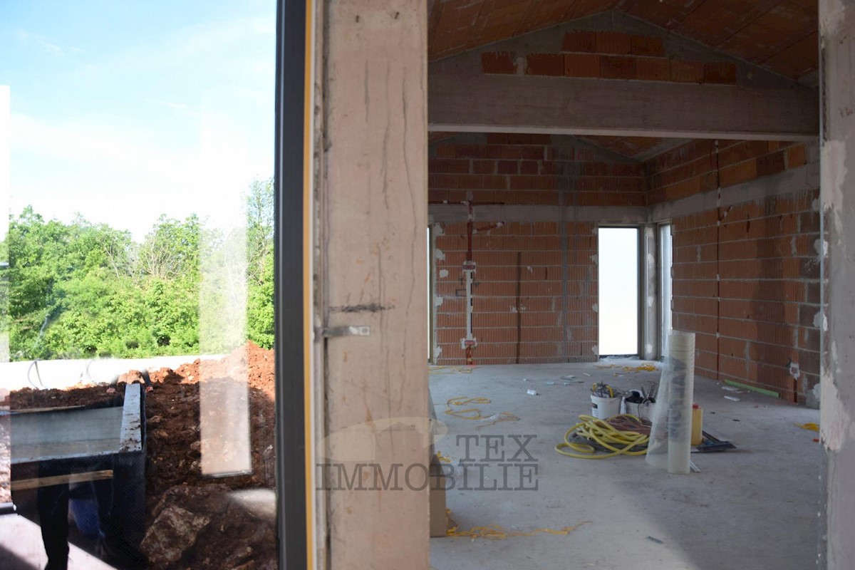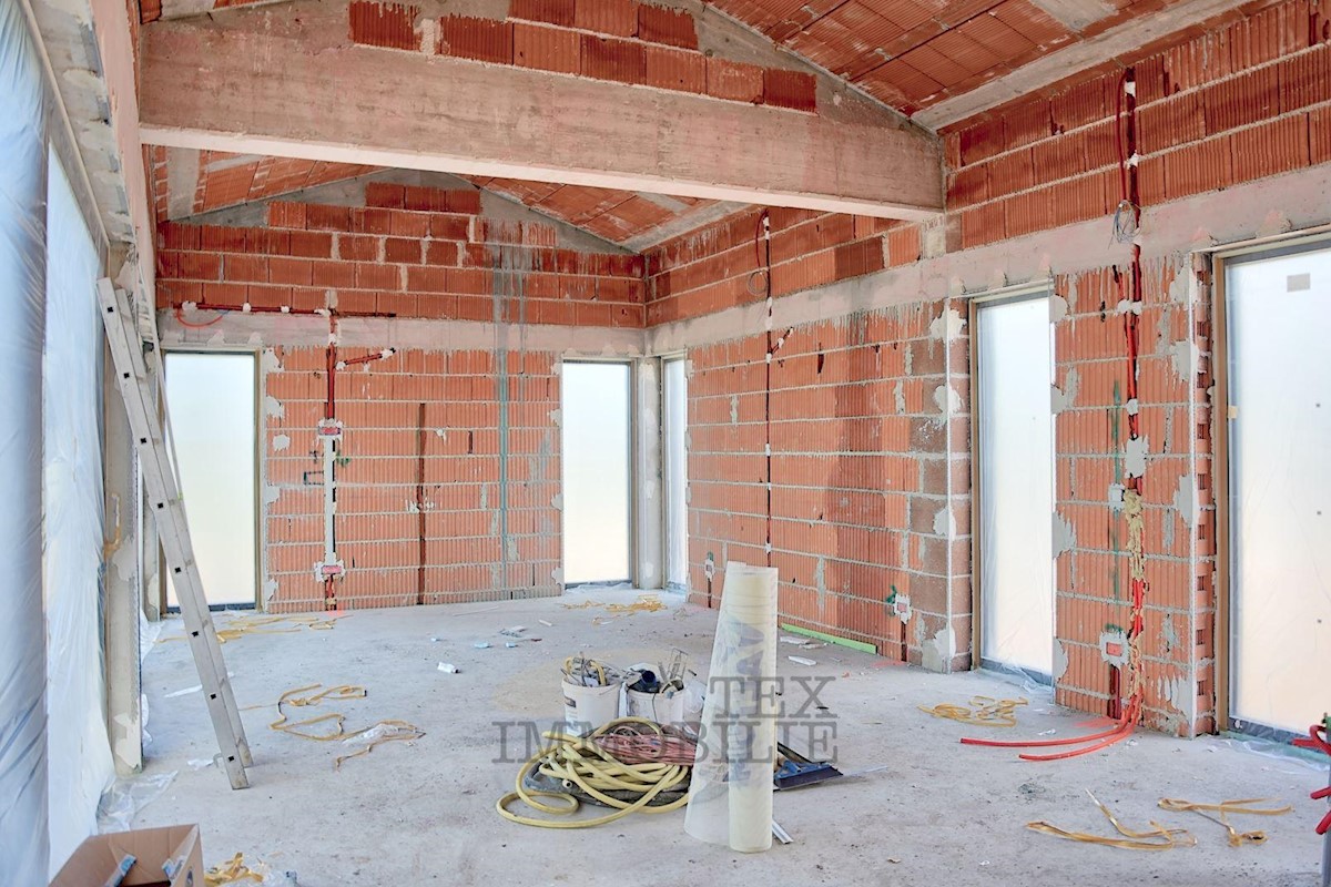 Just 4 km away from the coast of Poreč, this designer villa spanning a total area of 168 m2 over two floors, is nestled on a plot of land measuring 749 m2. The ground floor features a spacious entrance hallway connecting the living and sleeping areas. Two