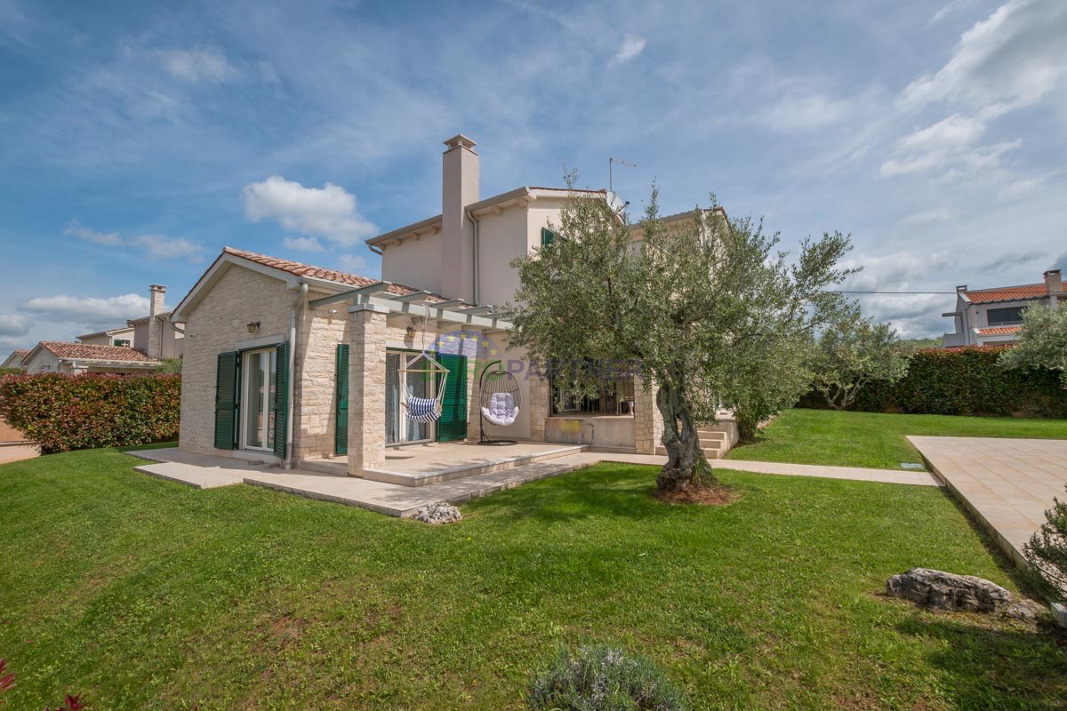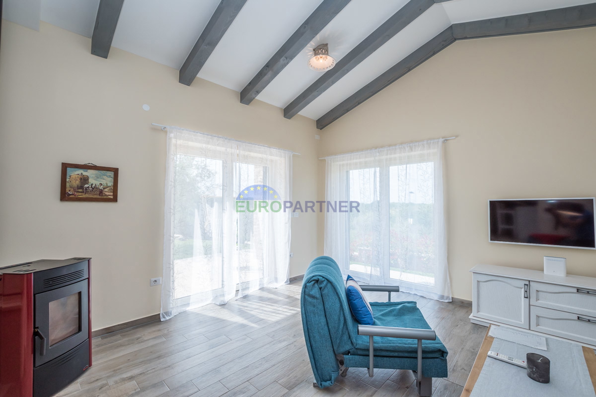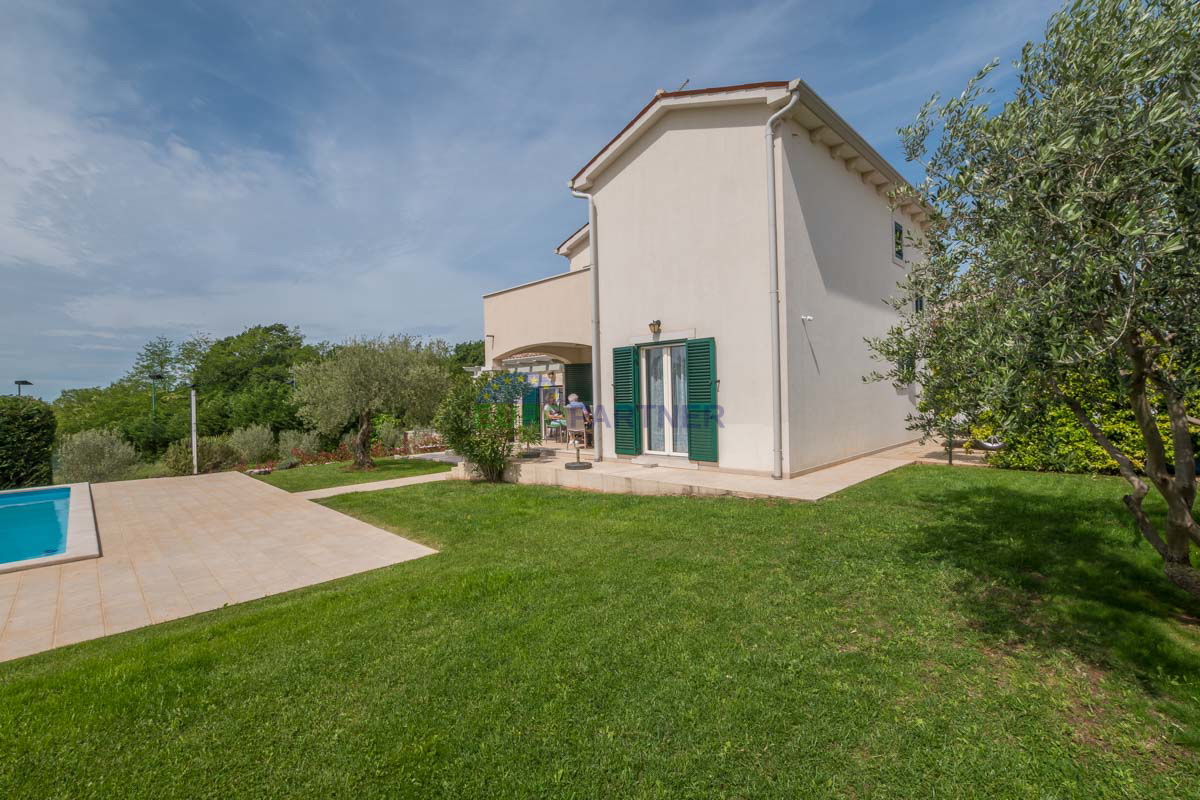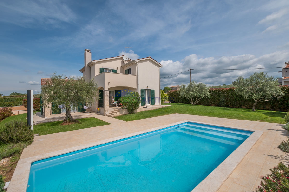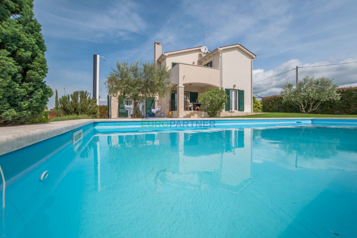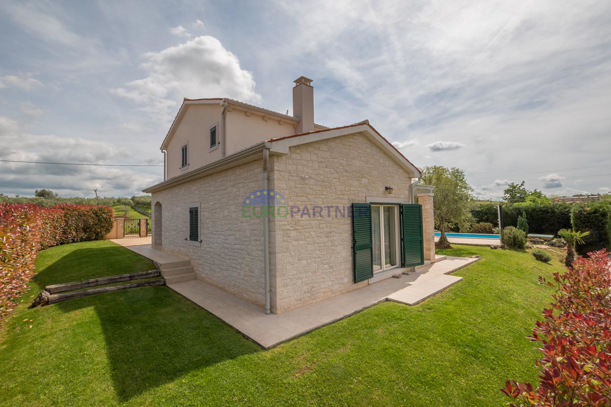 Poreč area, Mediterranean house with pool! This beautiful house with a swimming pool and a view of the vineyards is an ideal home for vacation or permanent residence. It is located in a quiet area only 14 km from Poreč and the Adriatic Sea, which provide