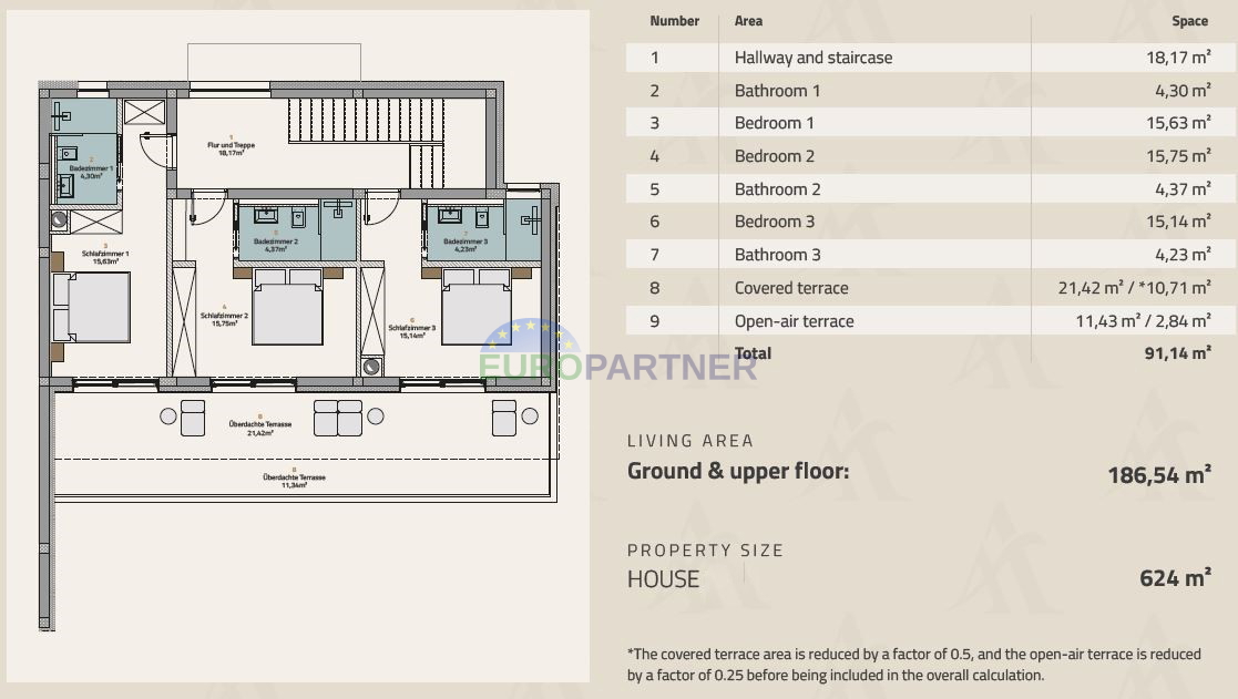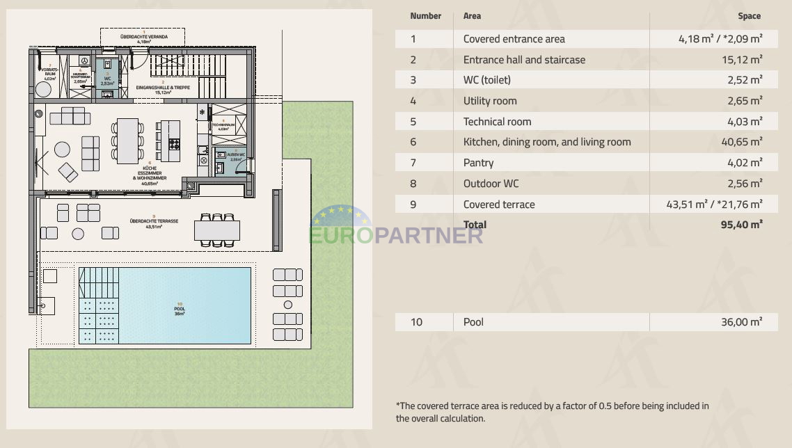 A beautiful semi-detached villa for sale in the vicinity of Poreč. The villa is located in a very well-known and sought-after settlement, 8 km from Poreč, and only 5 km from the sea and beaches. The settlement has all the essential facilities such as shop