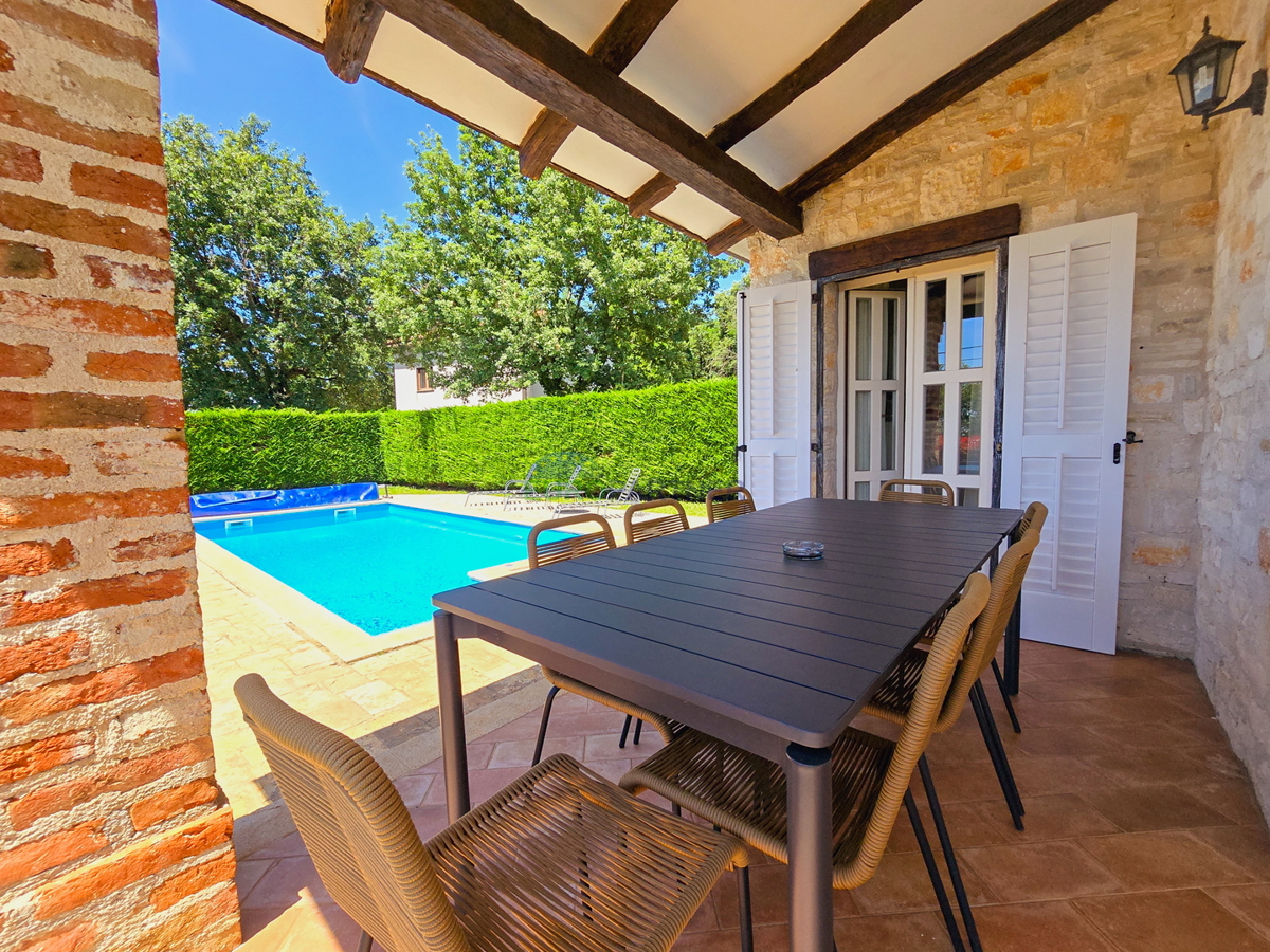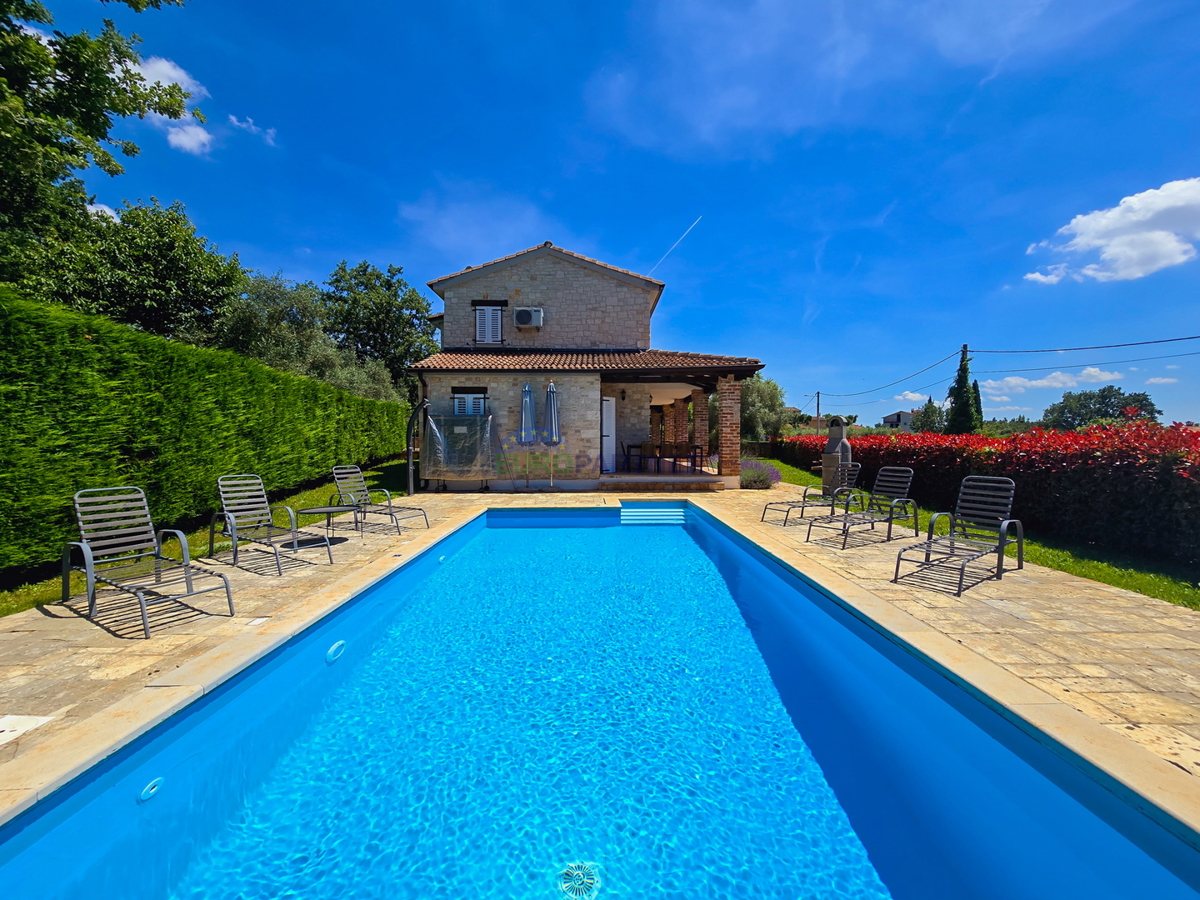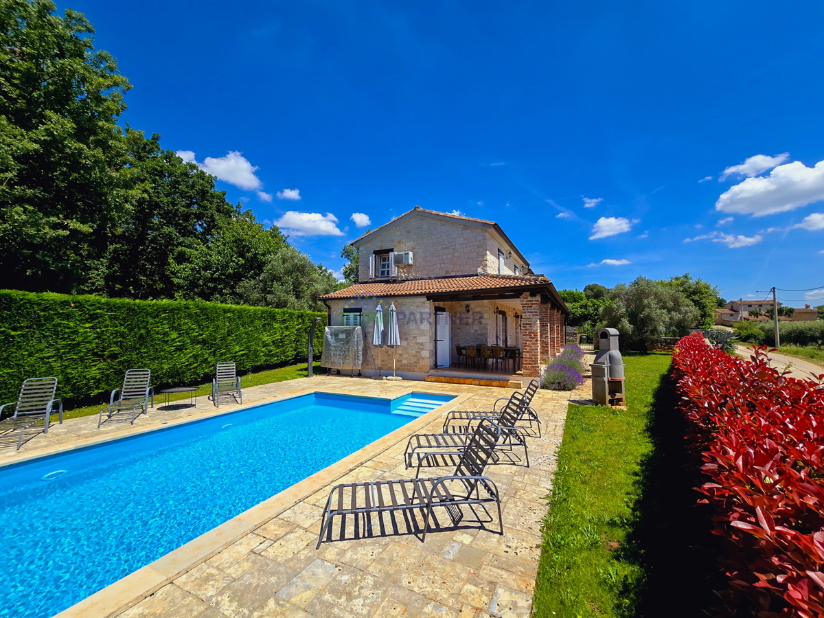 Porec area, stone house with pool and sea view