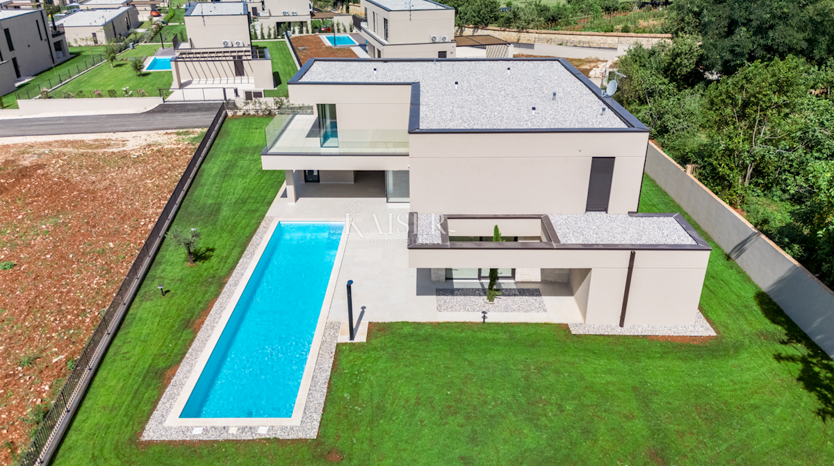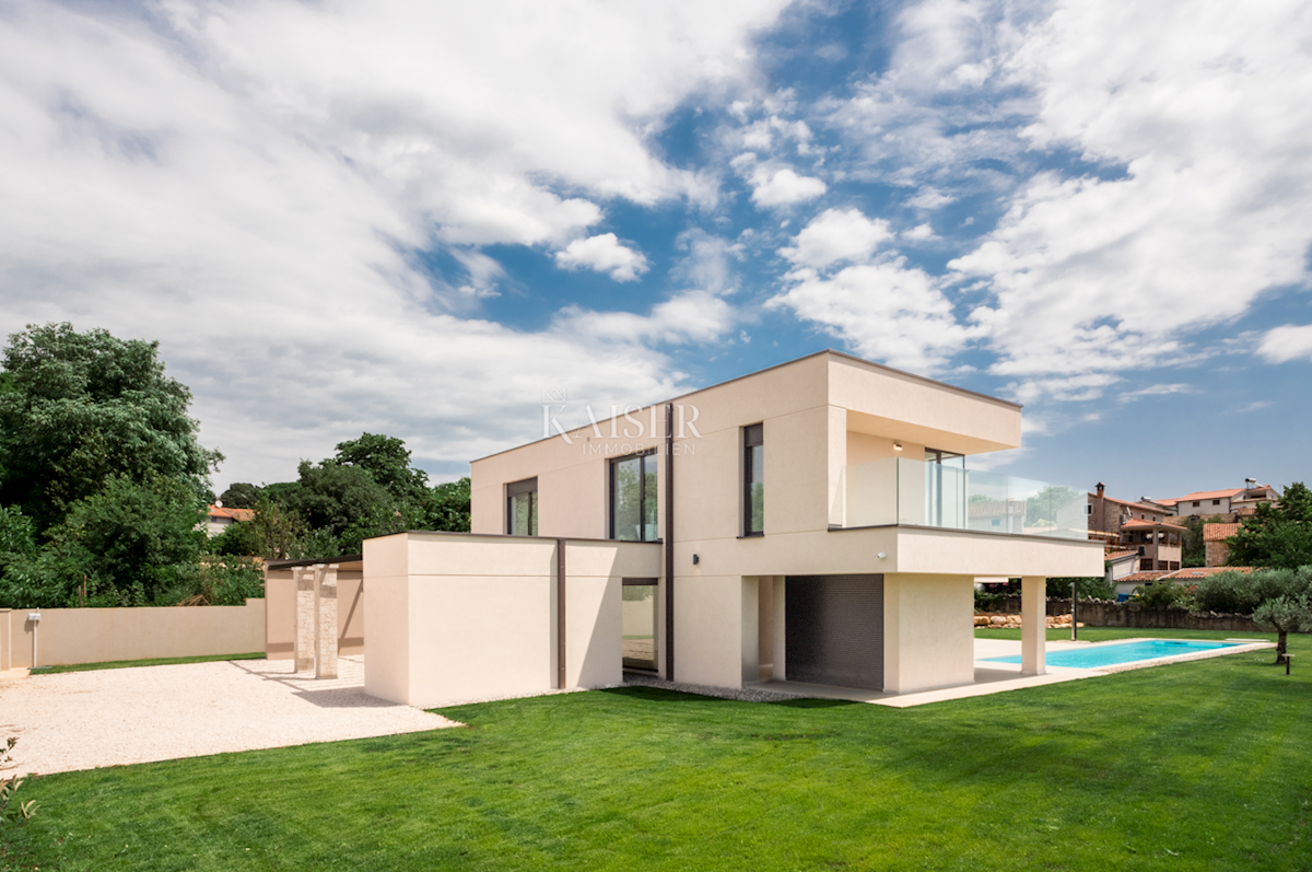 Kaiser Immobilien offers for sale a newly built luxury villa with a wonderful sea view. On the west coast of Istria, in an enviable location surrounded by vineyards and olive groves of the best Istrian winemakers and olive growers, near local producers of