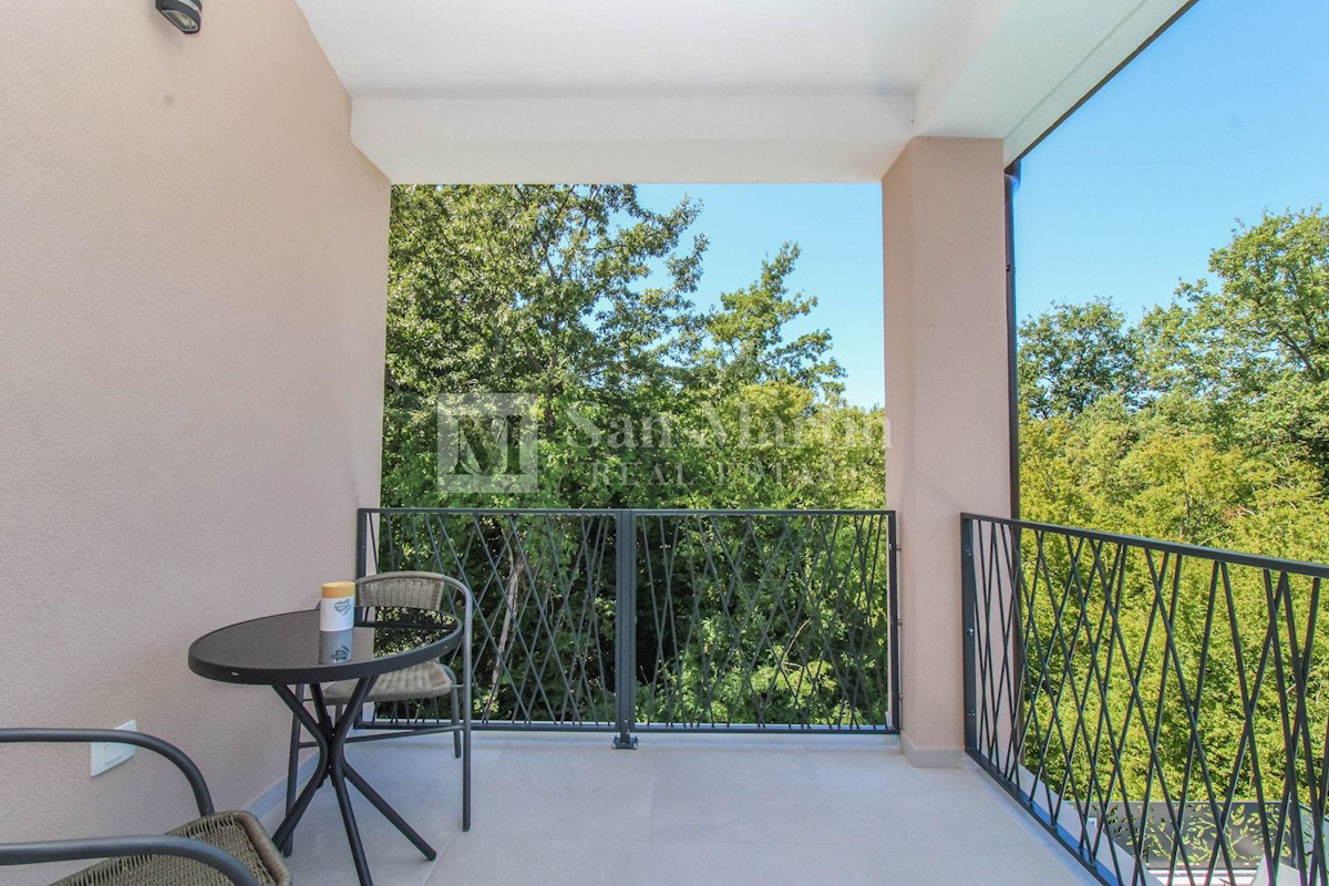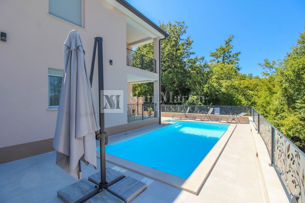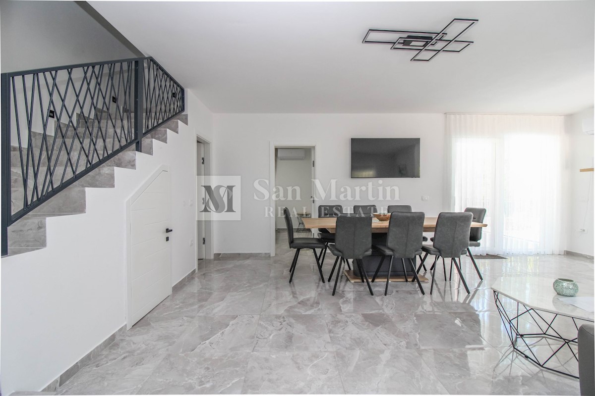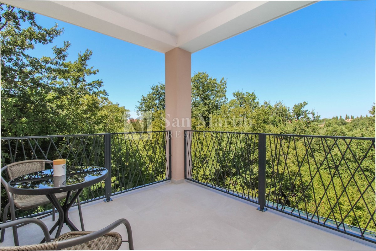 Poreč, surroundings - quality new construction with a view of nature This semi-detached house of quality construction is for sale in a quiet place, which is located on a plot of 300 m2 and its total area is approx. 160 m2. The house consists of two floo