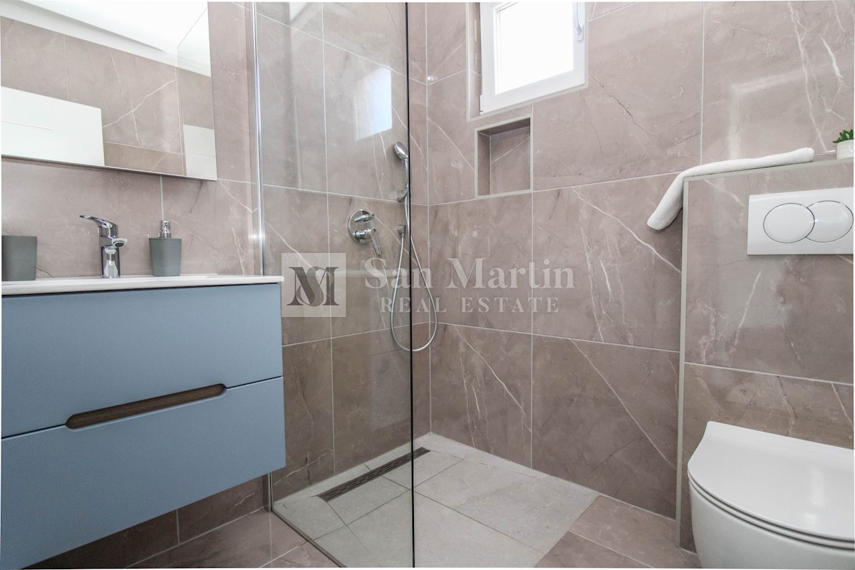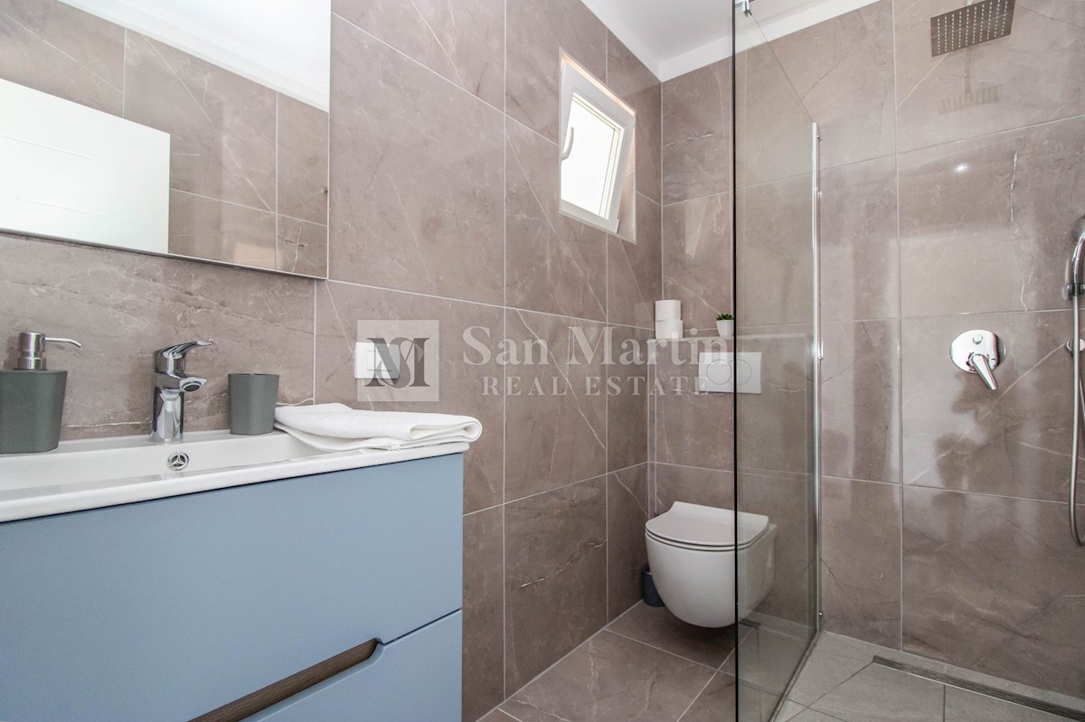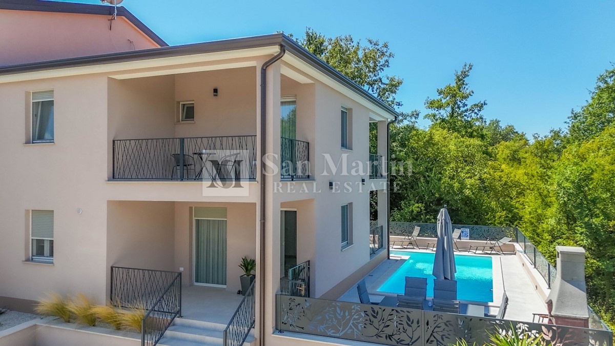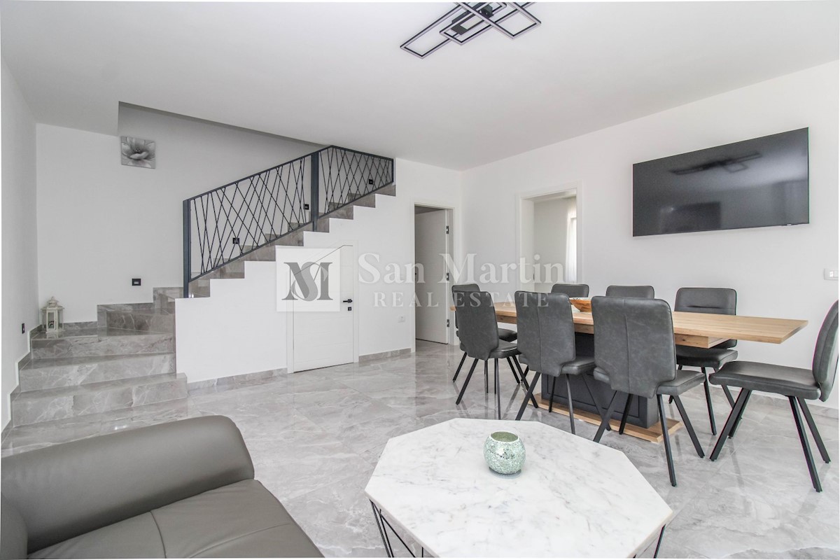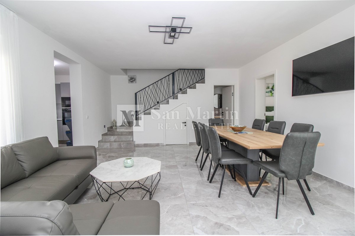 Poreč, surroundings - quality new construction with a view of nature This semi-detached house of quality construction is for sale in a quiet place, which is located on a plot of 300 m2 and its total area is approx. 160 m2. The house consists of two floo