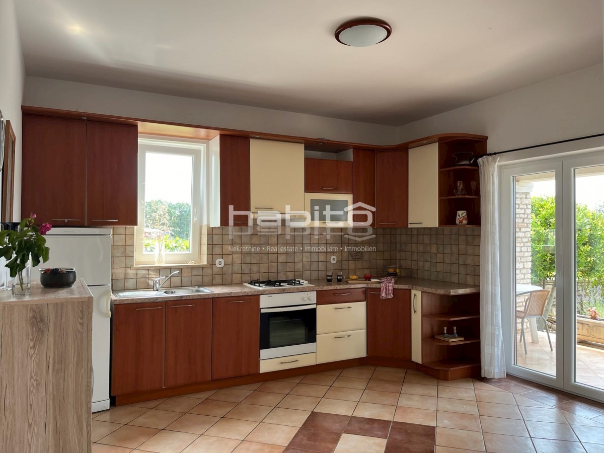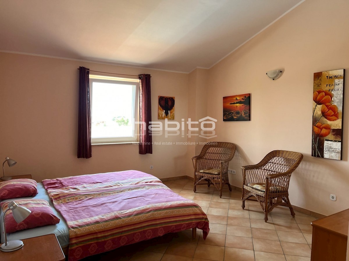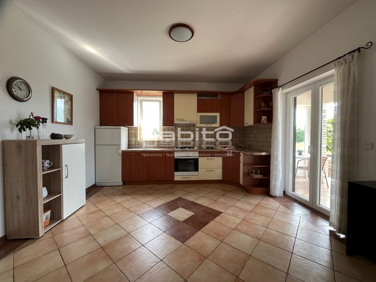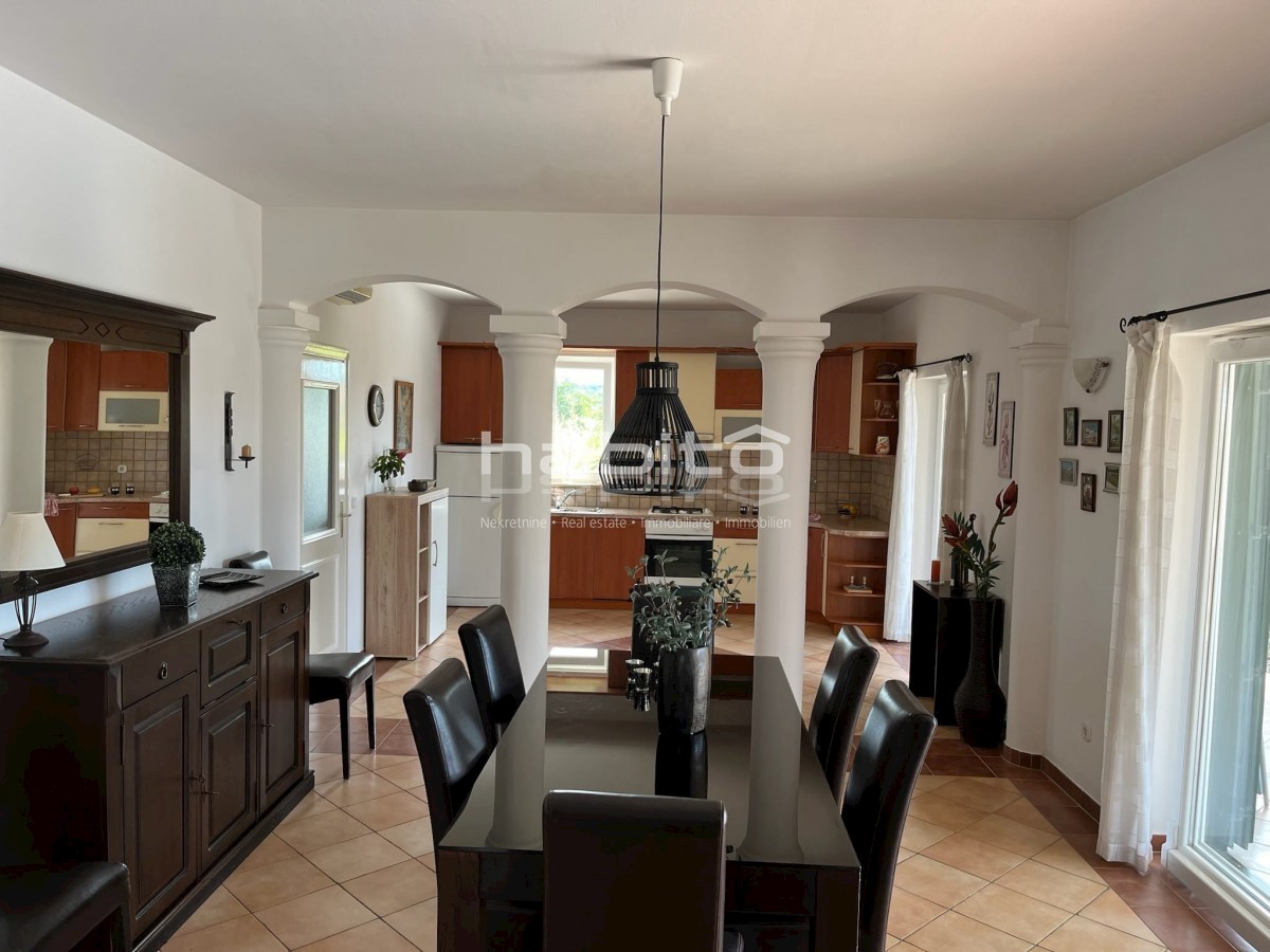 Elegant Mediterranean villa located in a peaceful setting in a small Istrian village, 5 km from the sea. This spacious 208 m² house is spread over two floors and offers everything you need for a comfortable life. A private pool surrounded by a Mediterrane