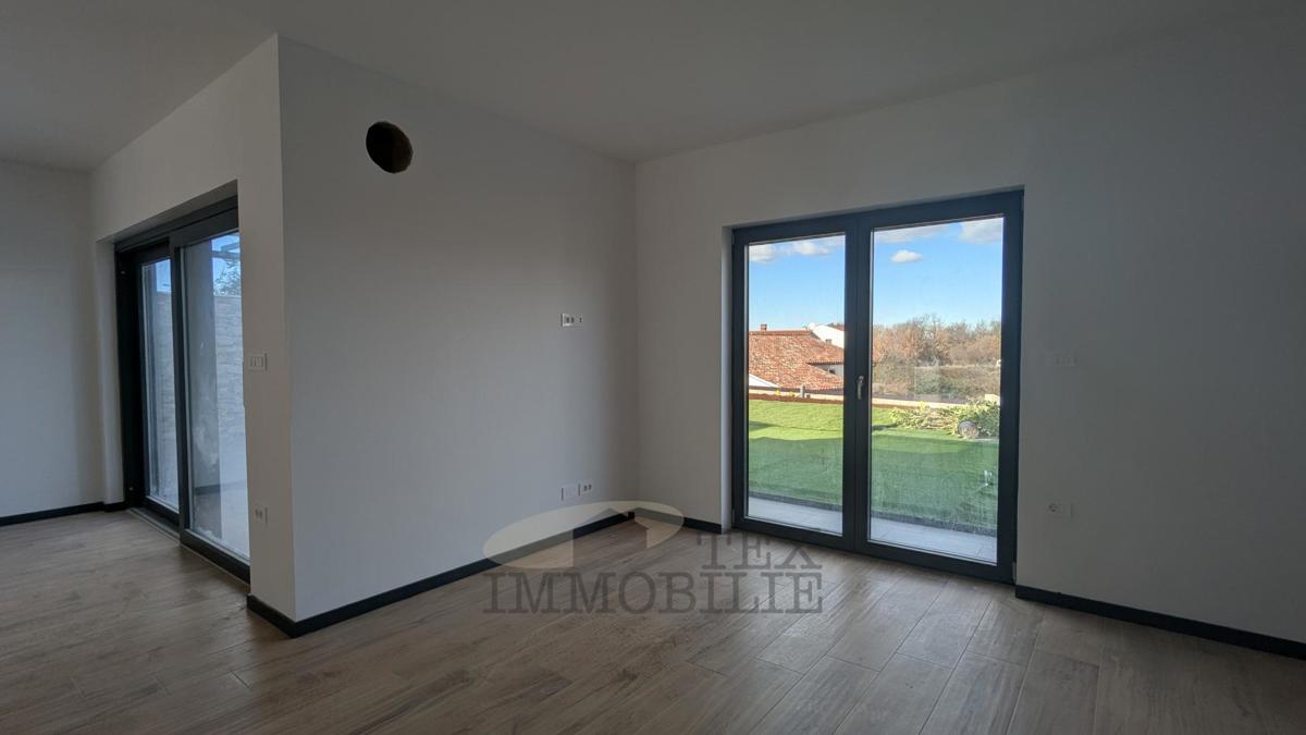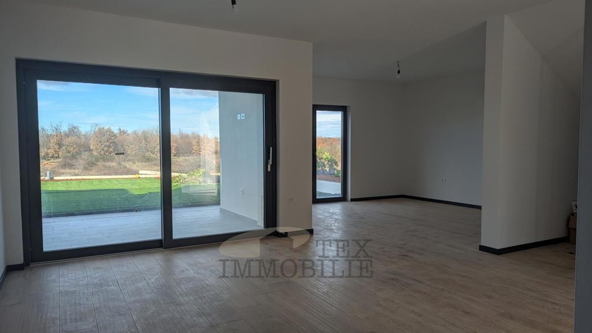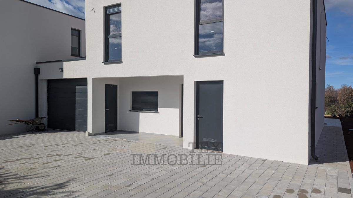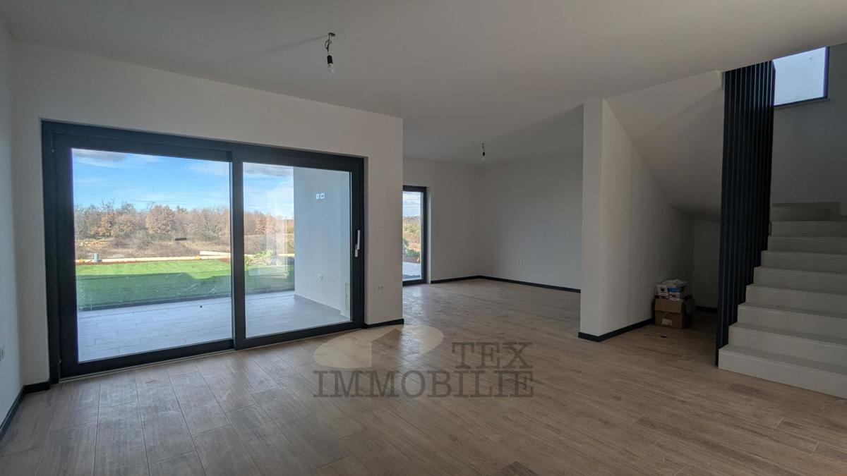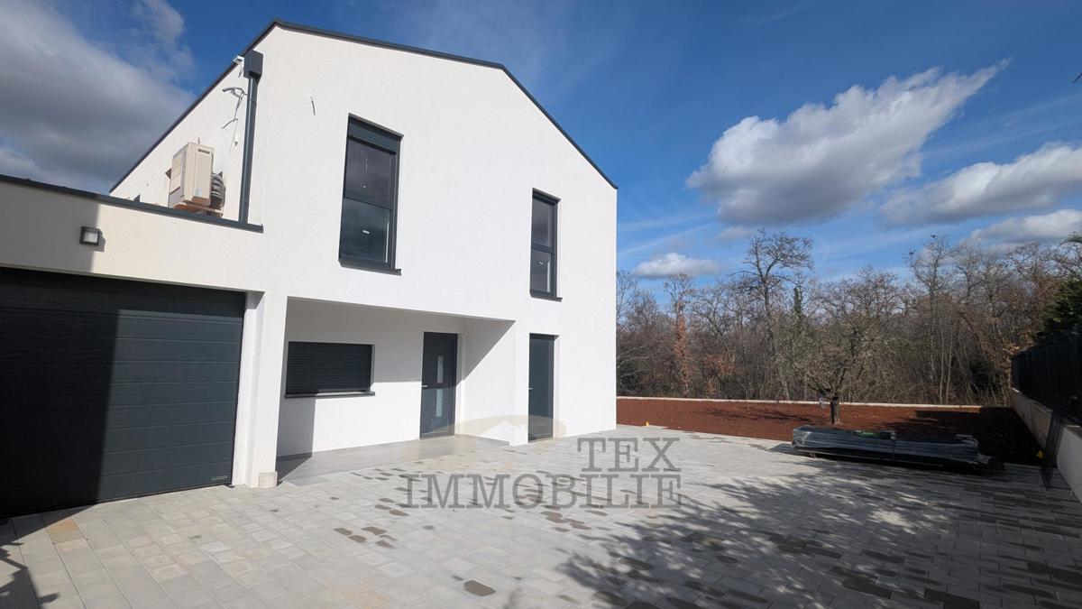 Just 5 km away from the coast of Poreč, this new semi-detached house is situated on a spacious plot of 650 m². With a total area of 140 m², this modern property offers everything needed for comfortable and luxurious living. The ground floor of the house i