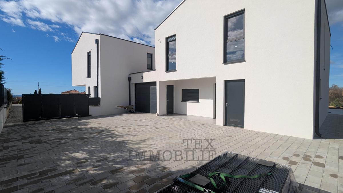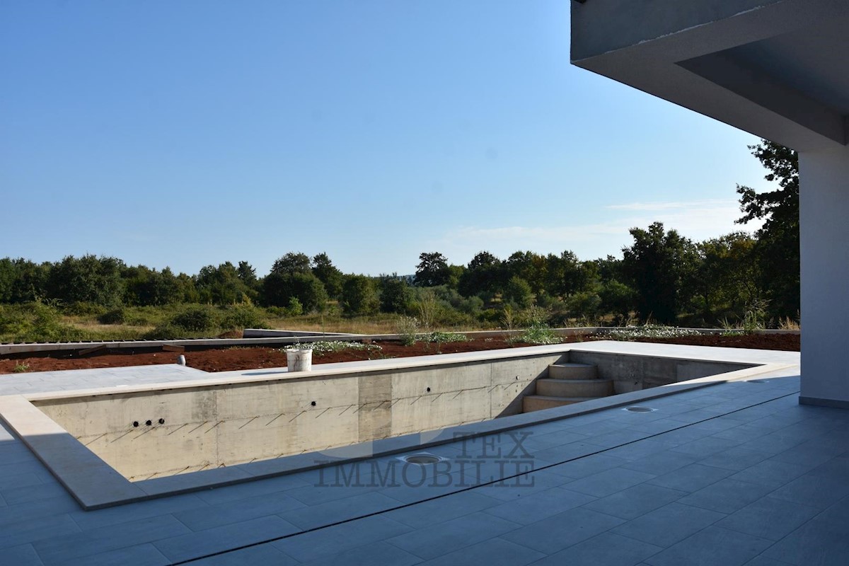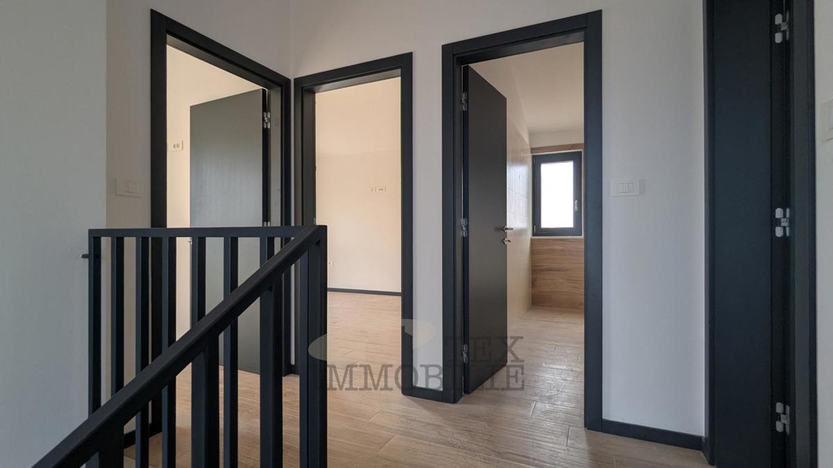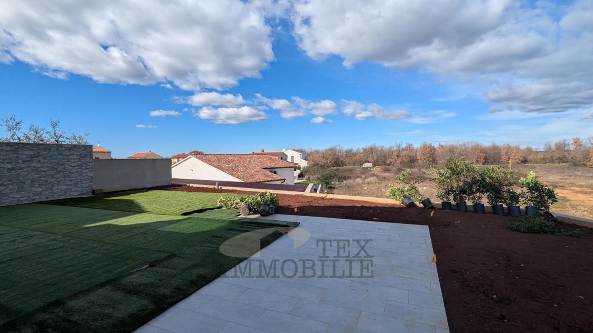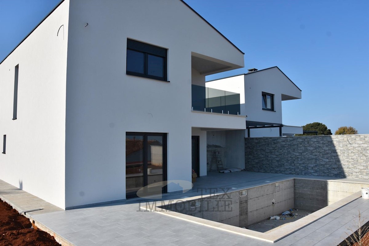 Just 5 km away from the coast of Poreč, this new semi-detached house is situated on a spacious plot of 650 m². With a total area of 140 m², this modern property offers everything needed for comfortable and luxurious living. The ground floor of the house i