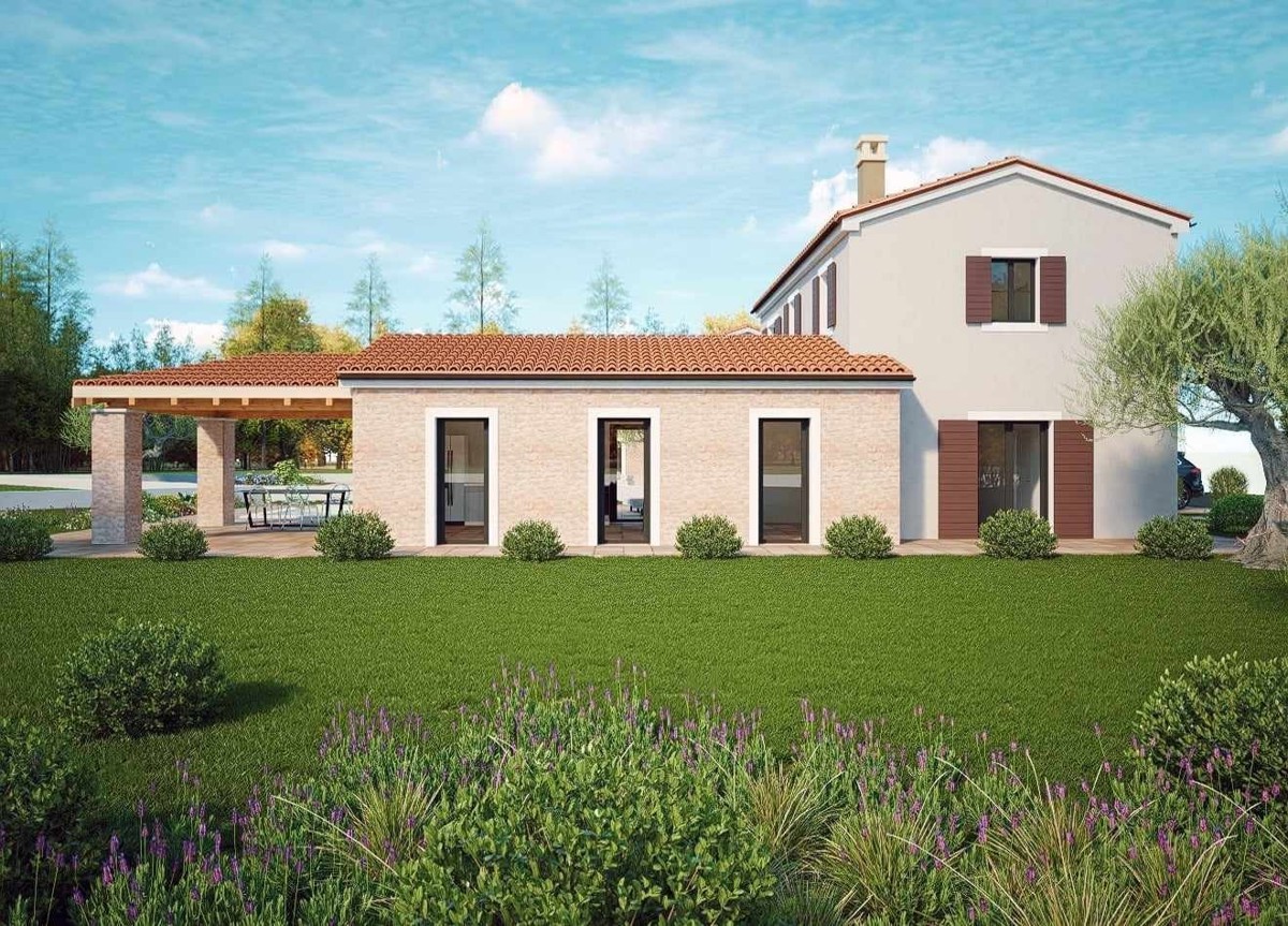 A modern villa with a swimming pool for sale in the vicinity of Poreč with a beautiful view of the sea, in a place with excellent infrastructure - approx. 8 kilometers from the sea and 12 kilometers from Poreč. The area of the plot is 985 m2 - the livin