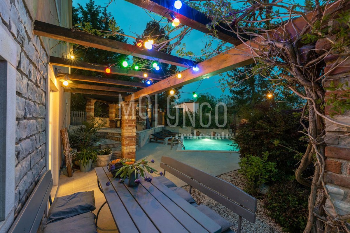 Near Poreč, we are selling a house with a swimming pool. The house was completely renovated in 2023. It consists of a kitchen, dining room, living room, four bedrooms, three bathrooms. There is a 6x4 m2 swimming pool, barbecue and private parking on the