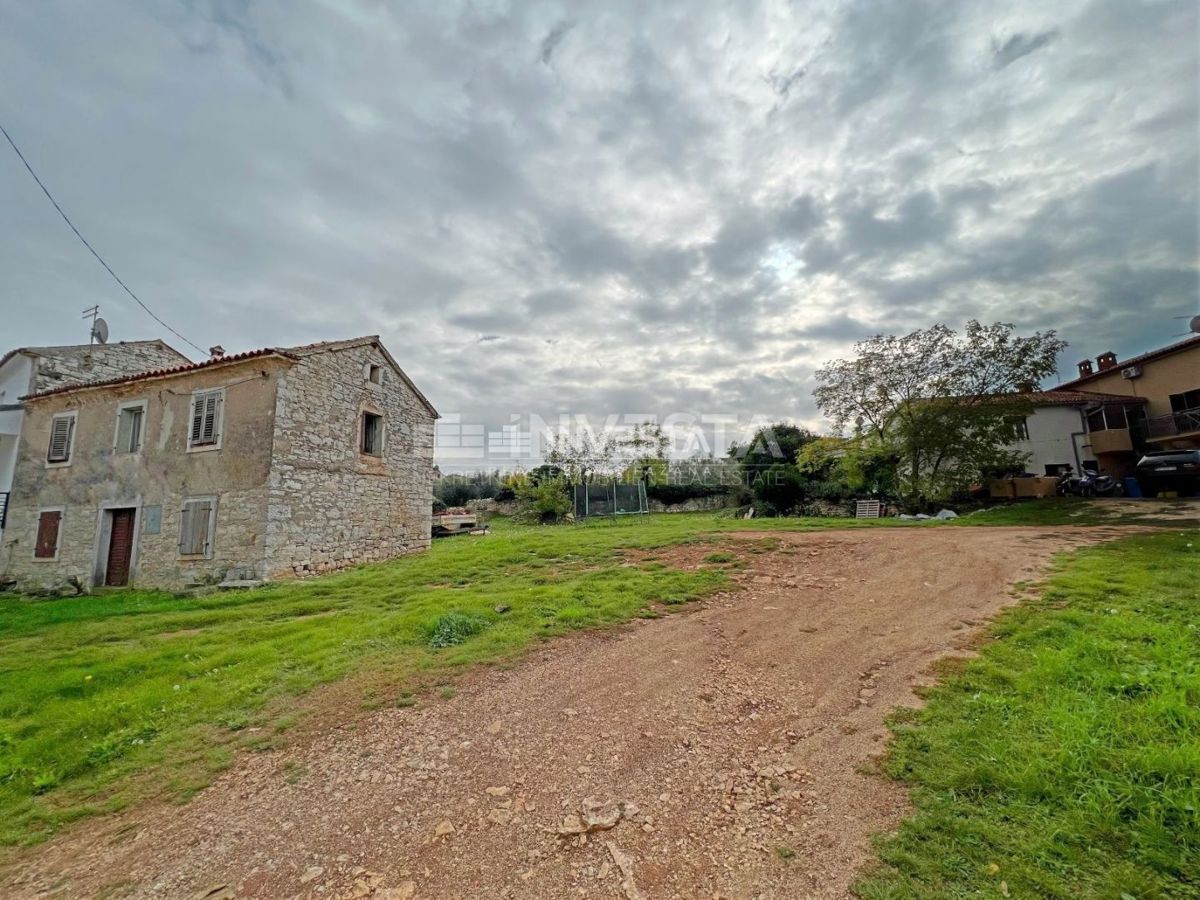 In the vicinity of Poreč, 1300 meters from the sea, this charming stone Istrian house for renovation is located. It is situated in a quiet settlement and has an area of 80 m², spread over two levels. The house is built on a plot of 1100 m², which is fully