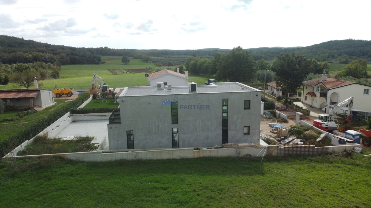 A beautiful modern villa for sale, 7 km from the center of Poreč. The villa is located in a very quiet settlement, and in the immediate vicinity there are modern villas, olive groves, vineyards and beautiful Istrian hills. The villa has a living area of