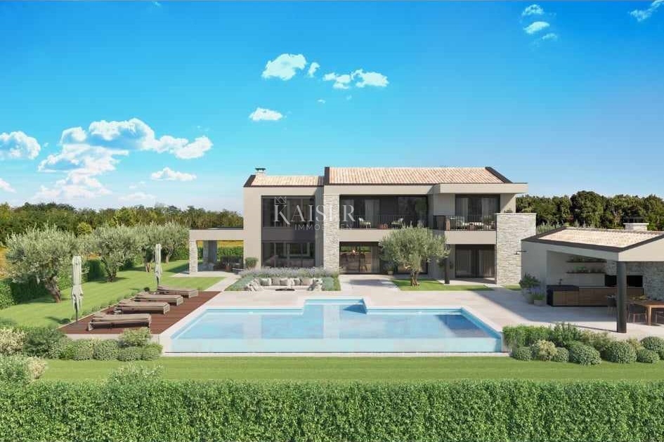 Kaiser Immobilien offers for sale a beautiful, modern and luxurious villa with an impressive sea view. Only 15 km from the city of Poreč, in a small rural area of Istria, is located this premium modern villa that beckons with its beauty. Only a 15-minute