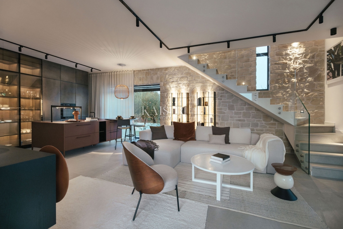 Kaiser Immobilien offers for sale a new and magnificent villa in a wonderful quiet location, only a few kilometers from the city of Poreč and the first beaches. The villa is located in a small Istrian rural area, where peace and relaxing everyday life rei