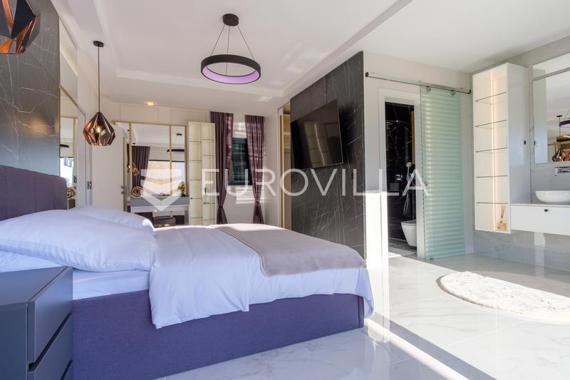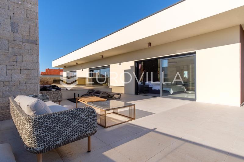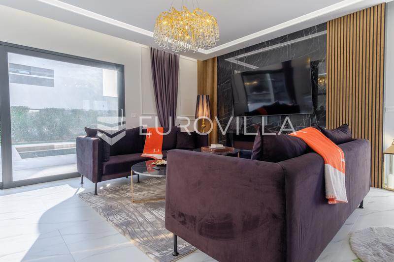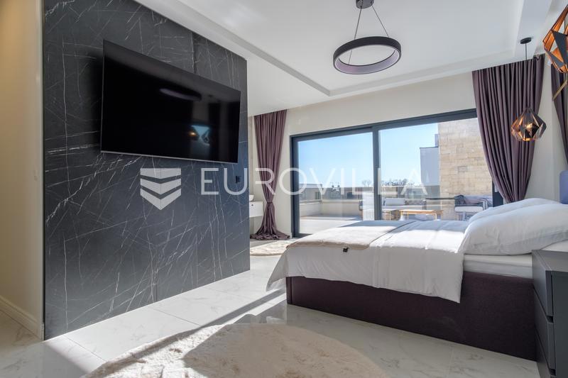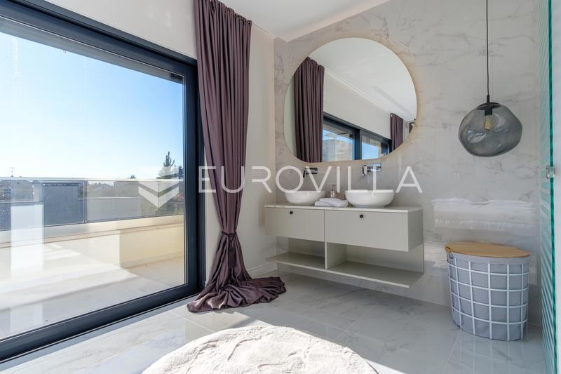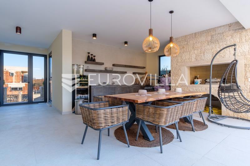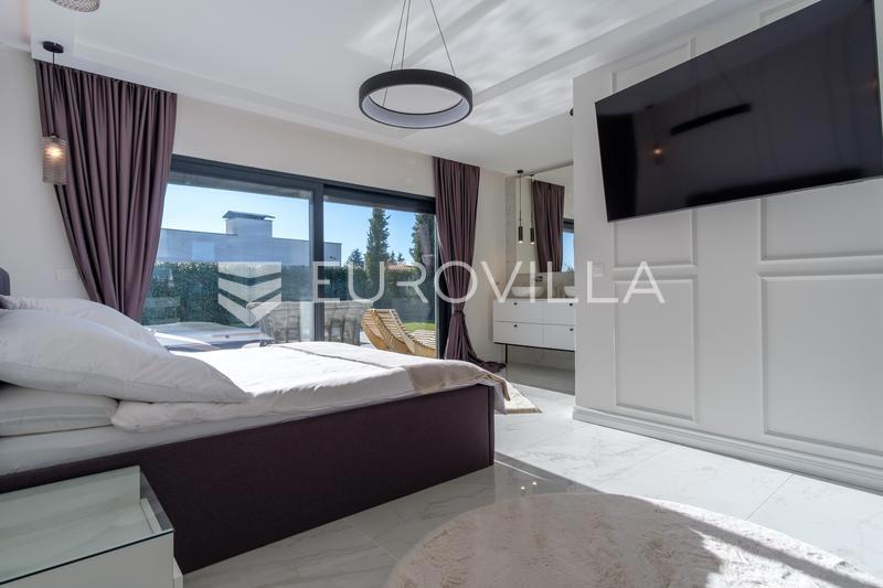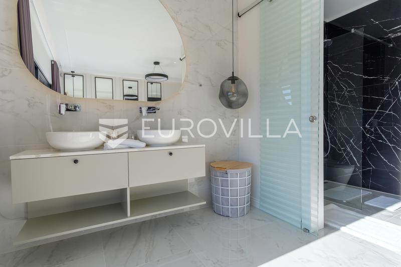 In an extraordinary location, not far from the center of Poreč, there is this modern and luxuriously decorated villa with a heated pool, situated on a beautifully landscaped garden. The villa is spread over two floors and offers superb comfort: Ground flo
