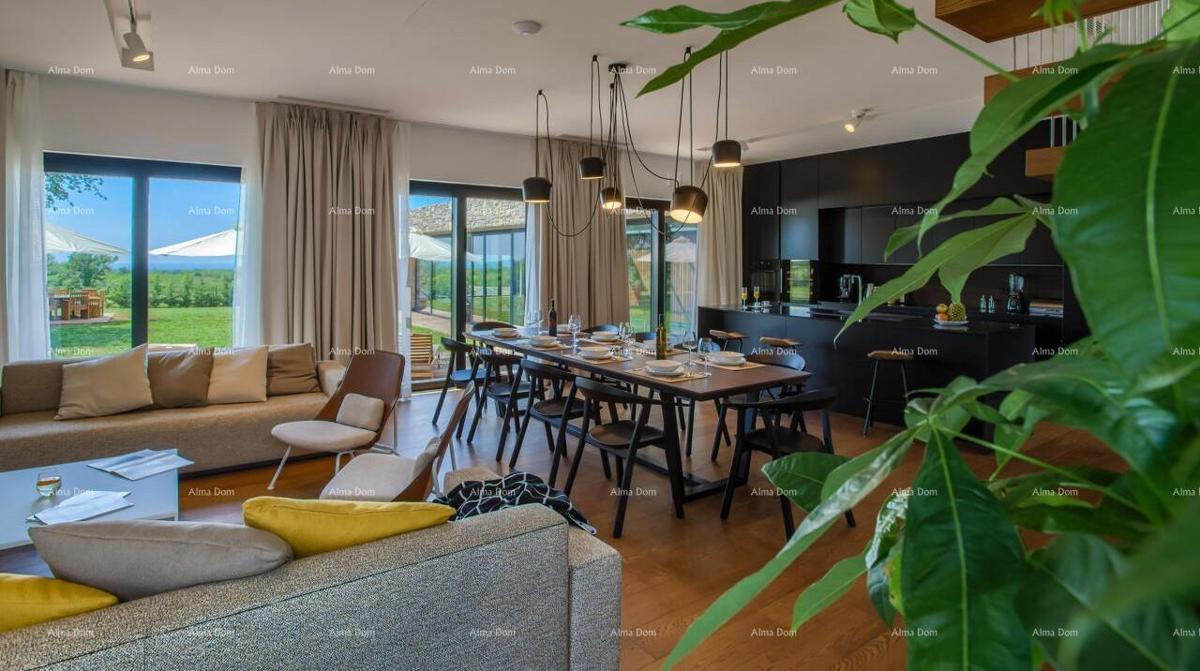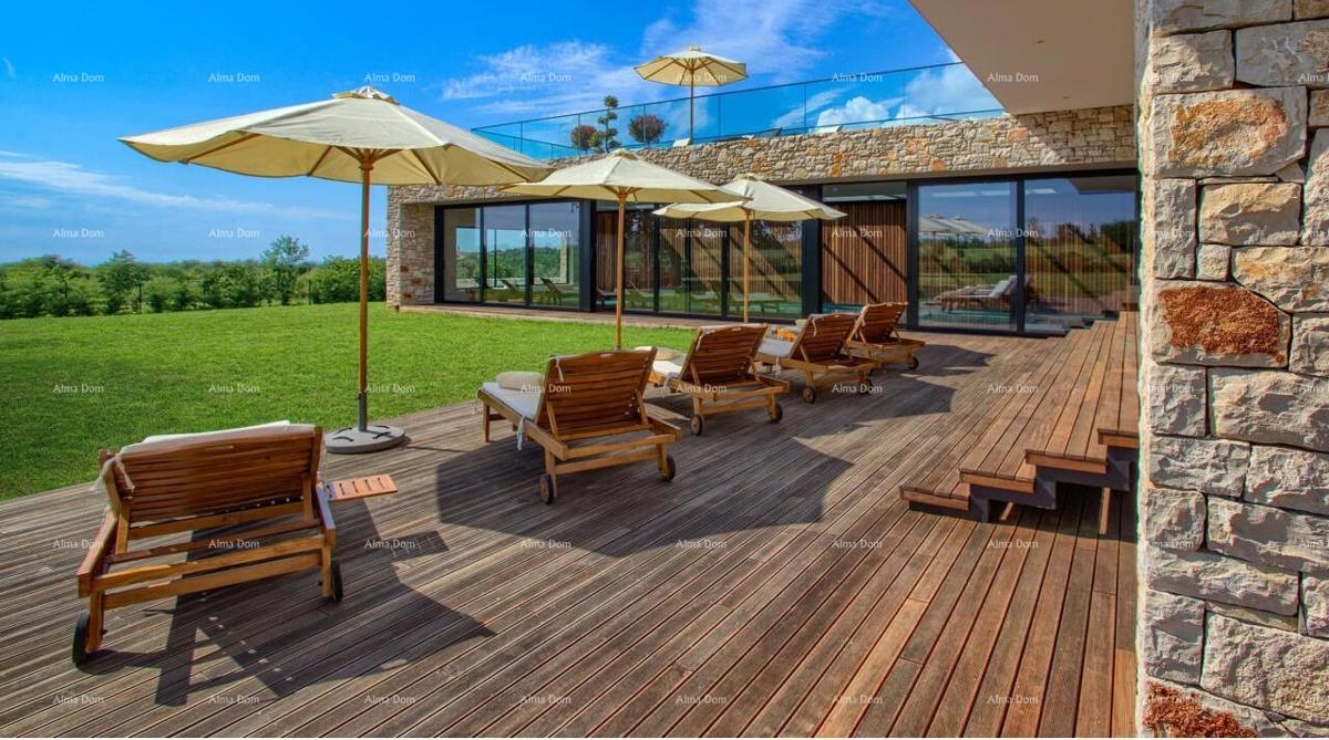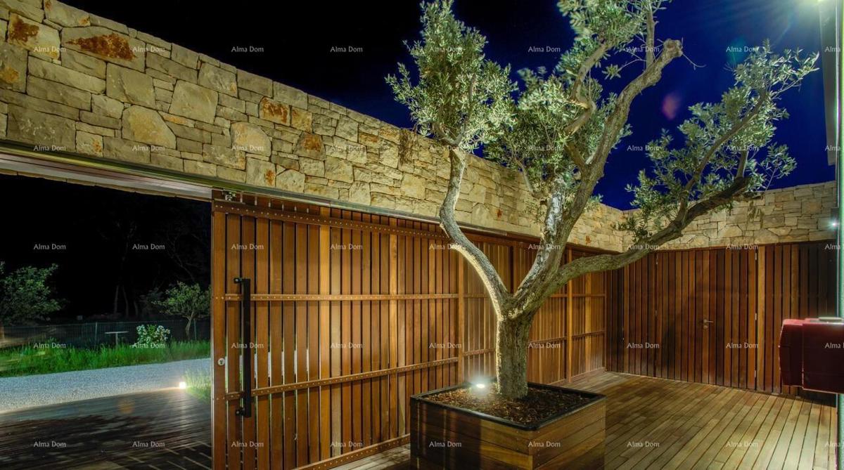 We are selling a modern villa located near Poreč. The villa is located in a very quiet village, practically without permanent residents, on a large, completely private, fenced and peaceful plot. This beautiful villa consists of a ground floor and an upper