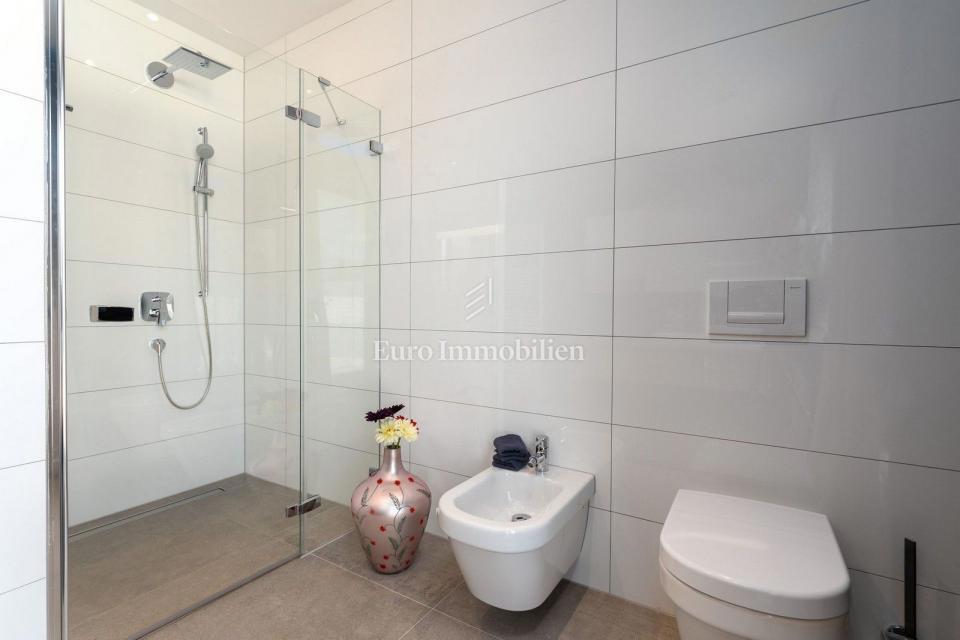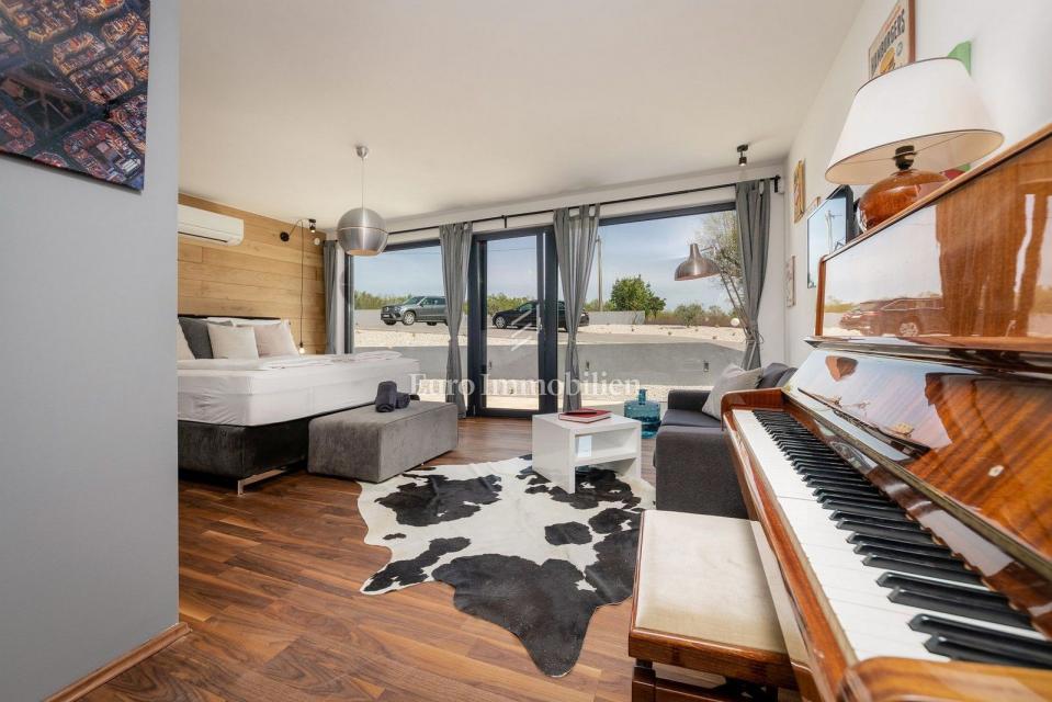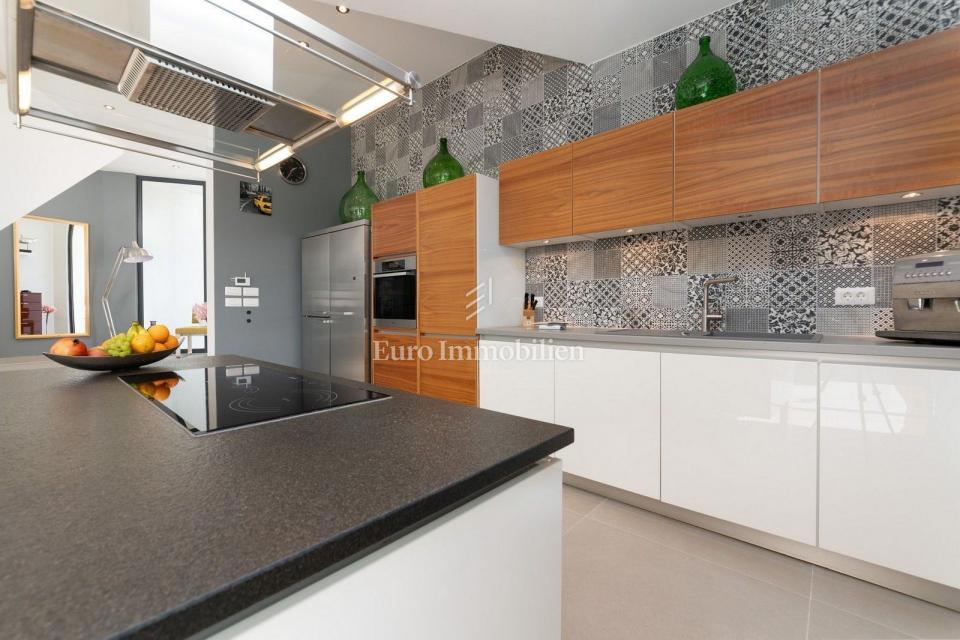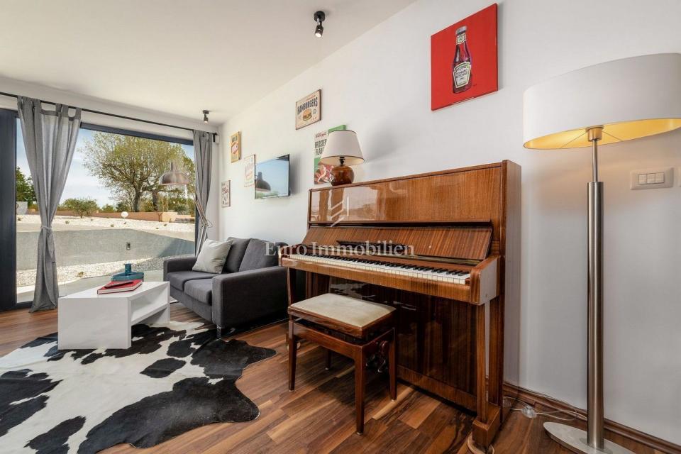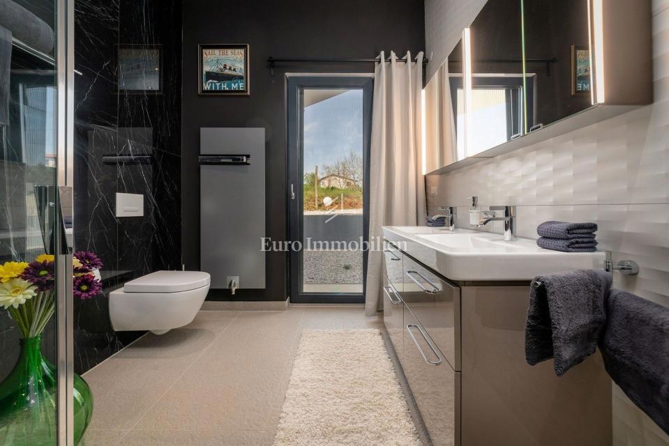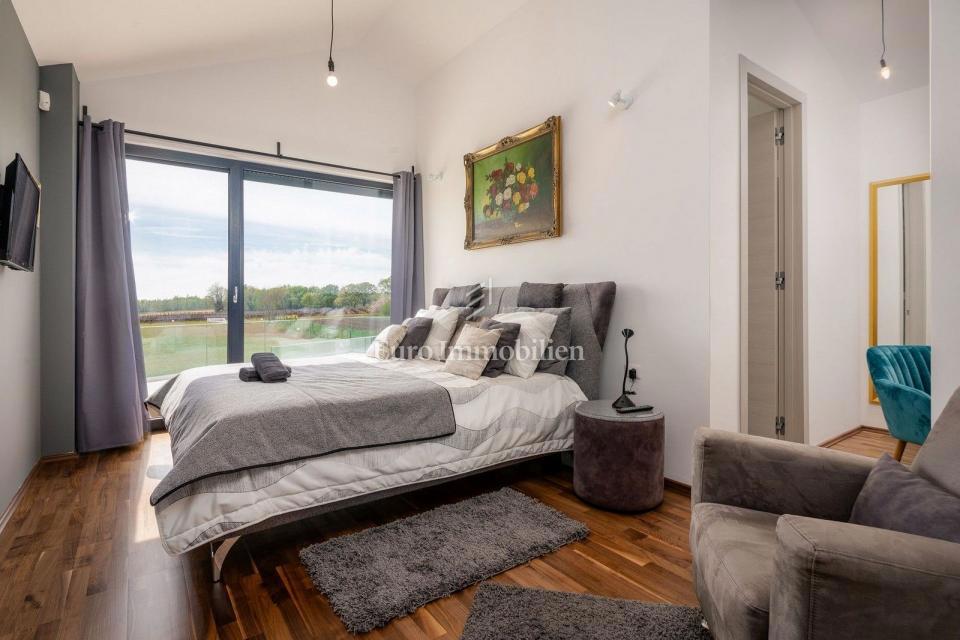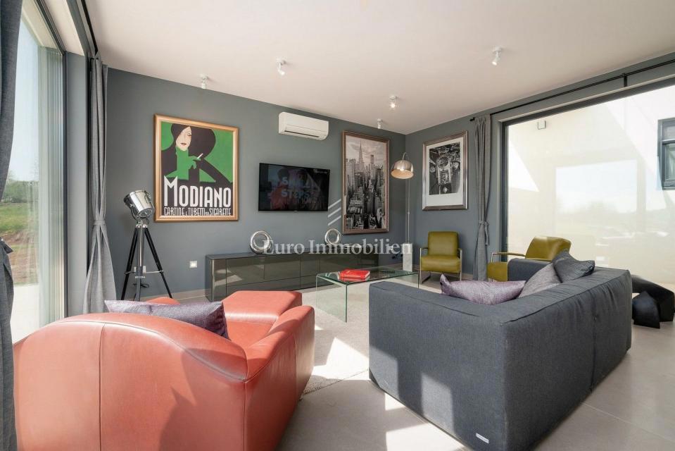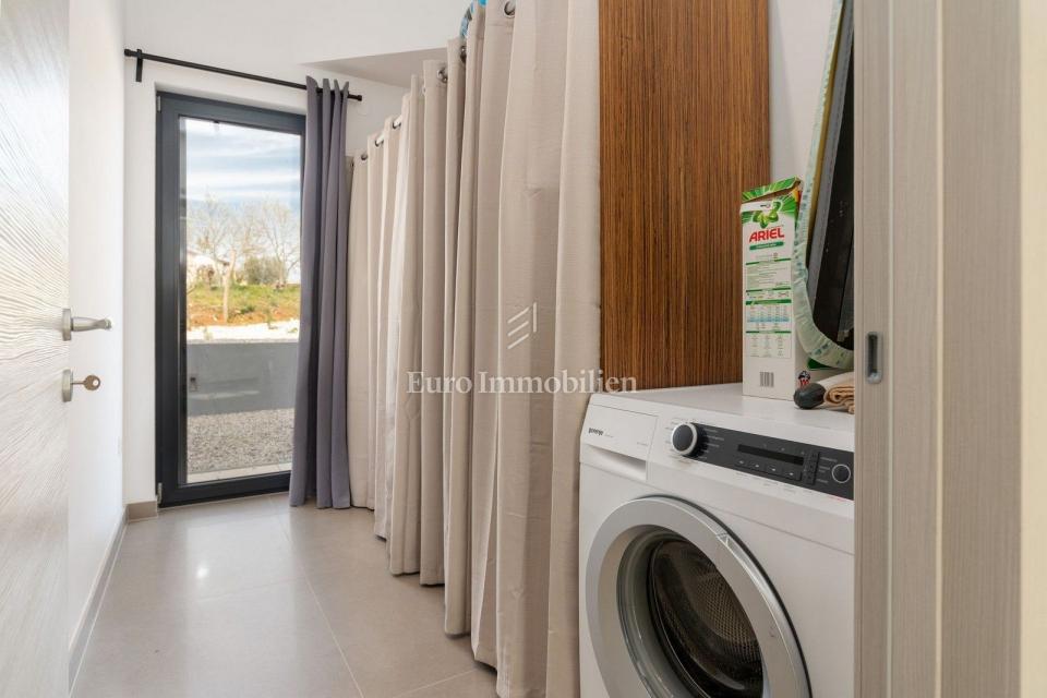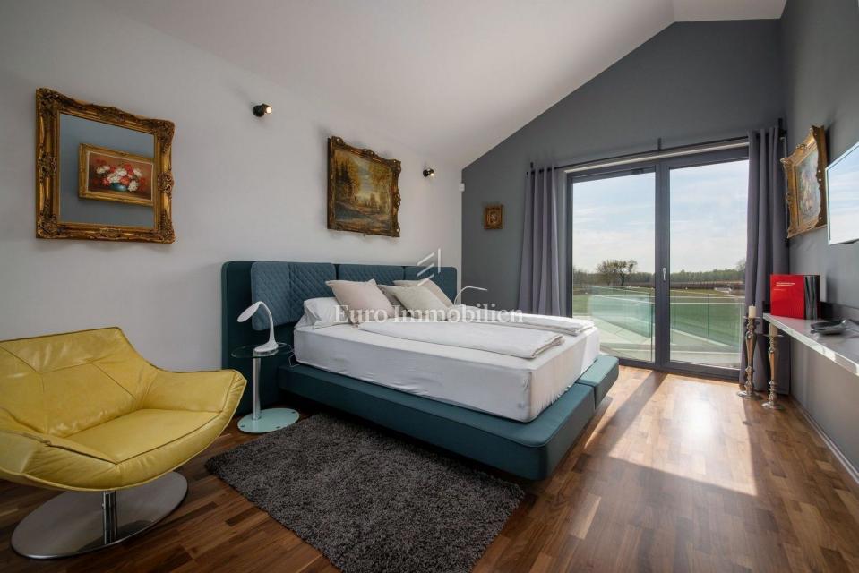 This unique villa in its appearance and architecture is located in the wider vicinity of Poreč (distance approx. 18 km), on the edge of a small Istrian village (conveniences such as discount shops, schools, churches, restaurants are 4 km away). It was bui