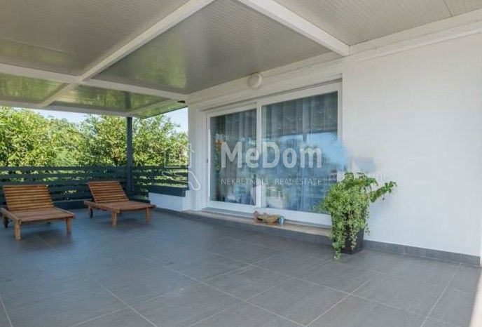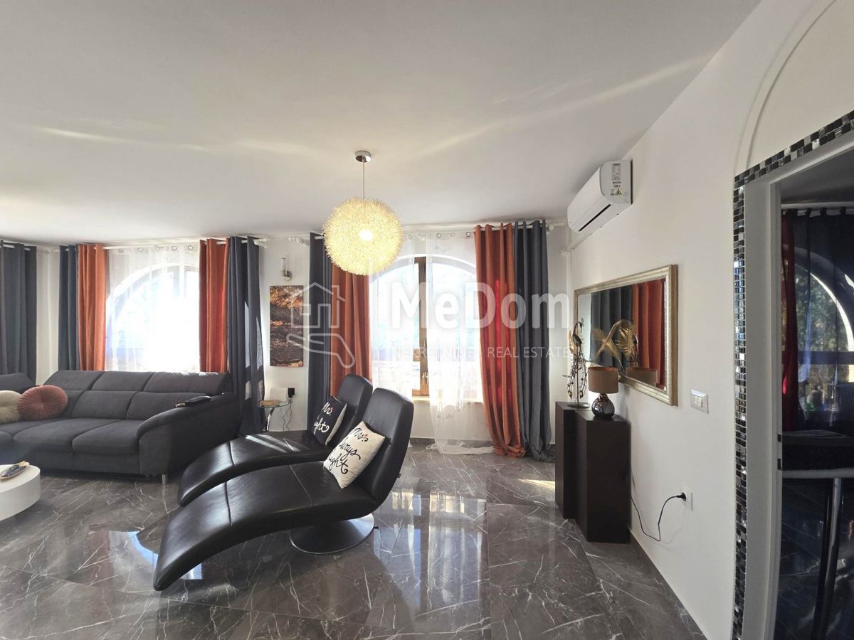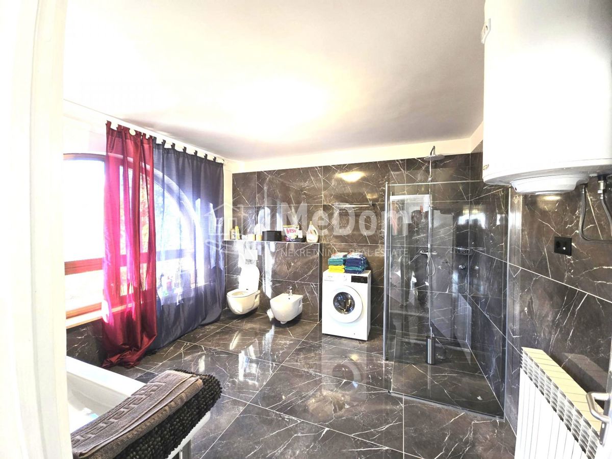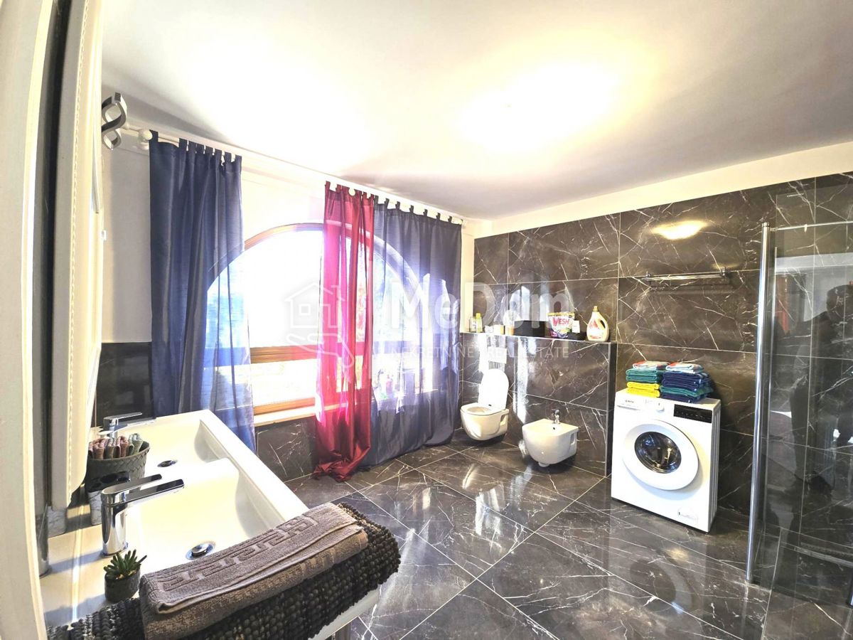 We are selling a newer house with a more extensive garden near Poreč. Poreč is only a 5-minute drive away. The house is on a 1096m2 garden surrounded by new houses. The living area of the house is 240m2. On the ground floor is a large living room with a