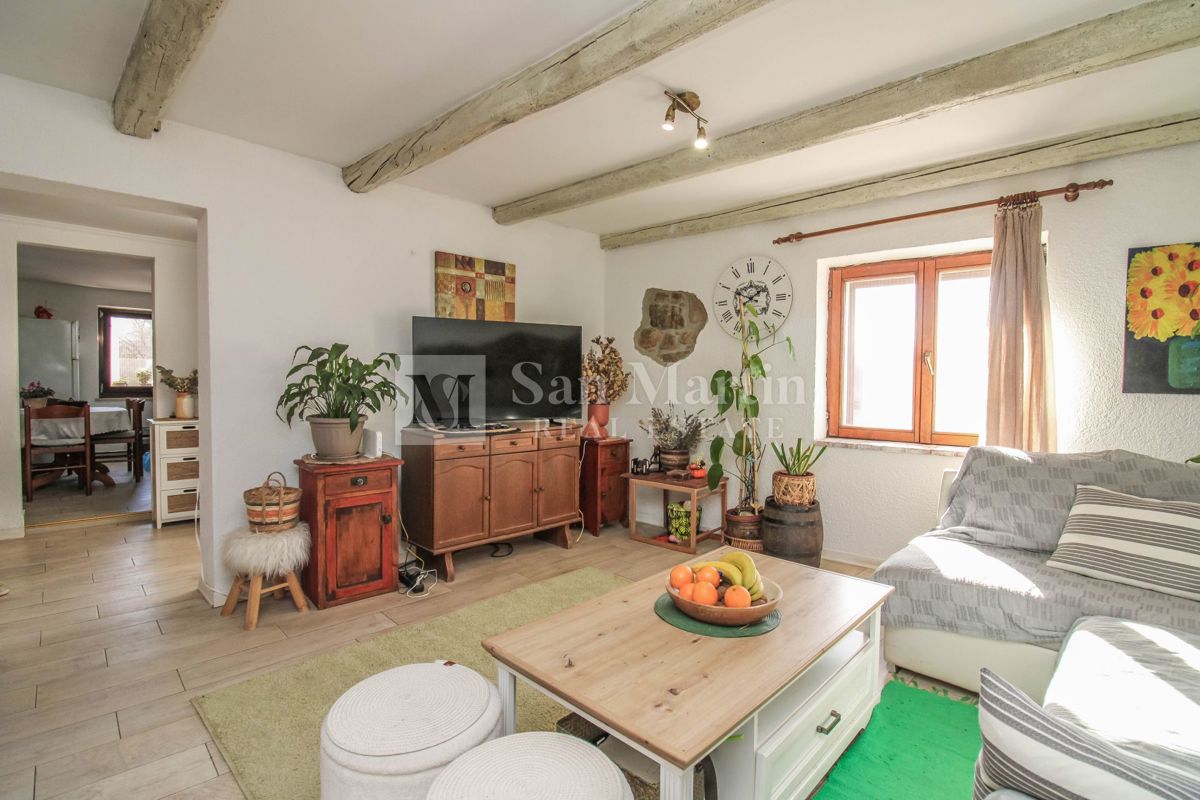 Istria, Poreč, surroundings – Charming family home in a peaceful setting Located on the edge of a settlement, in close proximity to nature, this two-story house spans a total area of 90 m². The ground floor features a living room, kitchen with dining are