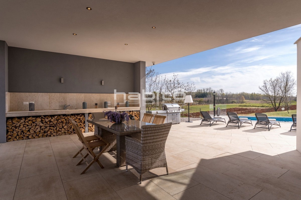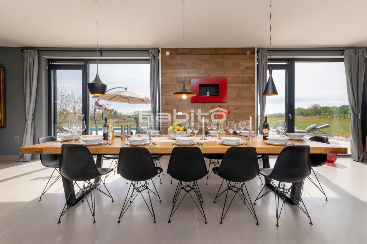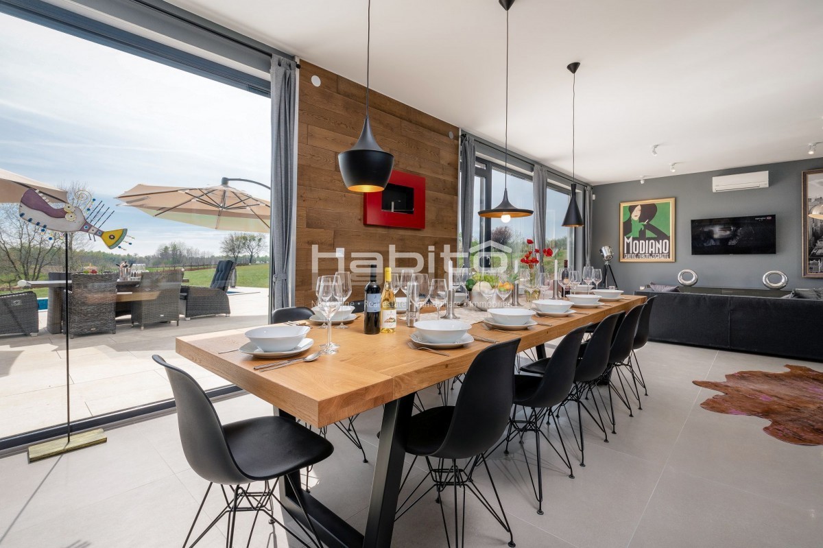 In the vicinity of Porec, near Visnjan, a beautiful house with a swimming pool is for sale, ideal for those looking for luxury and comfort in a peaceful Istrian environment. The house covers an area of 454 m2, and comes with a 36 m2 swimming pool. It i