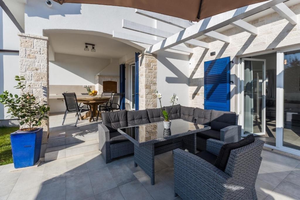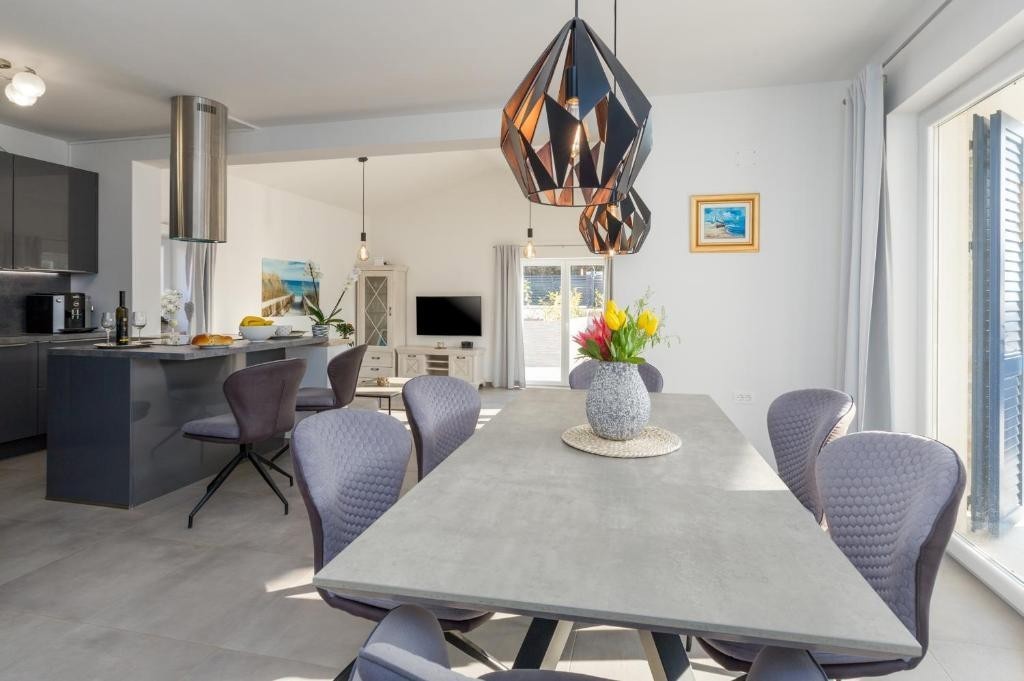 A beautiful modern villa for sale in the vicinity of Poreč, approximately 3 km from the sea in a place with excellent infrastructure - The villa is 141 m2 in size and consists of a ground floor and first floor - Ground floor: kitchen, dining room, living