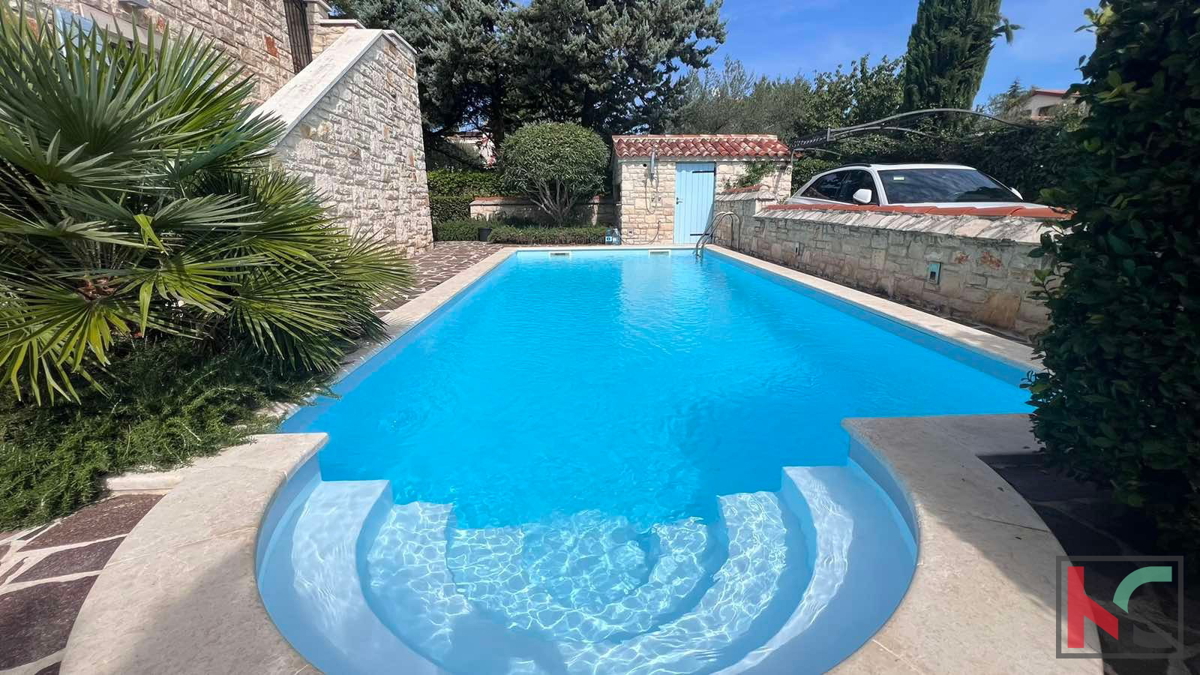An autochthonous Istrian stone house for sale with a swimming pool and a nice landscaped garden near Poreč, in a quiet village, surrounded by greenery. This beautiful villa was built in the old Istrian style of stone houses and includes the ground floor