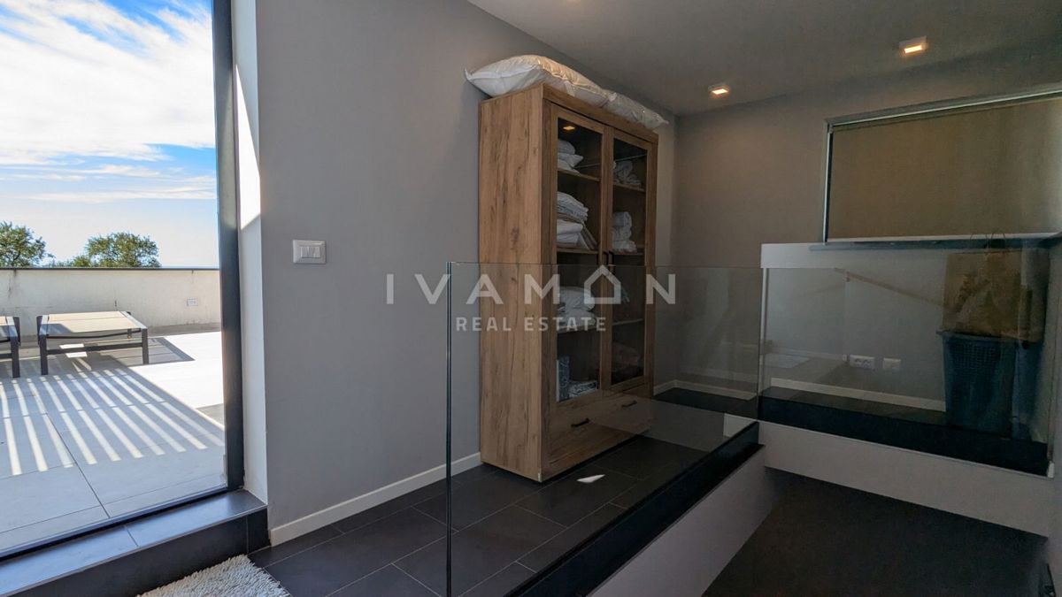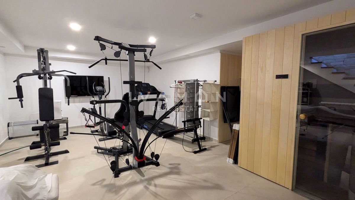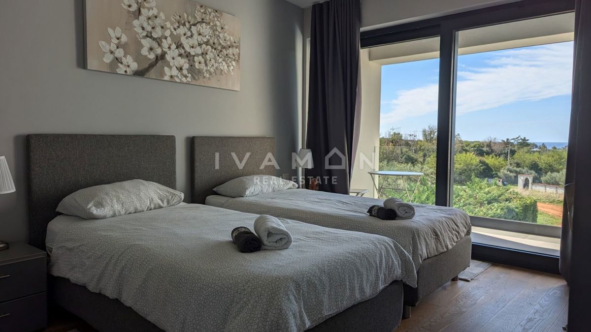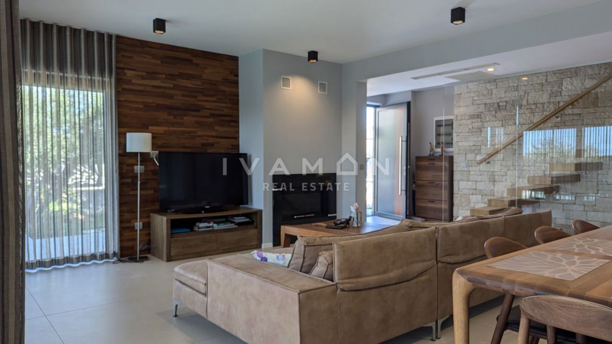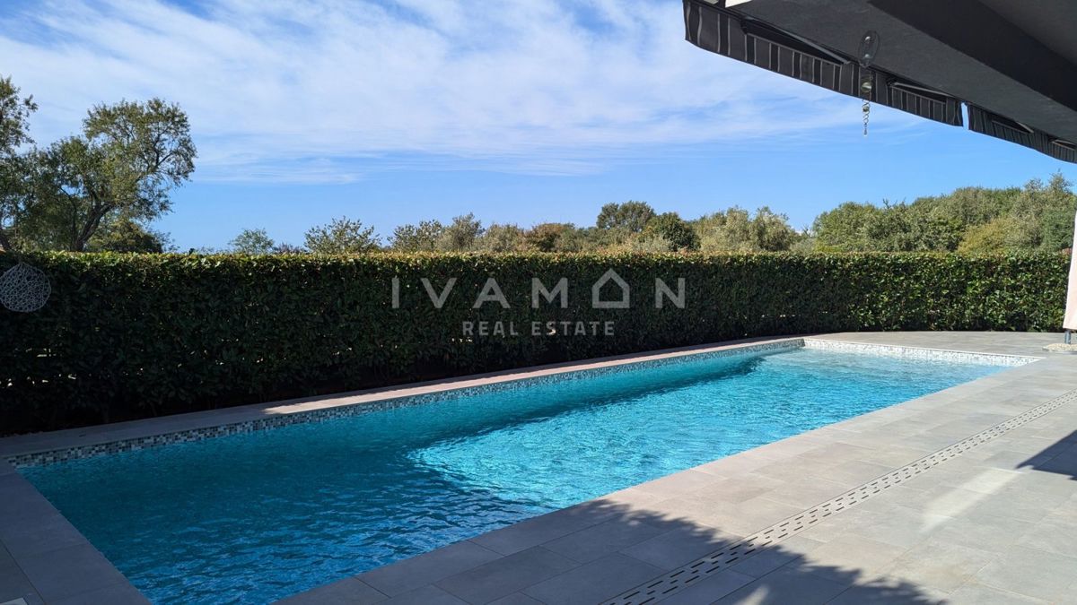Close to the famous Poreč beach, a beautiful villa with a pool and stunning sea views is for sale, ready for immediate move-in. The villa is situated on a 393 m² plot, with a total area of 250 m² spread over the ground floor, first floor, basement, and r