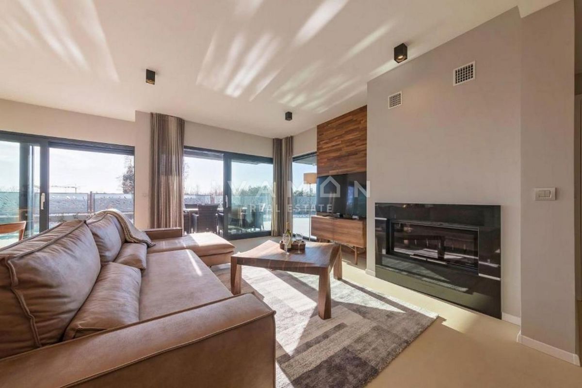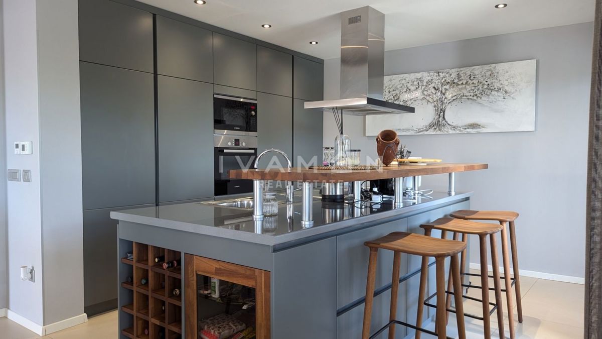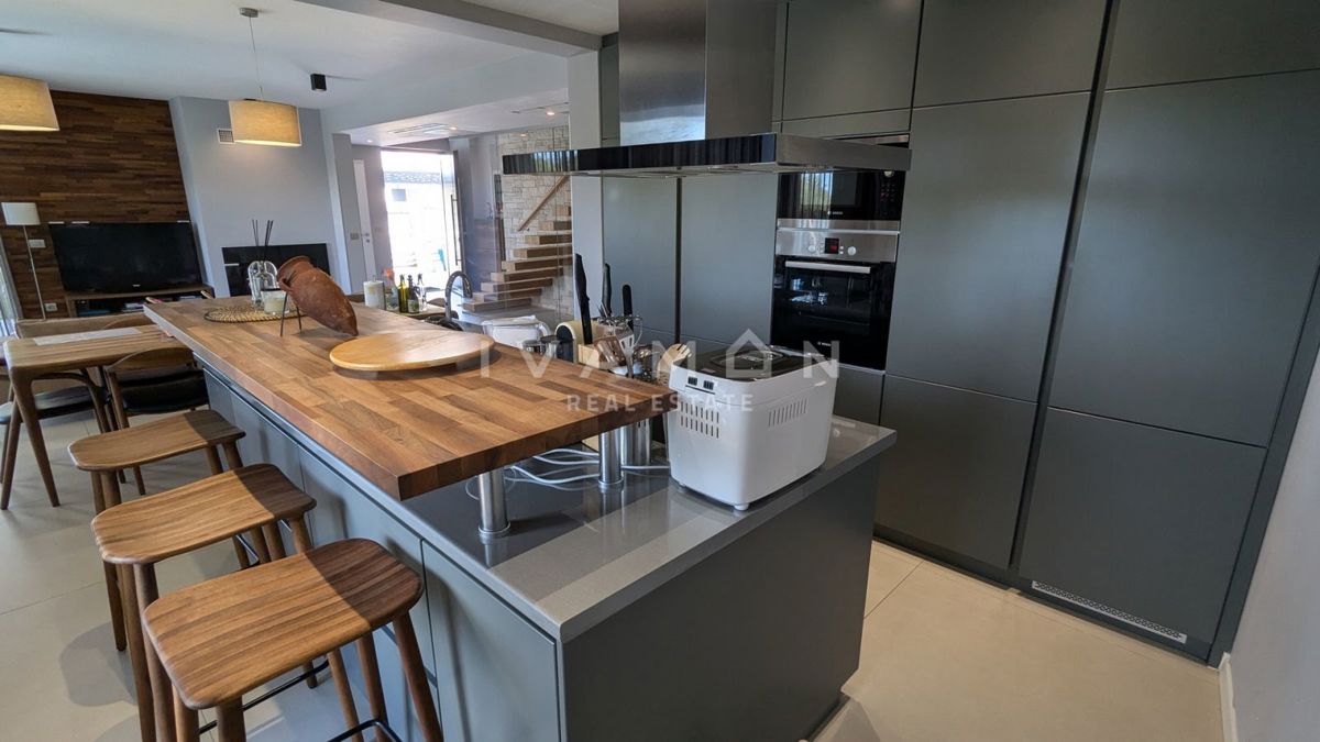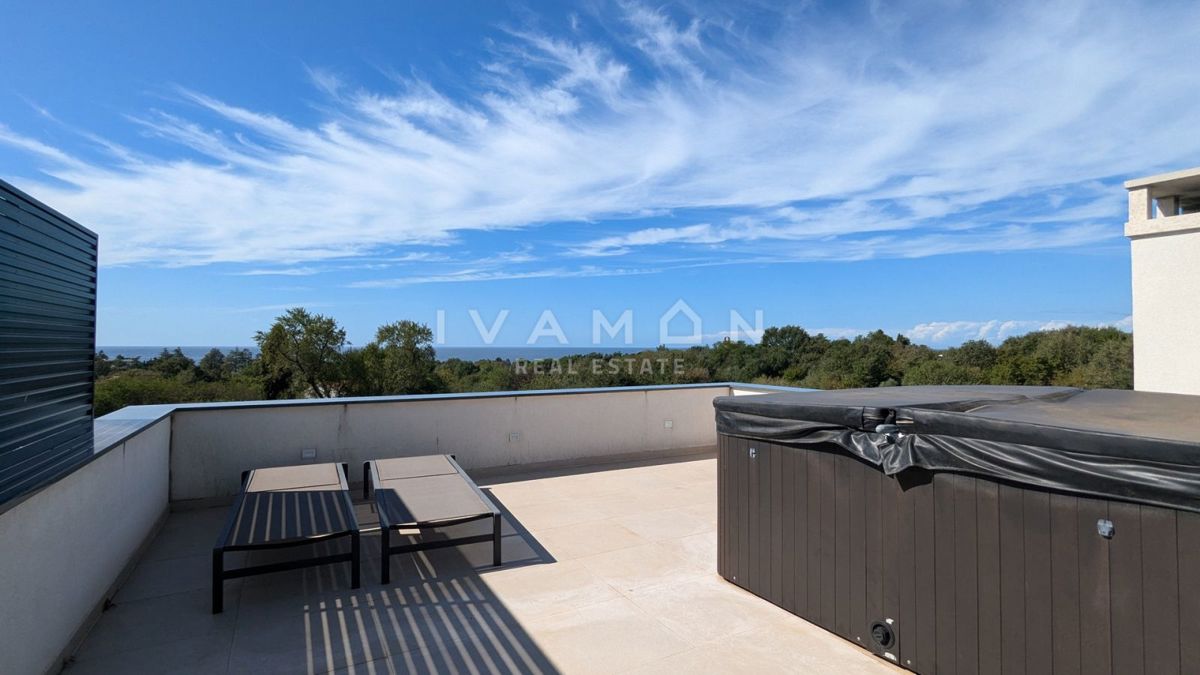 Close to the famous Poreč beach, a beautiful villa with a pool and stunning sea views is for sale, ready for immediate move-in. The villa is situated on a 393 m² plot, with a total area of 250 m² spread over the ground floor, first floor, basement, and r