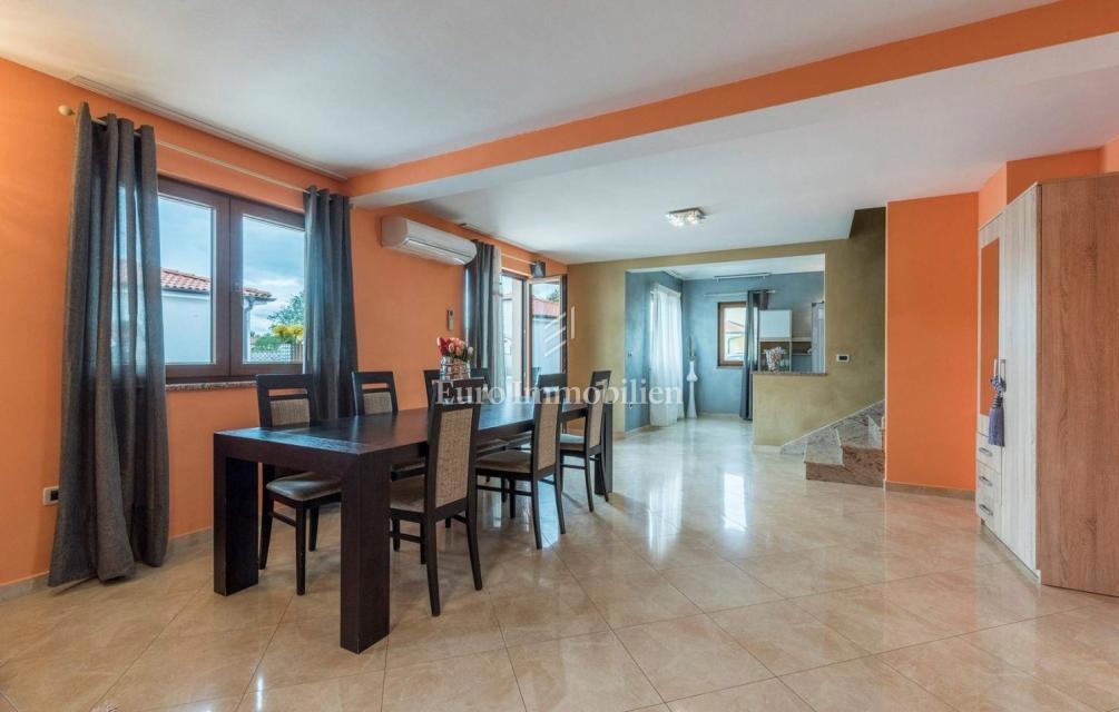 Detached house 150 m2, with a swimming pool in the vicinity of Poreč, approximately 5 km from the sea and approximately 7 km from Poreč. On the ground floor there is a living room with a kitchen and dining area, one bedroom and one bathroom On the first f