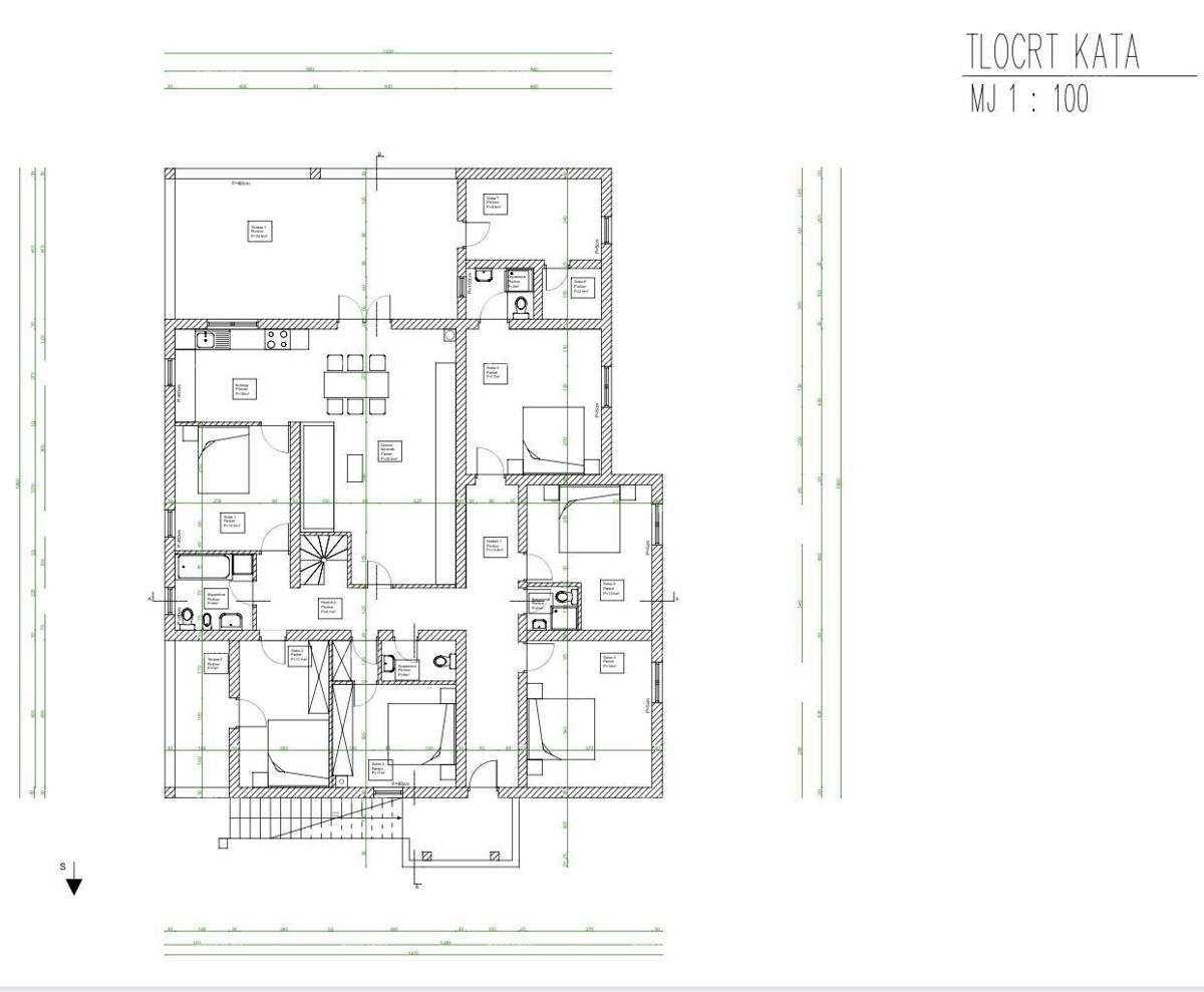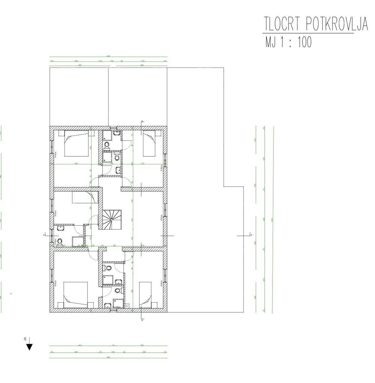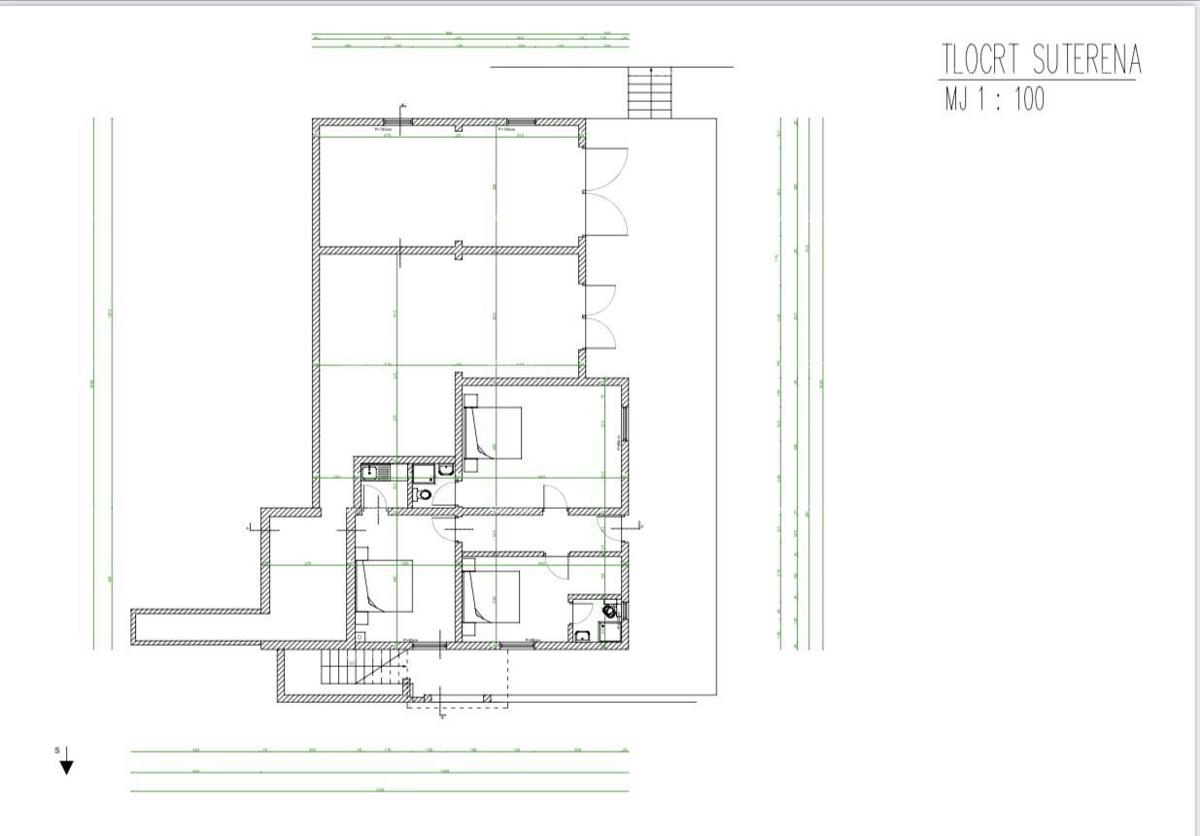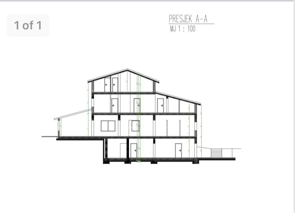 Commercial-residential building of 800m2 for sale, near Poreč. The building consists of 4 floors, basement, ground floor, first floor, and attic. The basement includes 3 bedrooms, 2 bathrooms, and a laundry room. On the ground floor of the building there