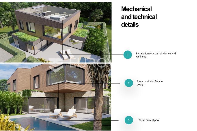 This luxury villa in a quiet village near the town of Poreč offers the perfect combination of modern design, comfort and proximity to the sea! This property consists of two separate buildings, and its construction will be completed one year after purchase