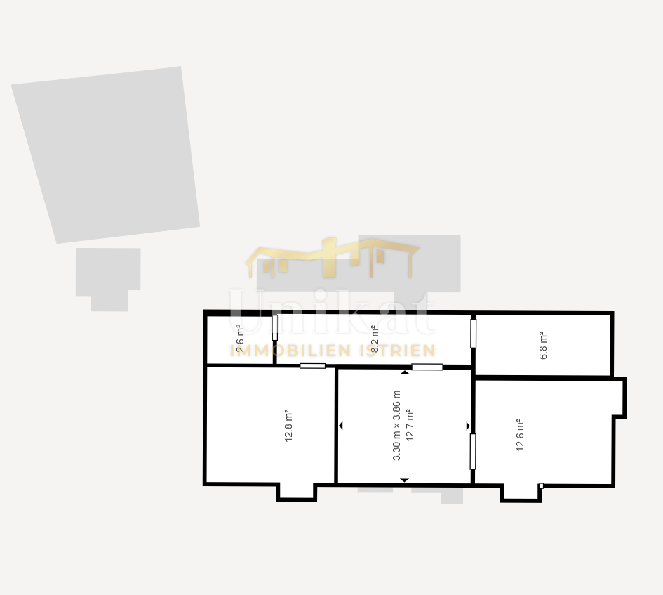Location of the house: The house is located on the edge of Poreč, 4 km from the old town center and 1.5 km from the sea. The neighborhood is quiet and tidy, and consists mainly of family houses. Layout of rooms: The living area is divided into two reside
