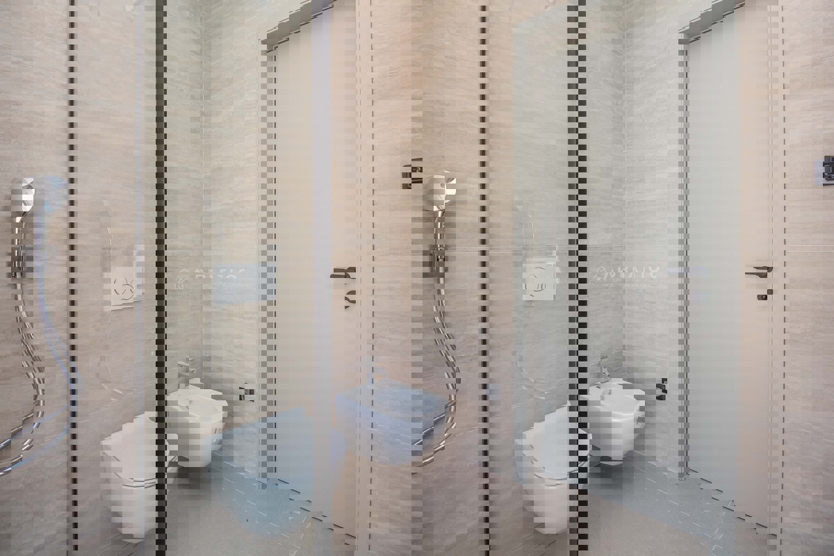 Modern villa with pool for sale in Poreč – Your new dream home! This beautiful villa is located in a quiet location, just 3.5 km from the center of Poreč and approximately 2 km from the well-maintained beaches. Main features of the villa: Location: A quie