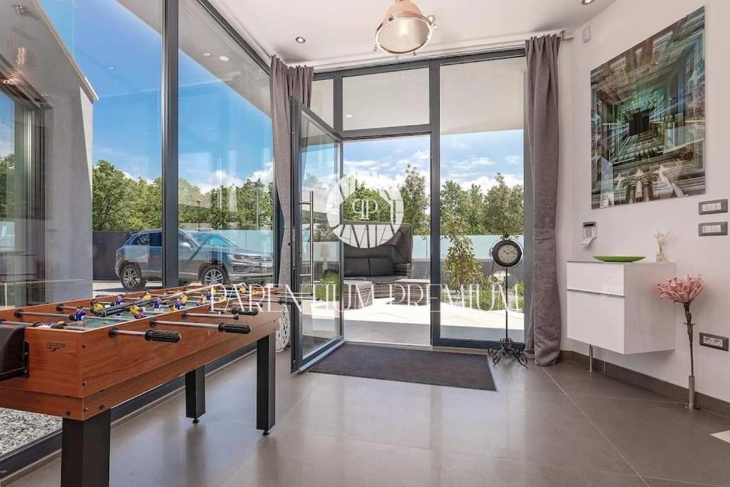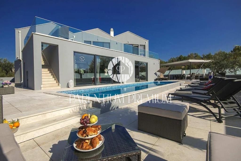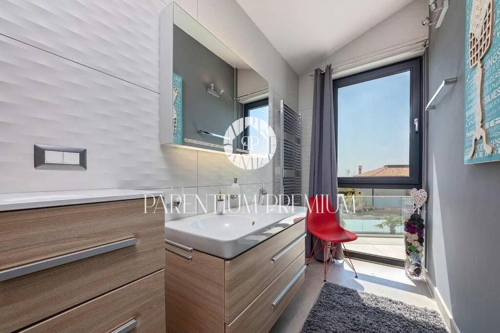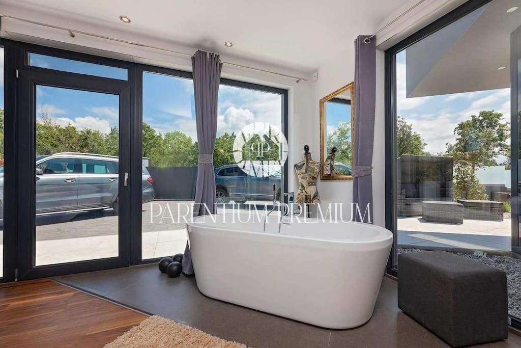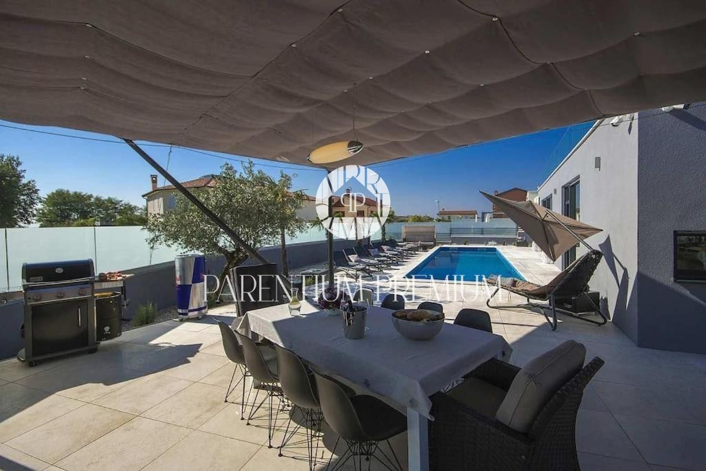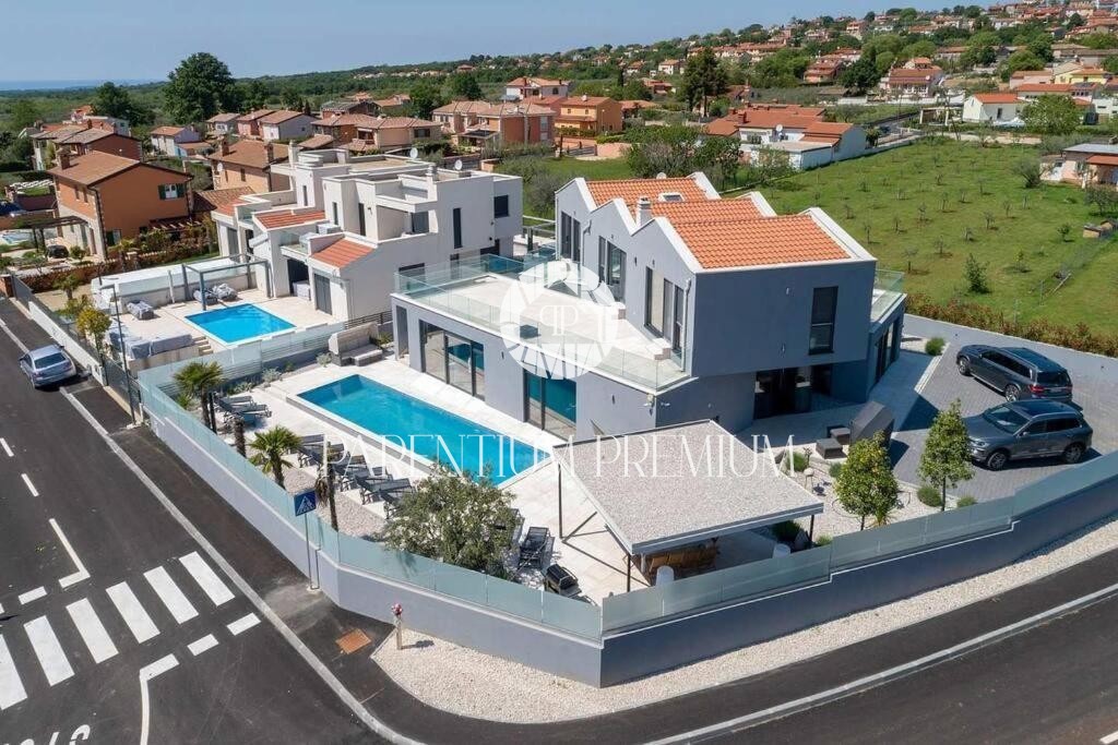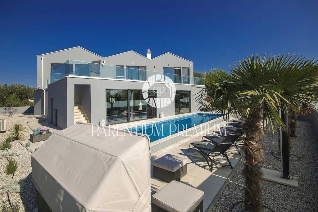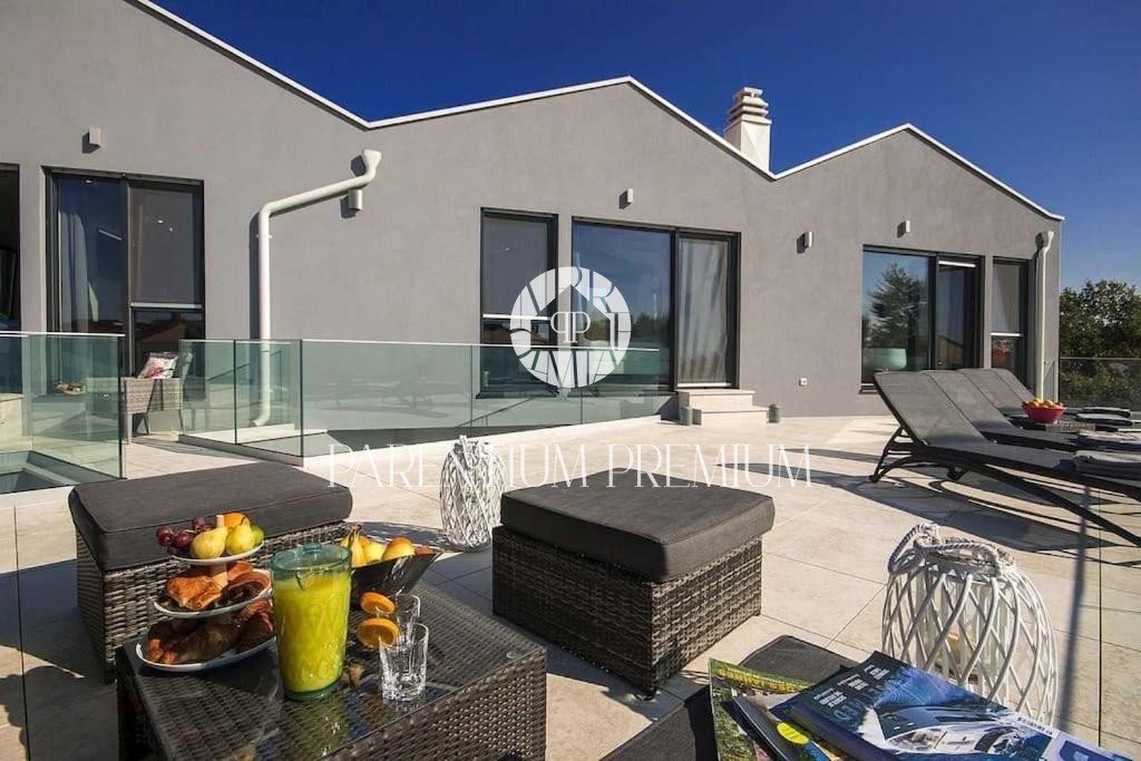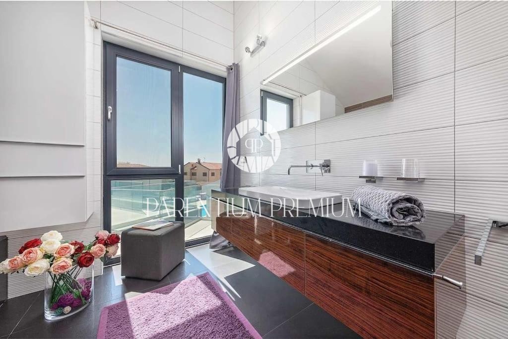 Istria, Poreč area A luxurious designer villa with a swimming pool is for sale near Poreč, located on a plot of 871m2. The villa extends over two floors, ground floor and first floor, with a total area of 385 m2 and a spacious garden of 870 m2. The vil