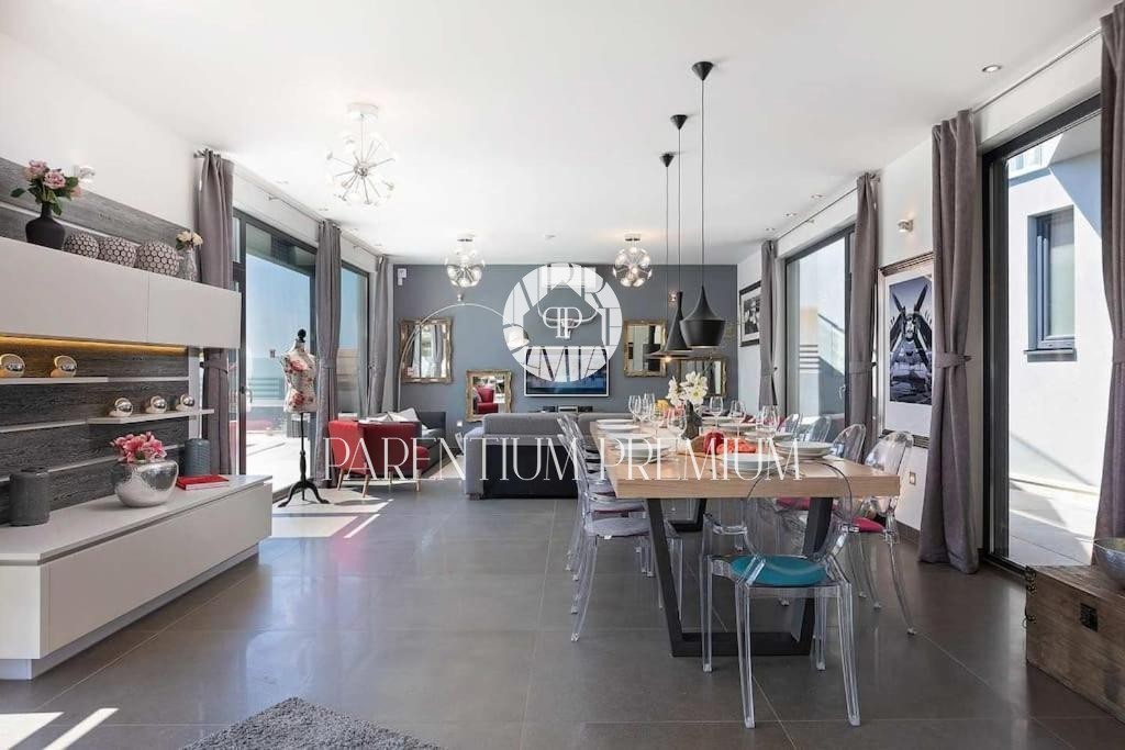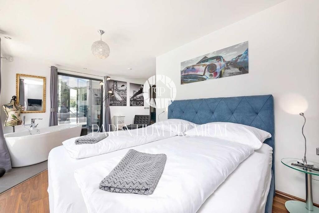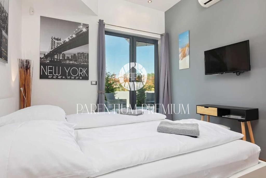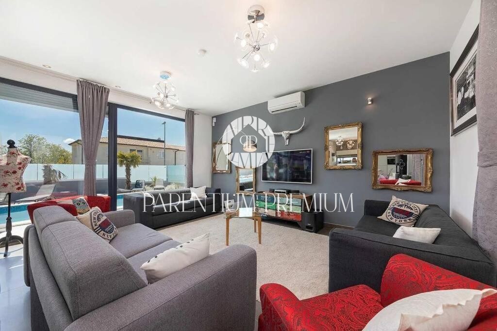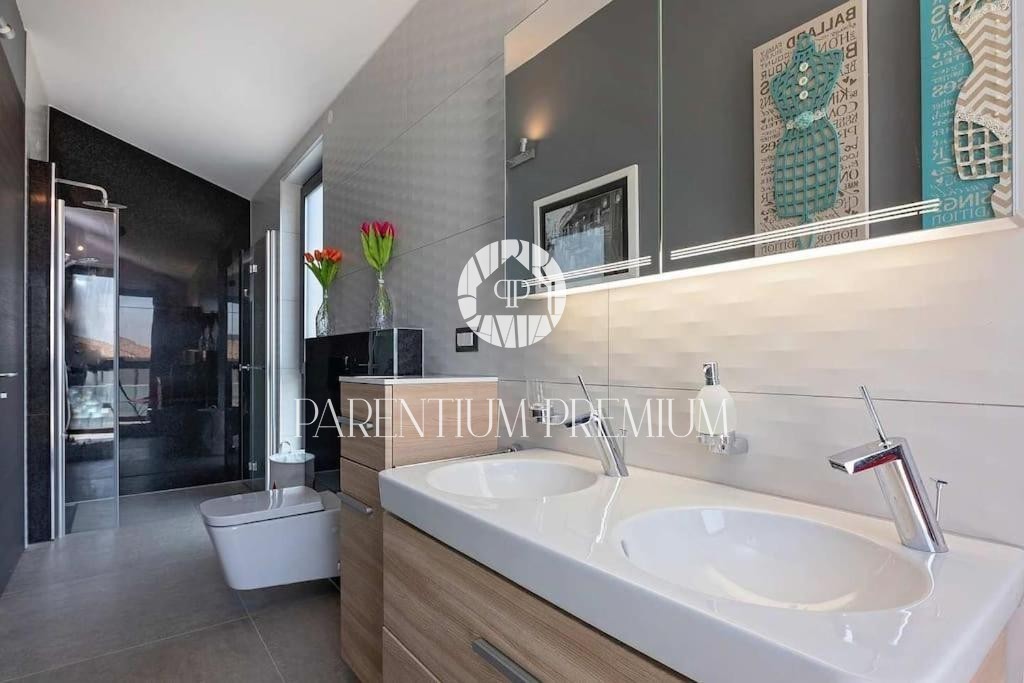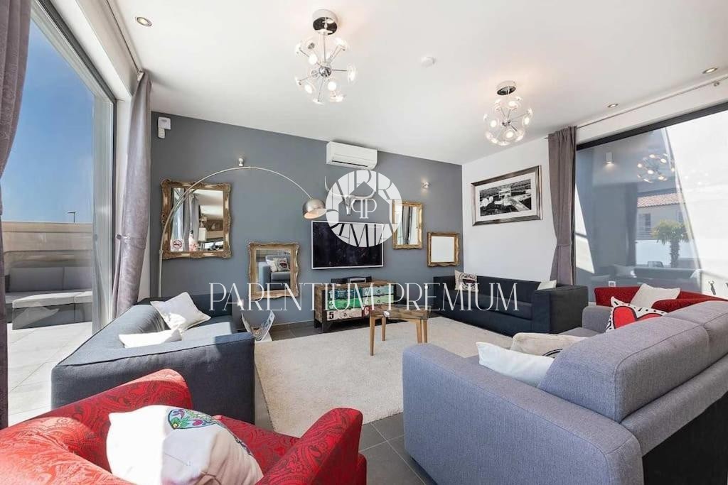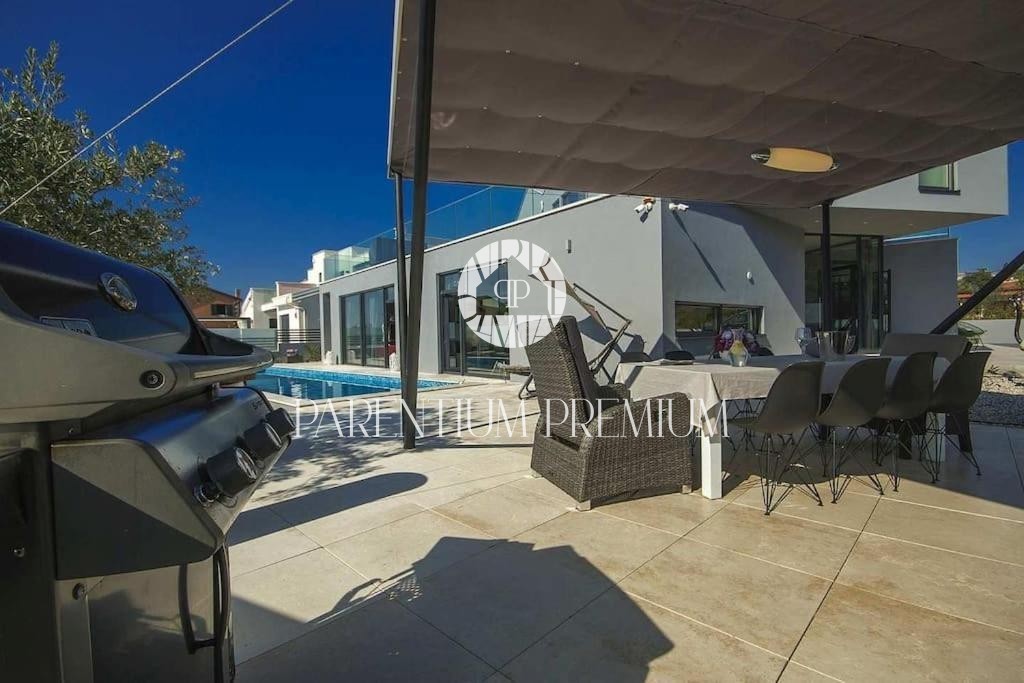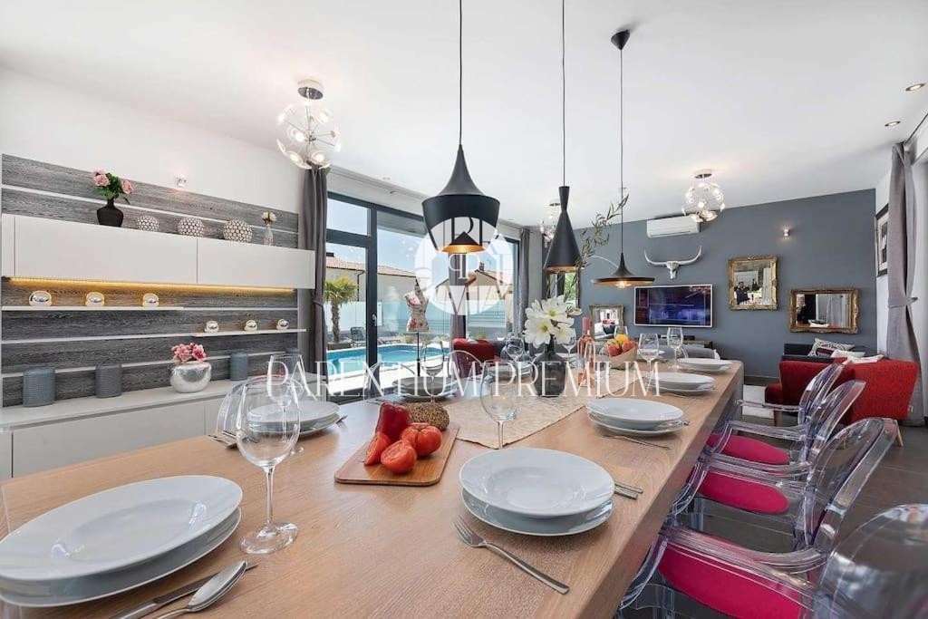 Istria, Poreč area A luxurious designer villa with a swimming pool is for sale near Poreč, located on a plot of 871m2. The villa extends over two floors, ground floor and first floor, with a total area of 385 m2 and a spacious garden of 870 m2. The vil
