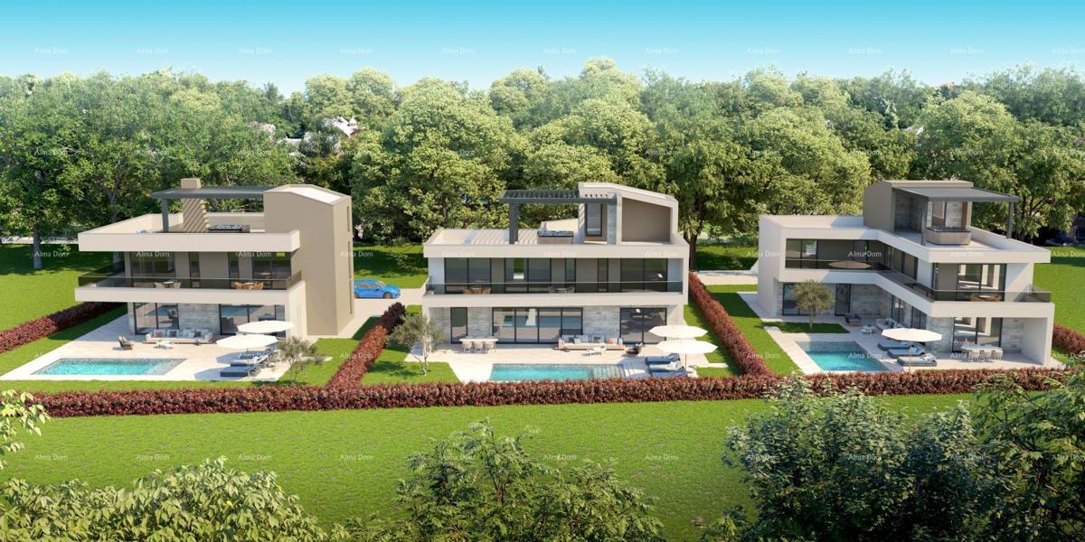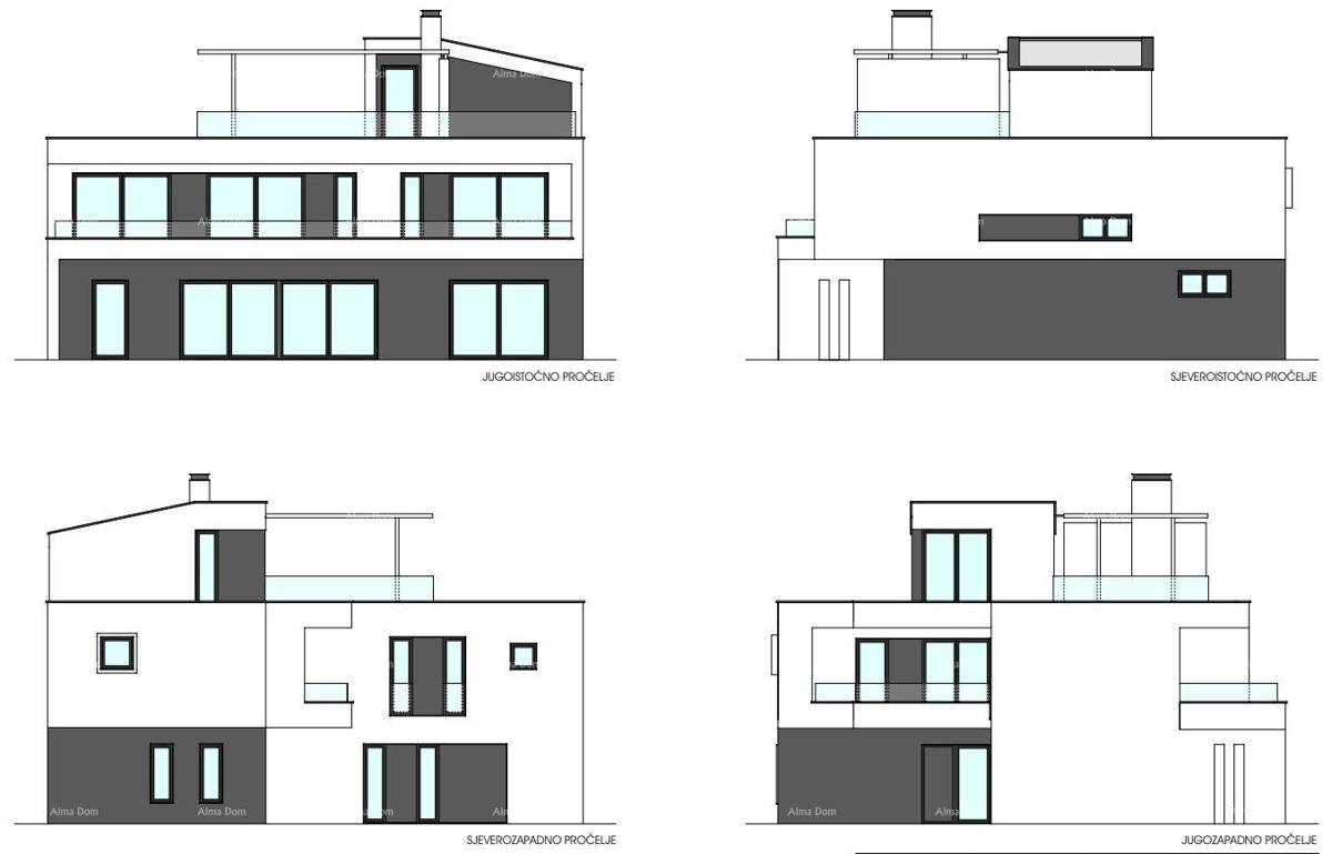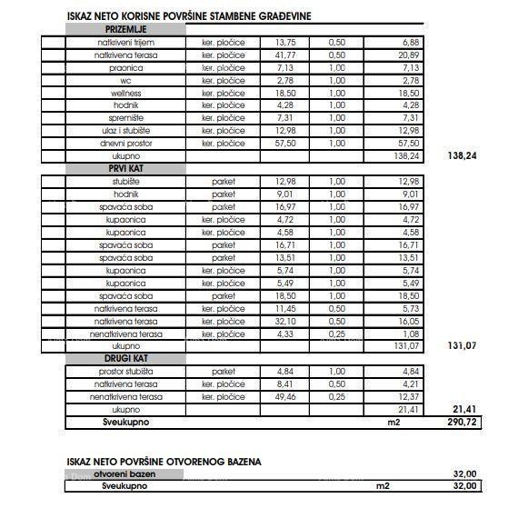 We are selling a villa with a pool. The villa is located in the municipality of Tar and offers a wonderful view of the sea. The villa is designed for 8 people. In the ground floor of the building there is a covered porch, corridor, toilet, laundry room,