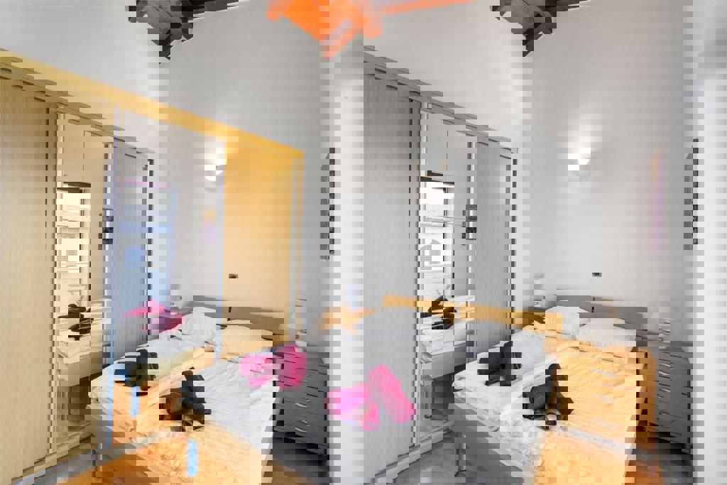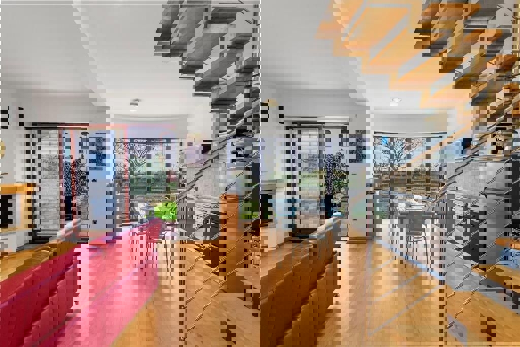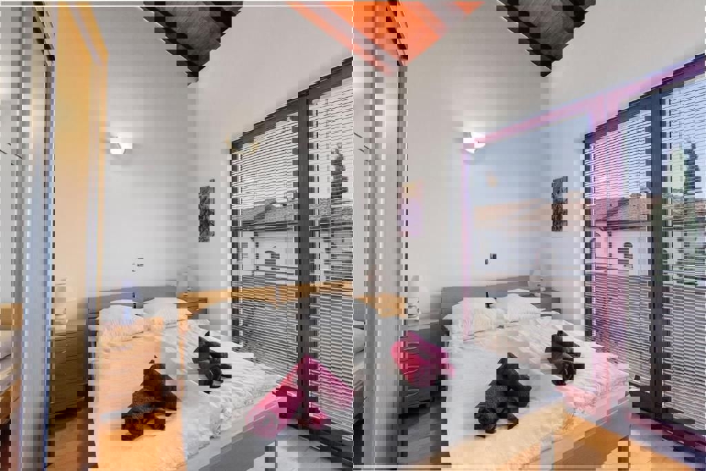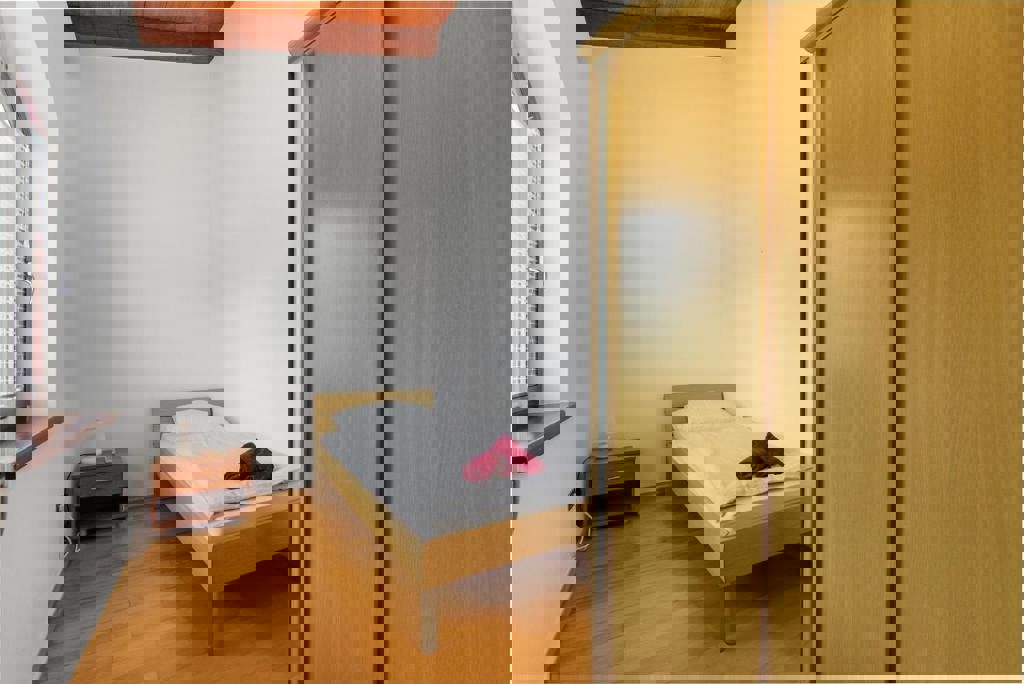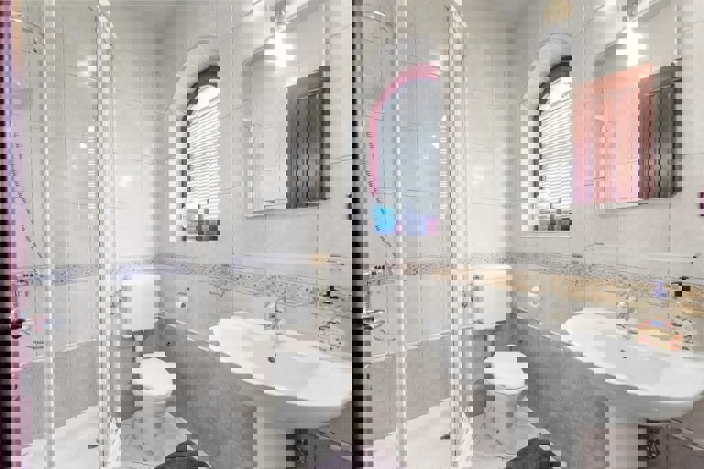 Not far from Poreč and the sea, the last house in a row with an open view of nature and the sea is for sale. The ground floor of the house consists of an entrance hall, bathroom, pantry, kitchen with dining room and living room with a fireplace and access