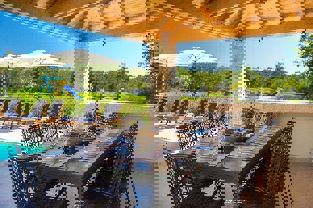 ISTRIAN HOUSE WITH POOL – PEACEFUL LOCATION NEAR POREČ! In a beautiful, peaceful village near Poreč, a fully equipped and furnished house with a pool is for sale, ideal for a holiday or a year-round stay. Located on the edge of a construction zone, it off