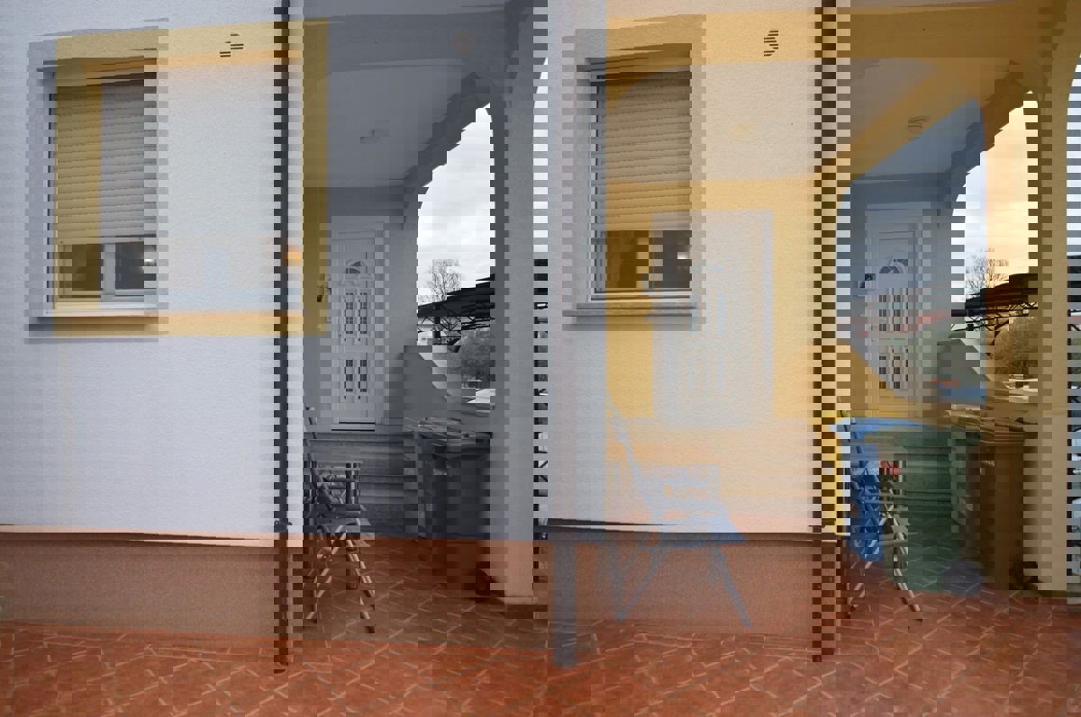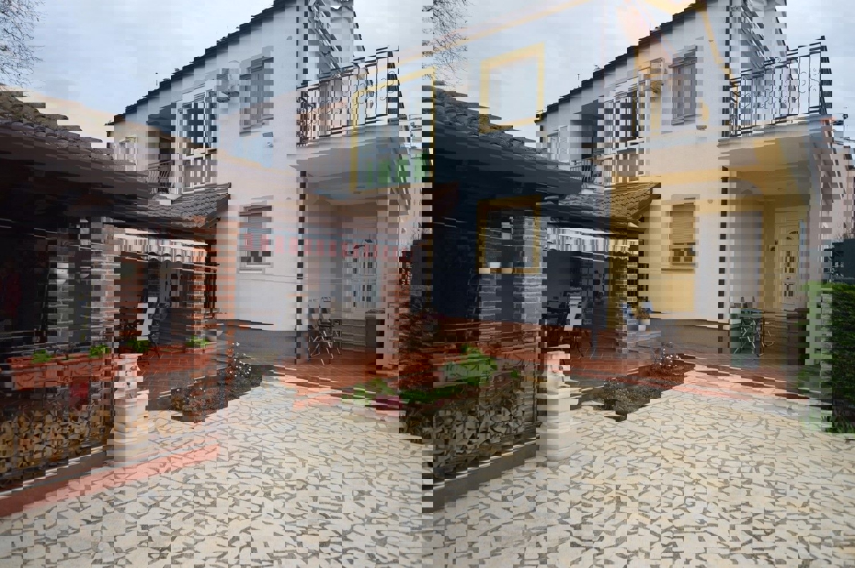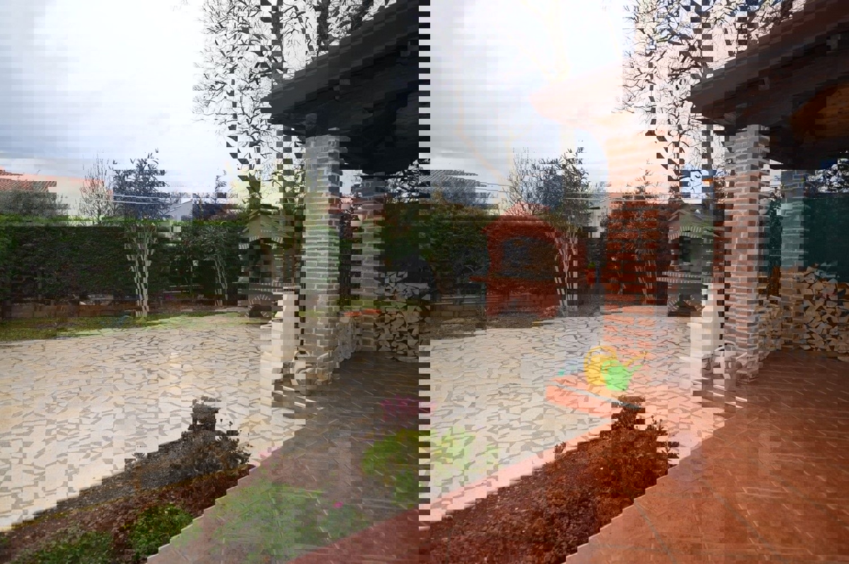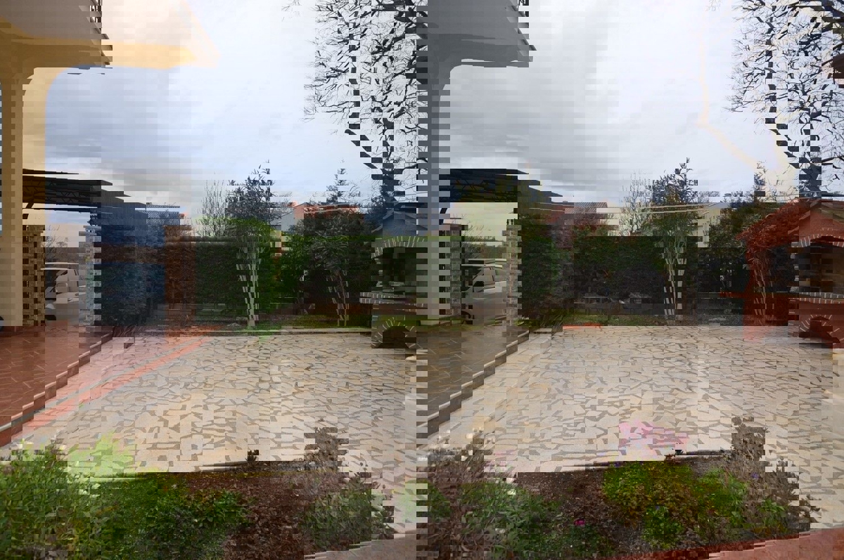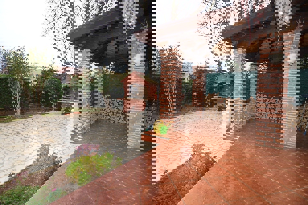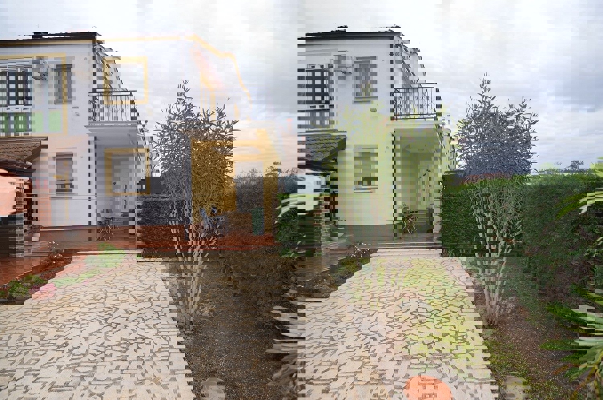 Semi-detached house for sale near Poreč and the sea. It is located in a quiet location, only 2 km from beautiful beaches. The house has an apartment on the ground floor and the first floor. Each apartment consists of a kitchen with dining room and living