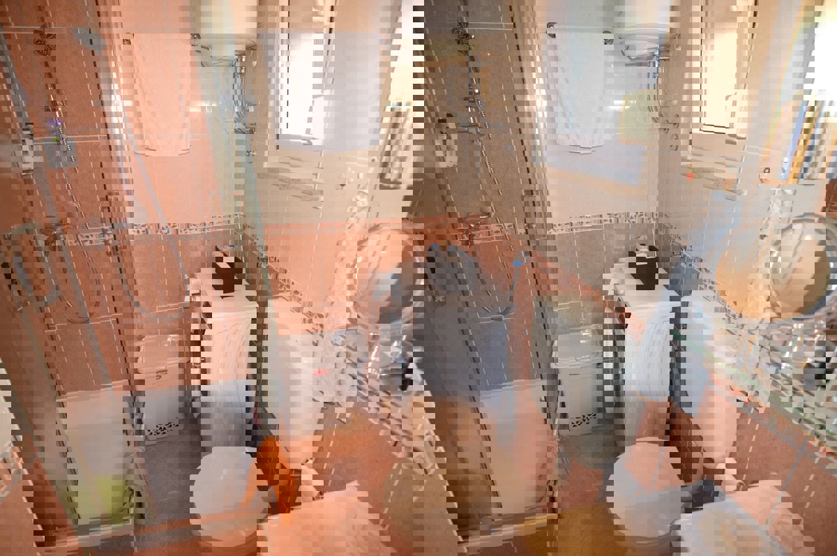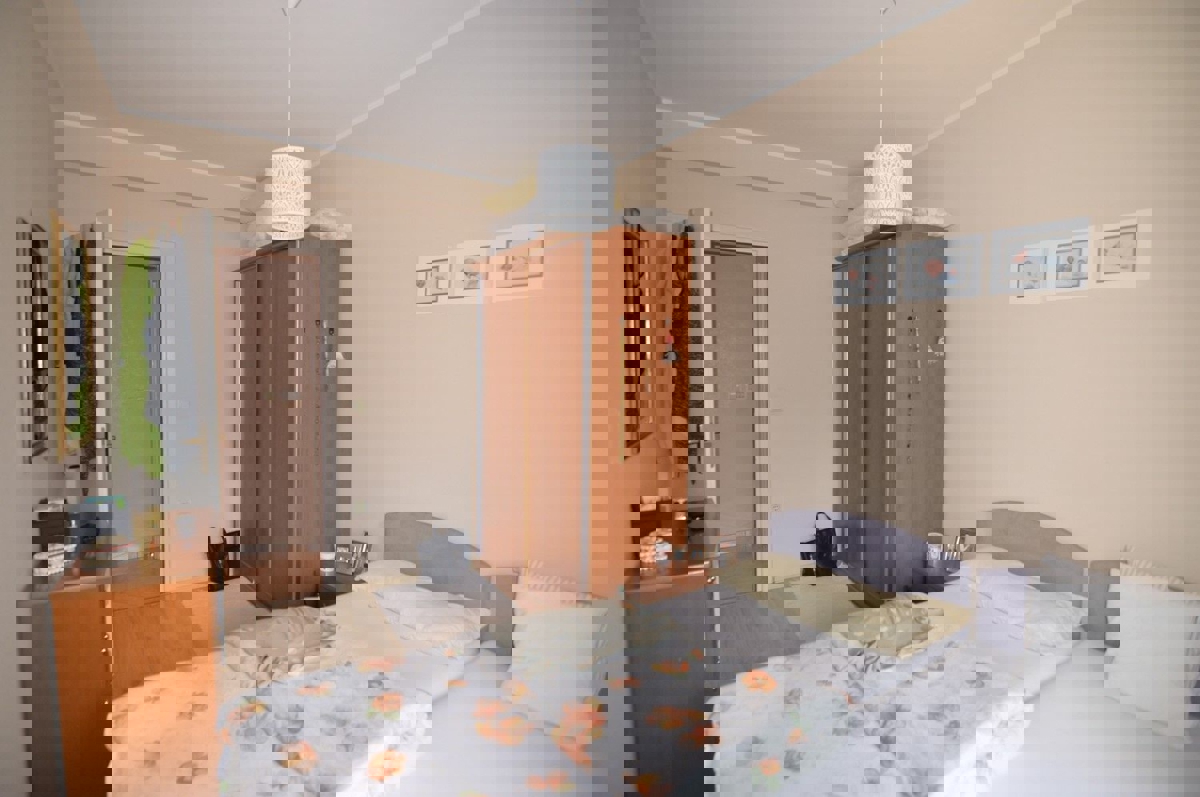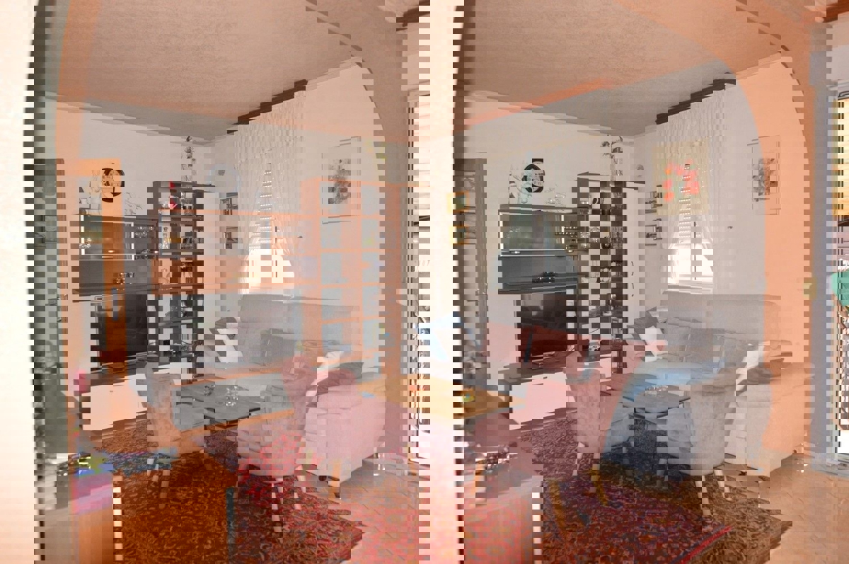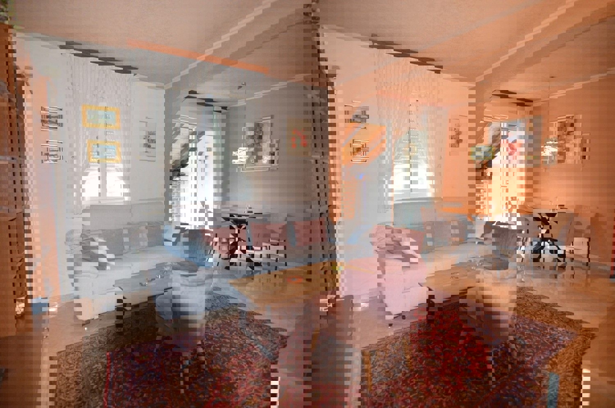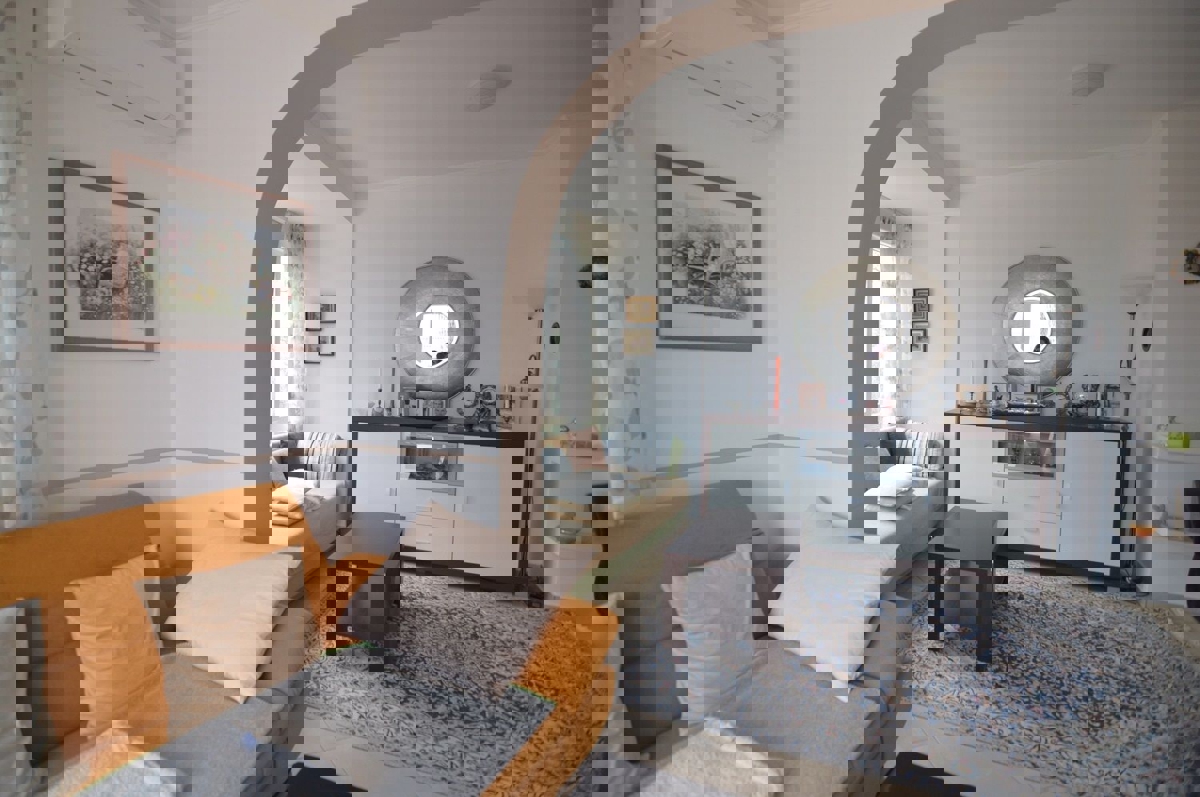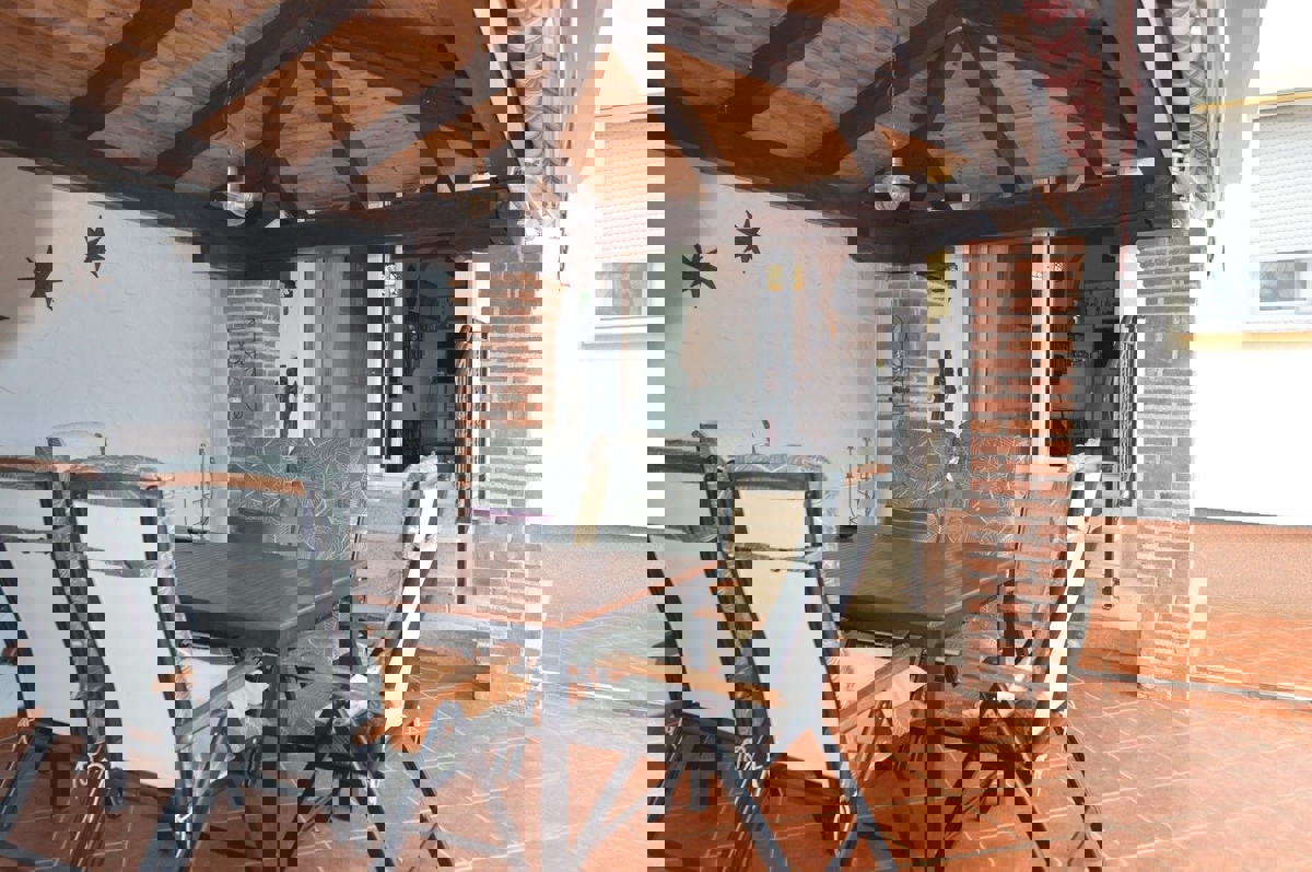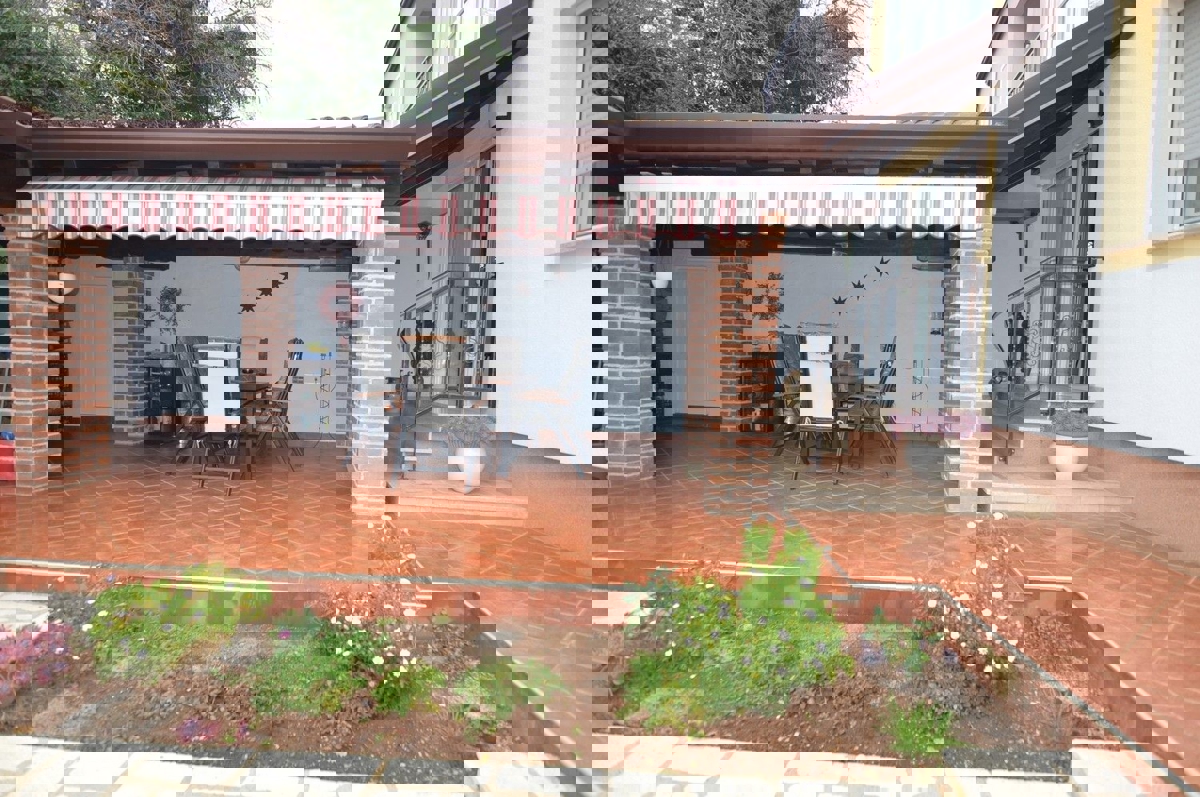 Semi-detached house for sale near Poreč and the sea. It is located in a quiet location, only 2 km from beautiful beaches. The house has an apartment on the ground floor and the first floor. Each apartment consists of a kitchen with dining room and living