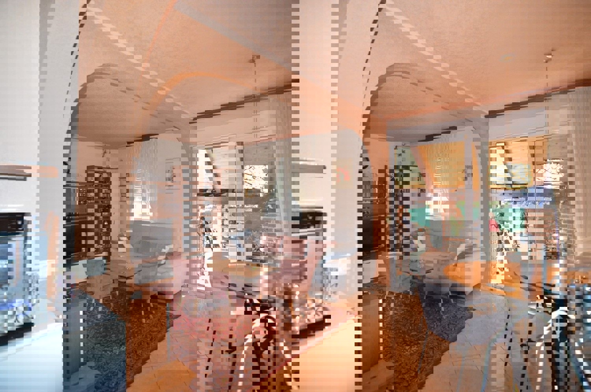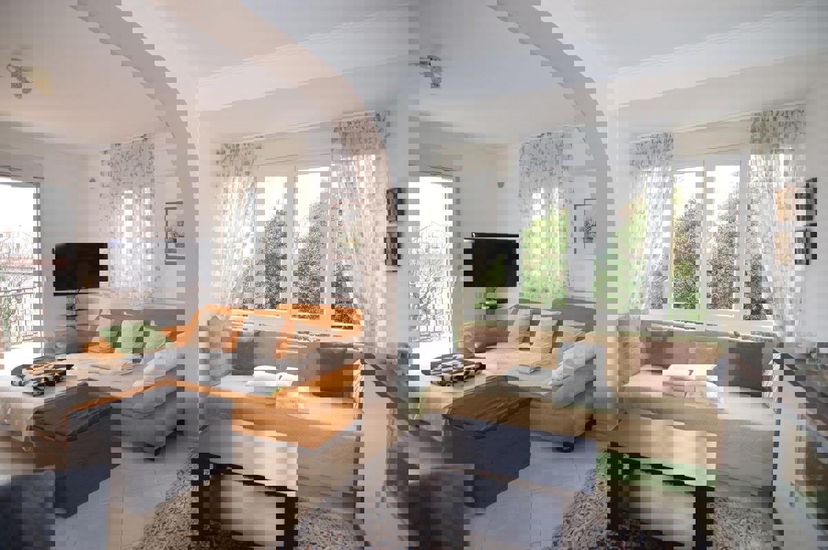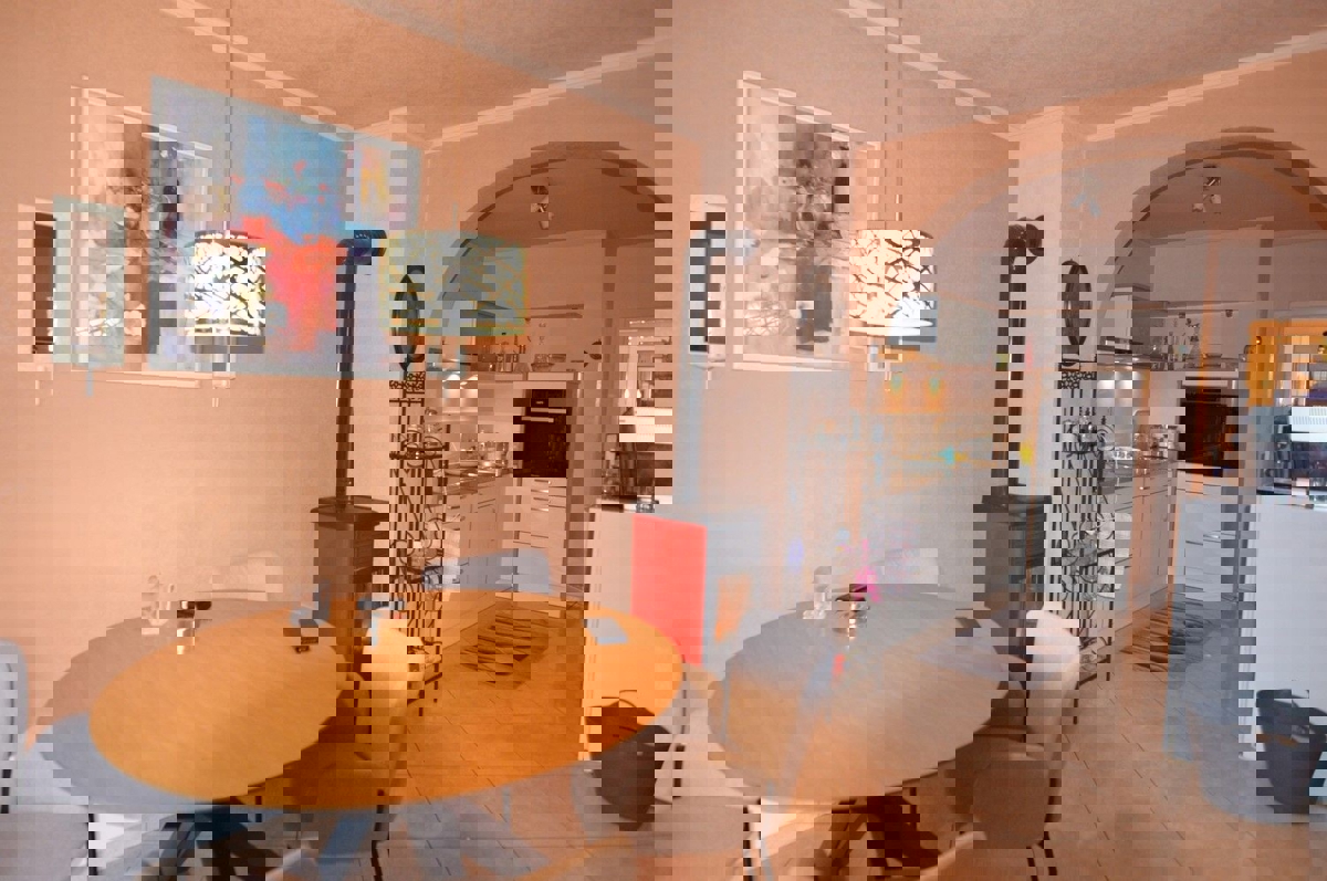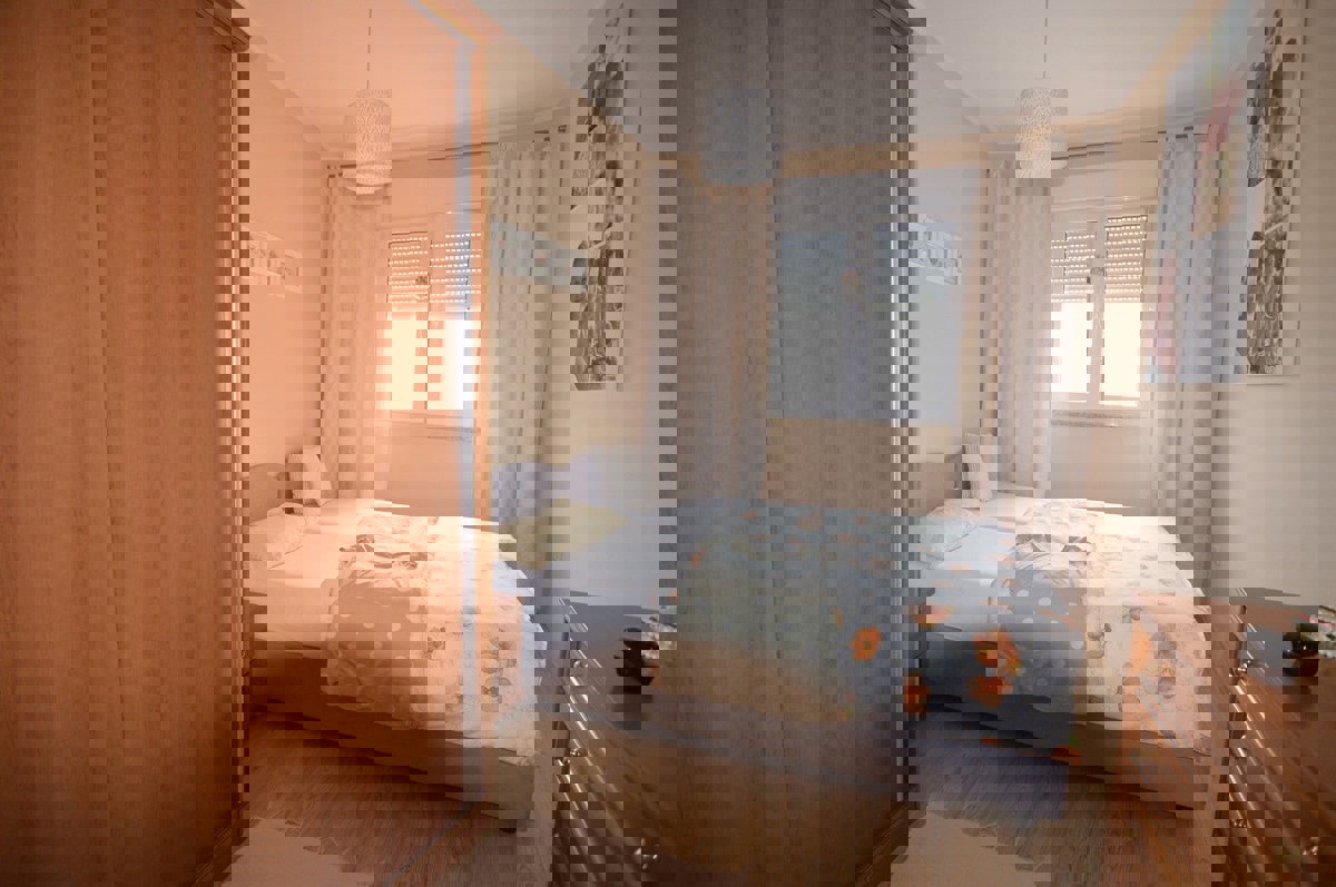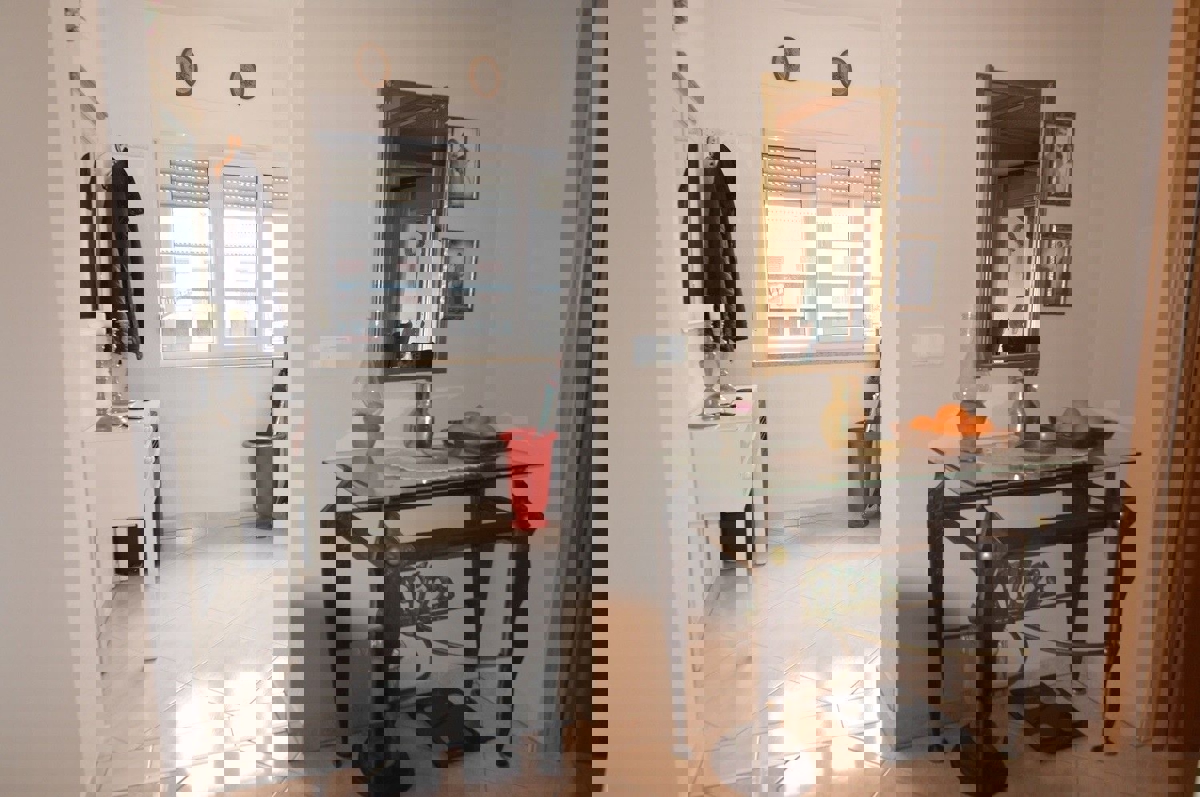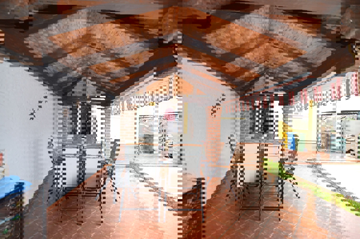 Semi-detached house for sale near Poreč and the sea. It is located in a quiet location, only 2 km from beautiful beaches. The house has an apartment on the ground floor and the first floor. Each apartment consists of a kitchen with dining room and living