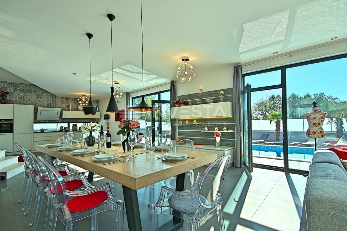 Villa near Poreč is a luxury property that offers modern architecture, spacious interiors, and high-quality construction. Here’s a more detailed overview of the property: Area and Layout: *** Villa area: 385 m² *** Plot area: 871 m² The villa is ideall