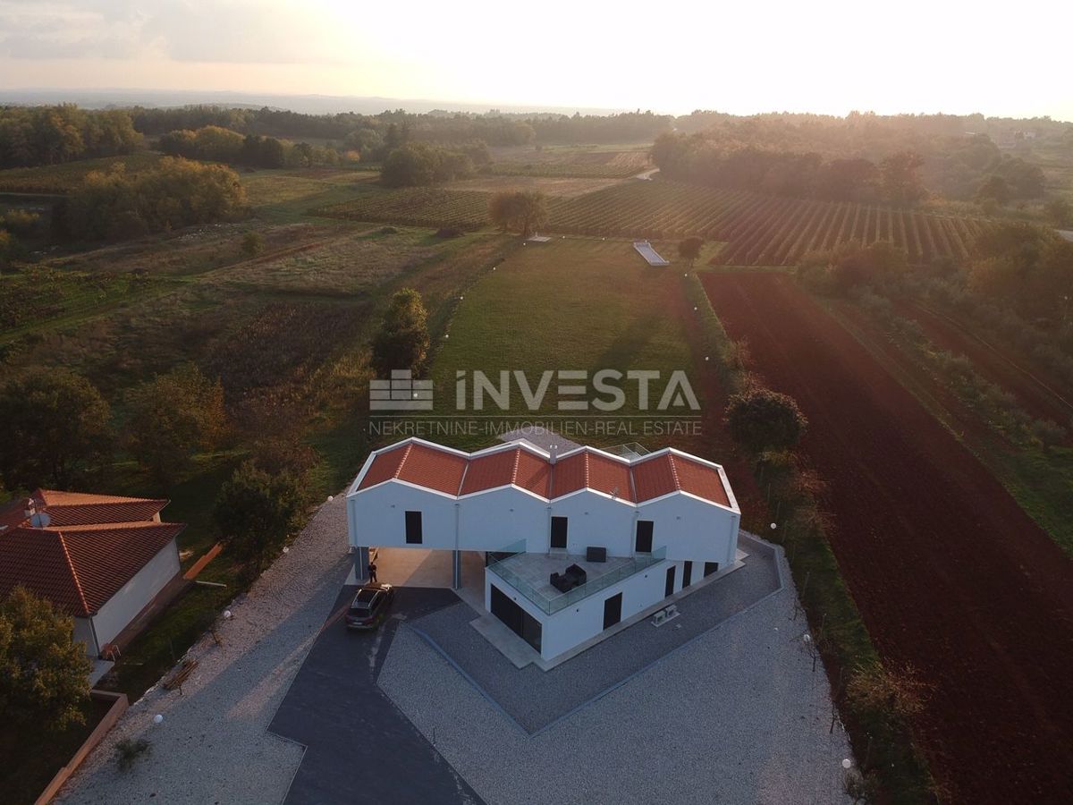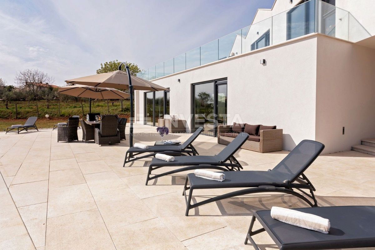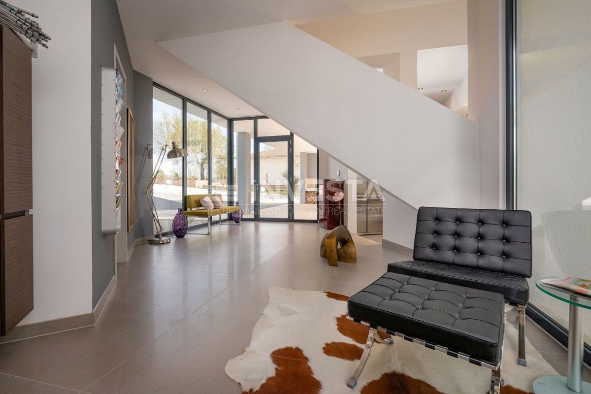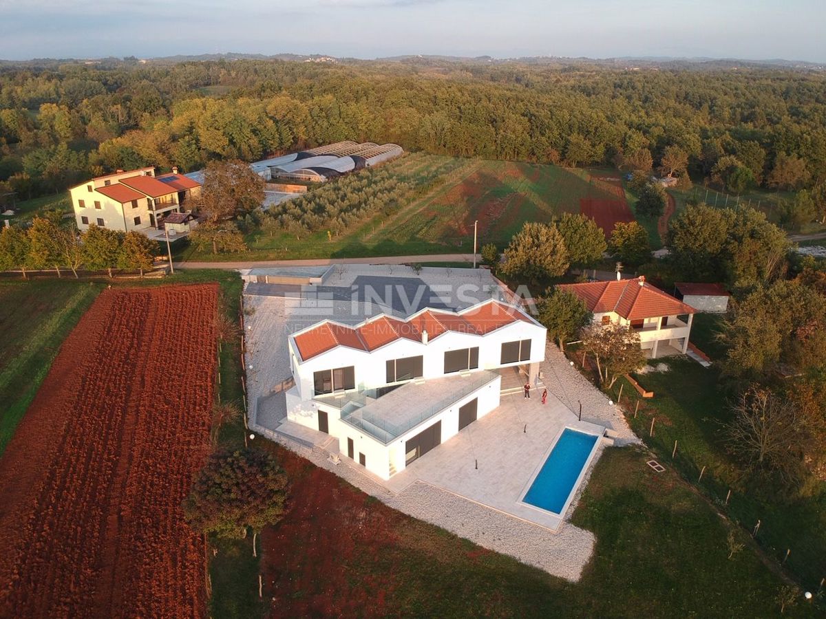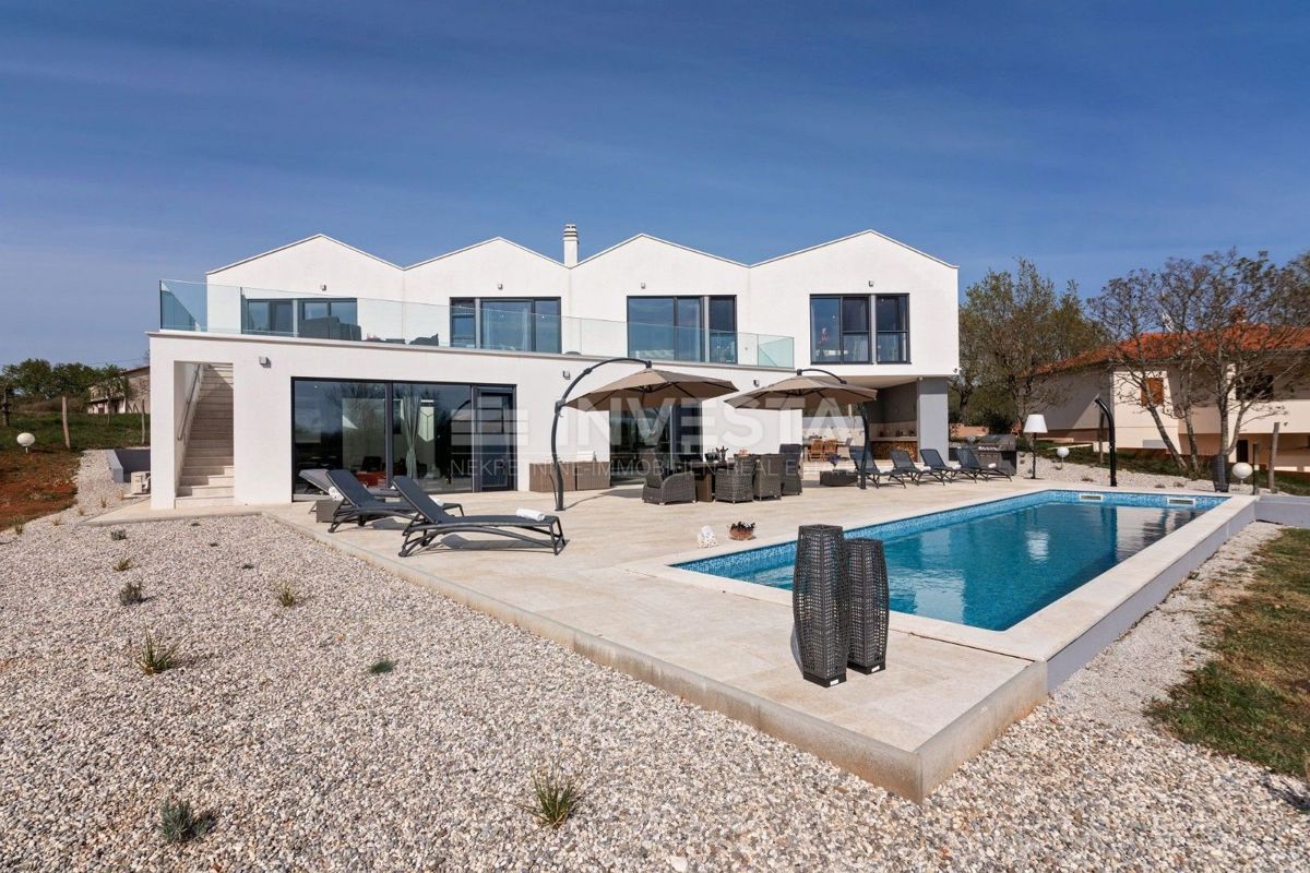 Villa near Poreč is a luxury property that offers modern architecture, spacious interior spaces, and high construction quality. Here is a more detailed overview of the property: Area and layout: Villa area: 454 m² Plot area: 6271 m² The villa is ideally