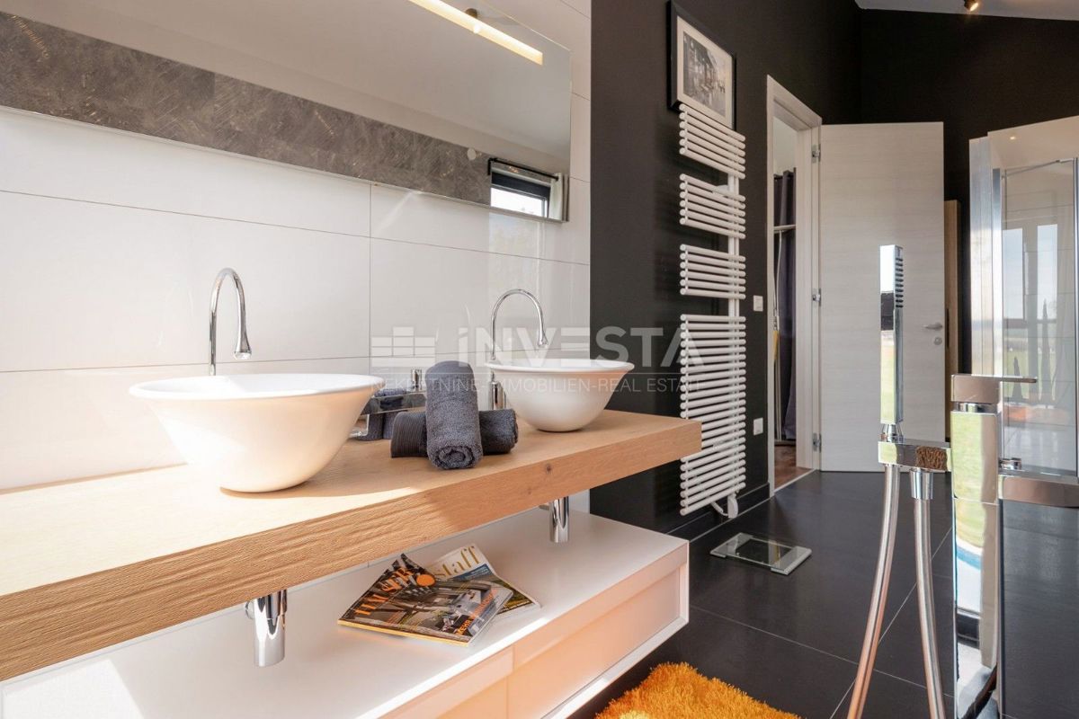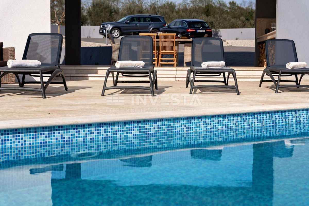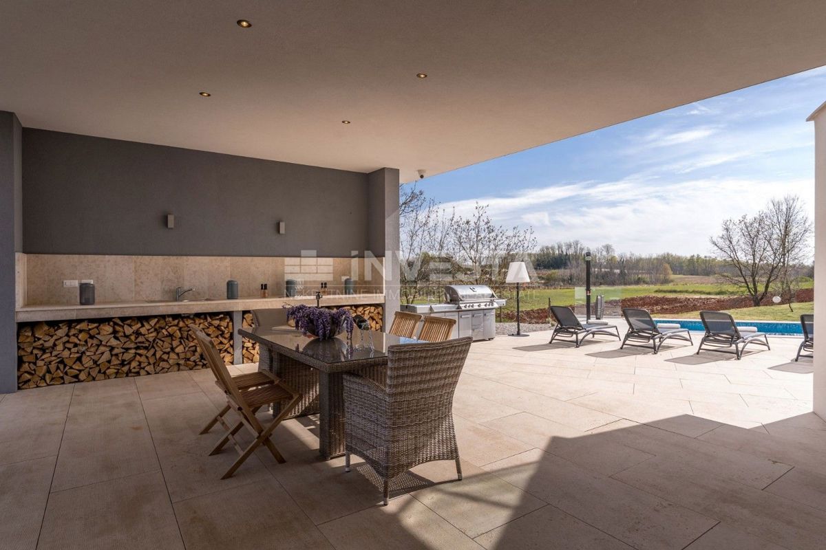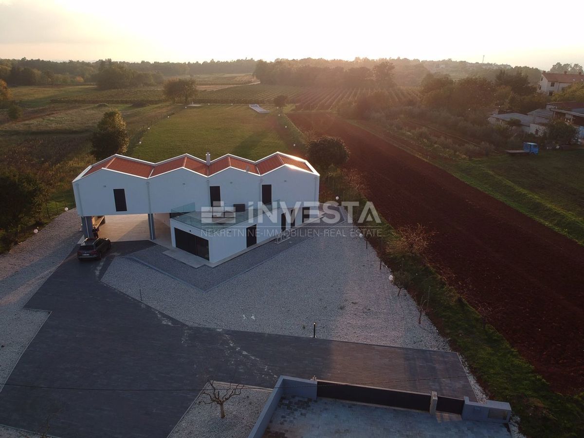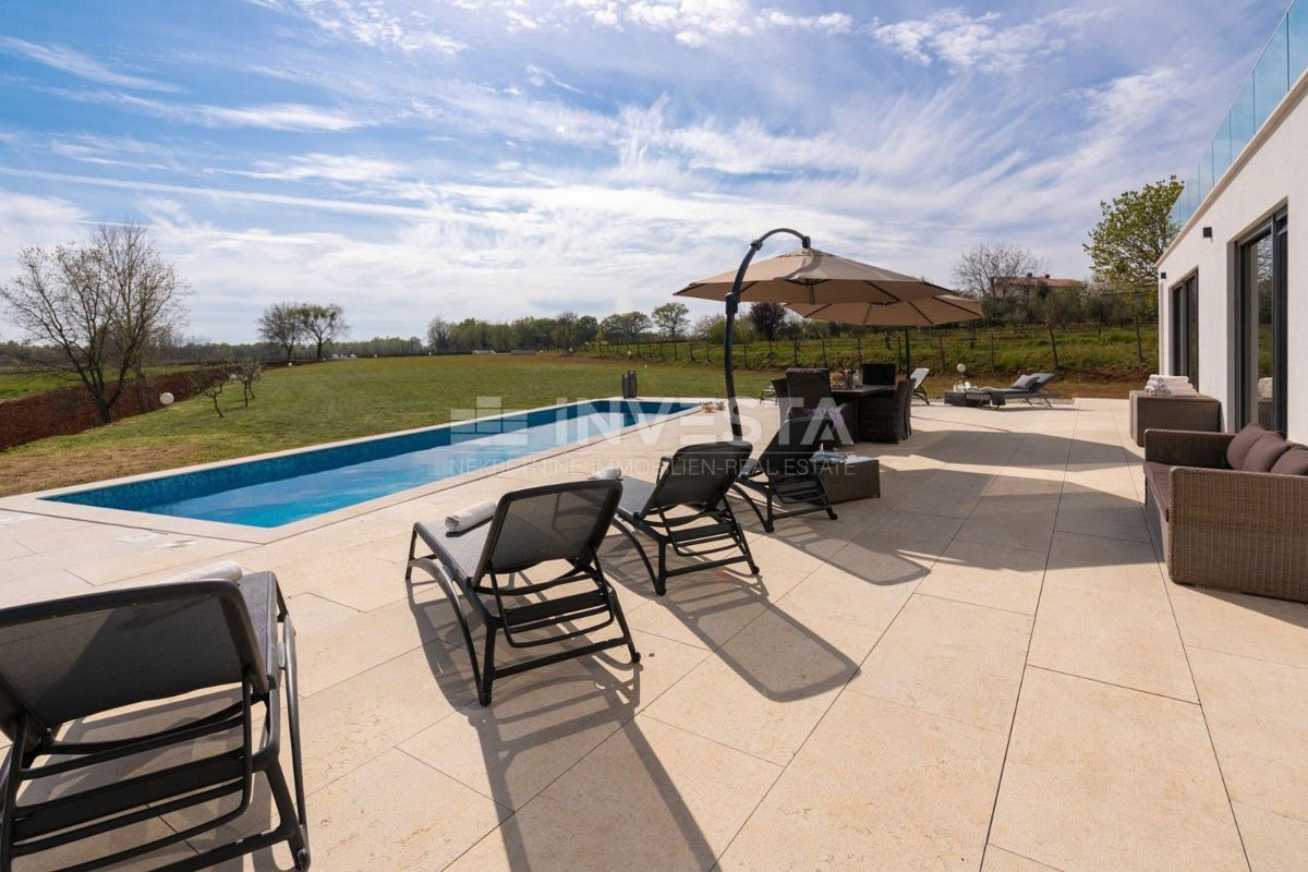 Villa near Poreč is a luxury property that offers modern architecture, spacious interior spaces, and high construction quality. Here is a more detailed overview of the property: Area and layout: Villa area: 454 m² Plot area: 6271 m² The villa is ideally