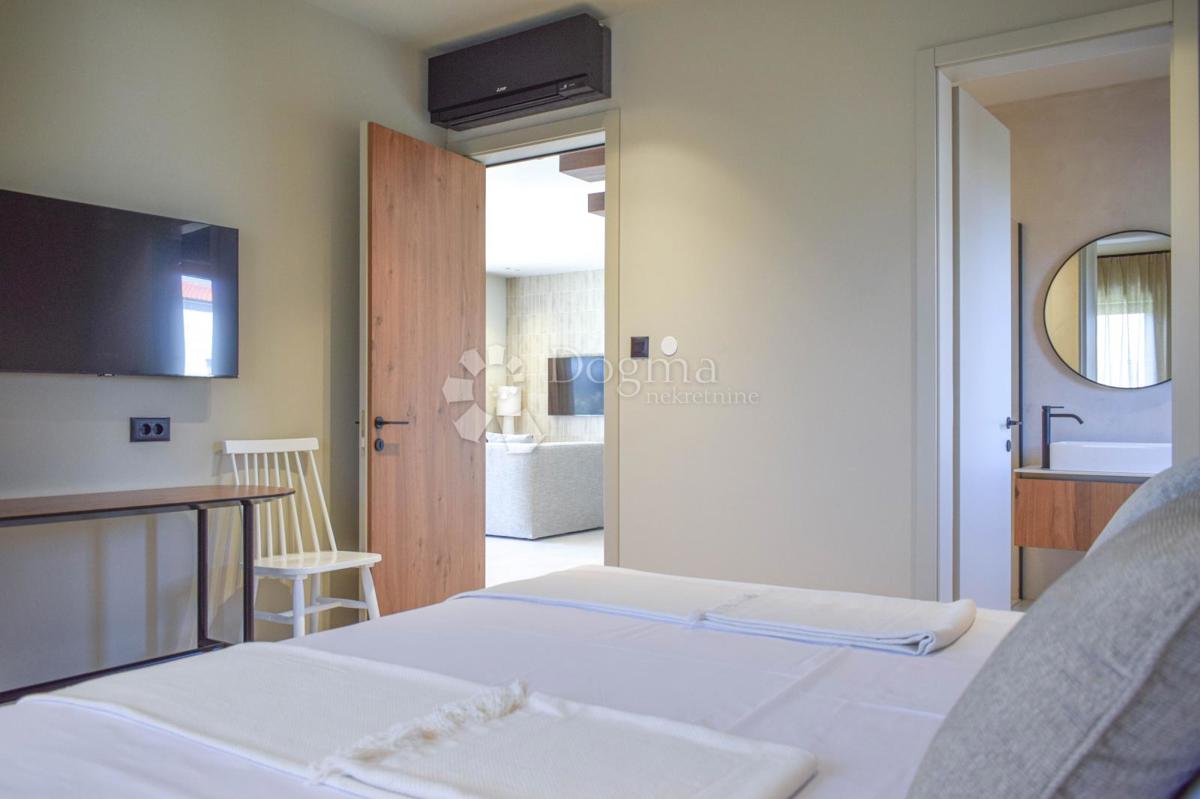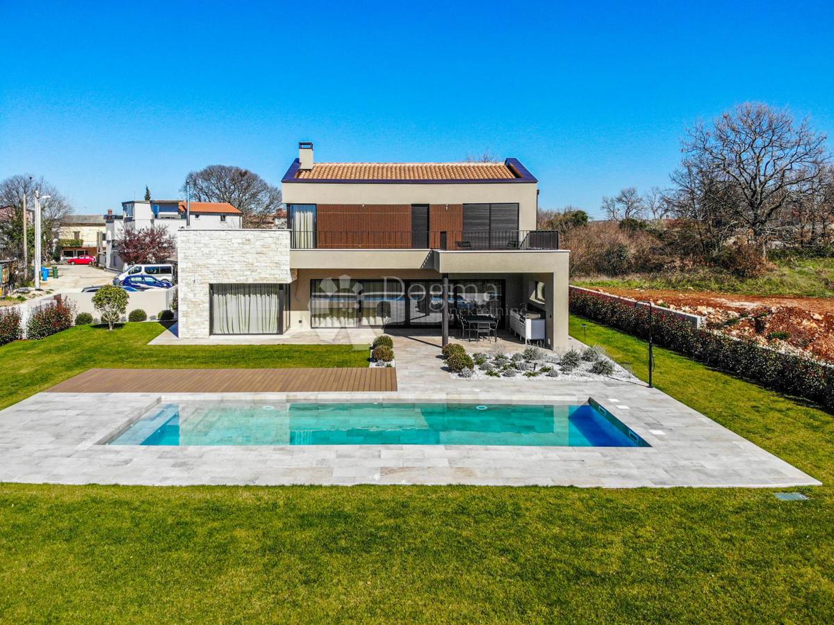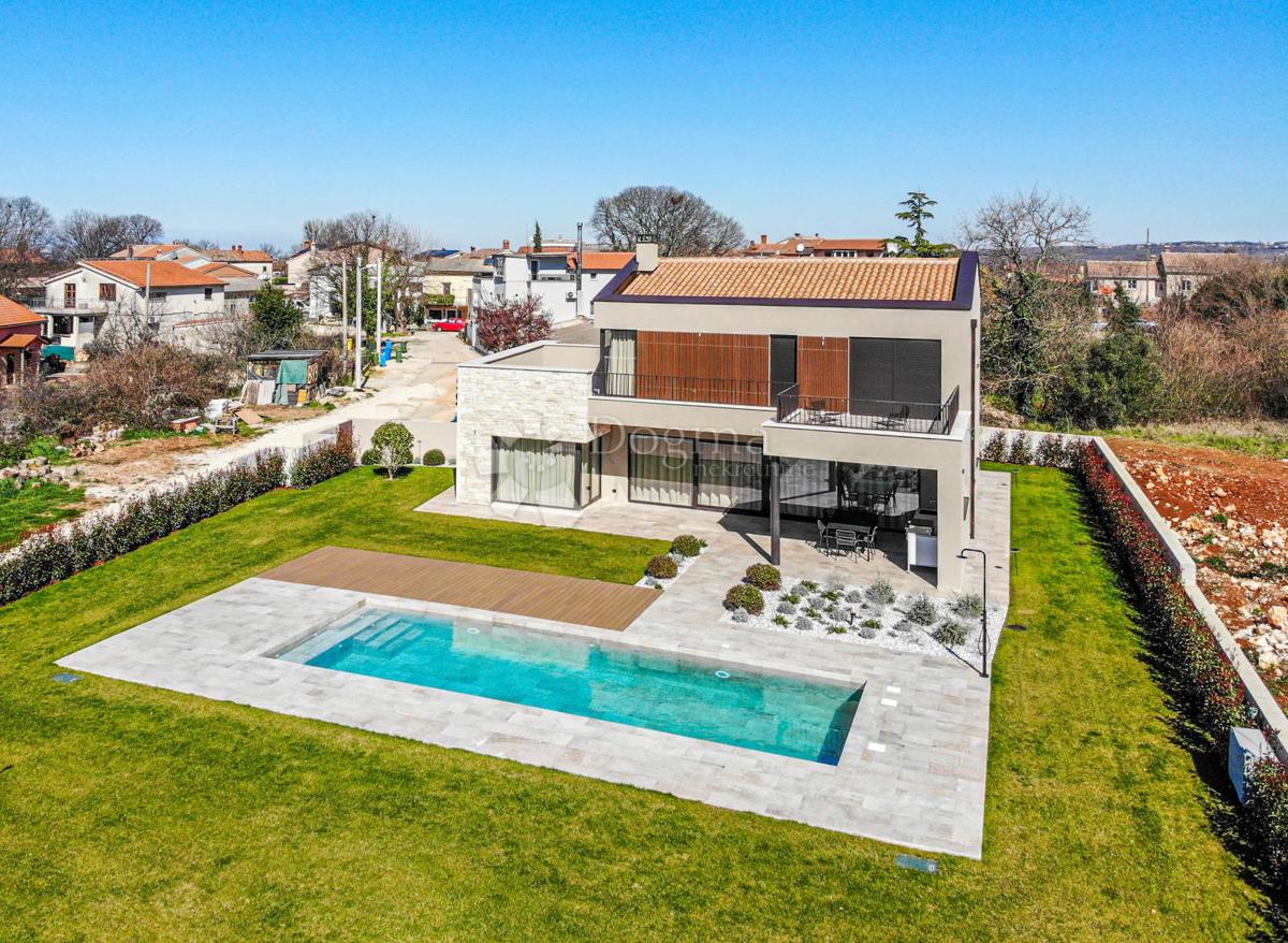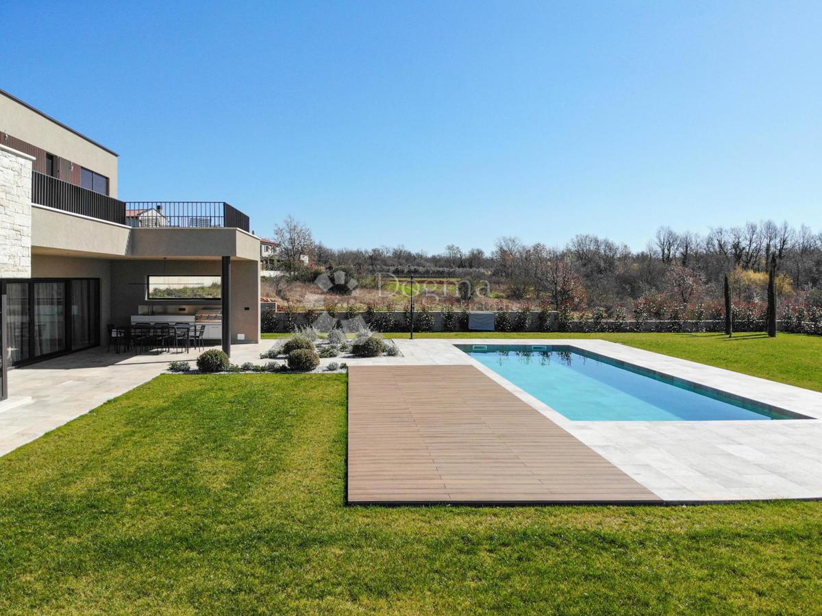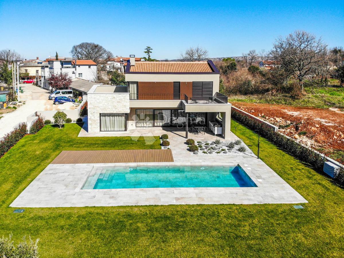 For sale is a luxurious, modern villa in the vicinity of Poreč, covering an area of 220 m², located on a spacious plot of 1,002 m². This impressive property has recently been completed and built to the latest and highest construction standards, offering e
