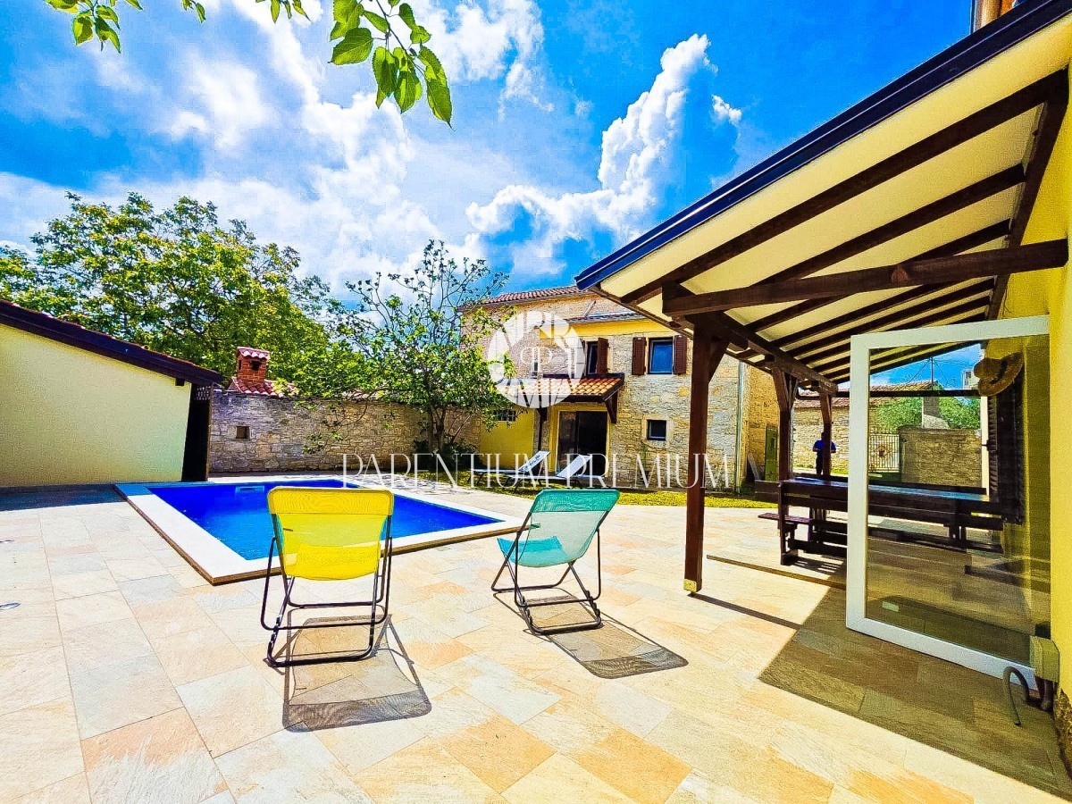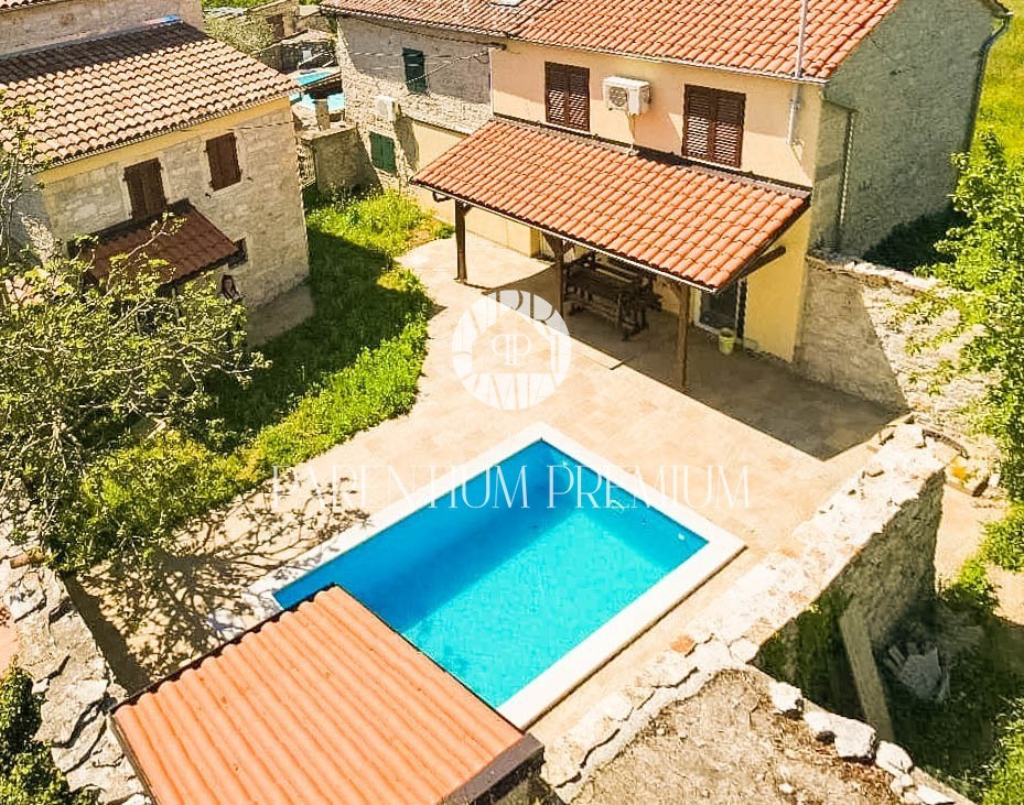 Istria, Poreč - surroundings A nice, intimate property for sale in the vicinity of Poreč with 2 residential buildings and a swimming pool with a total area of 100m2. Both residential units are oriented towards the courtyard and bring great intimacy to
