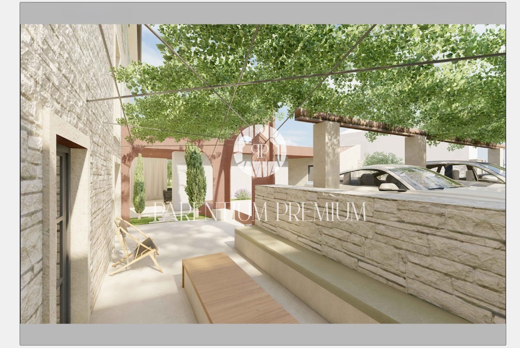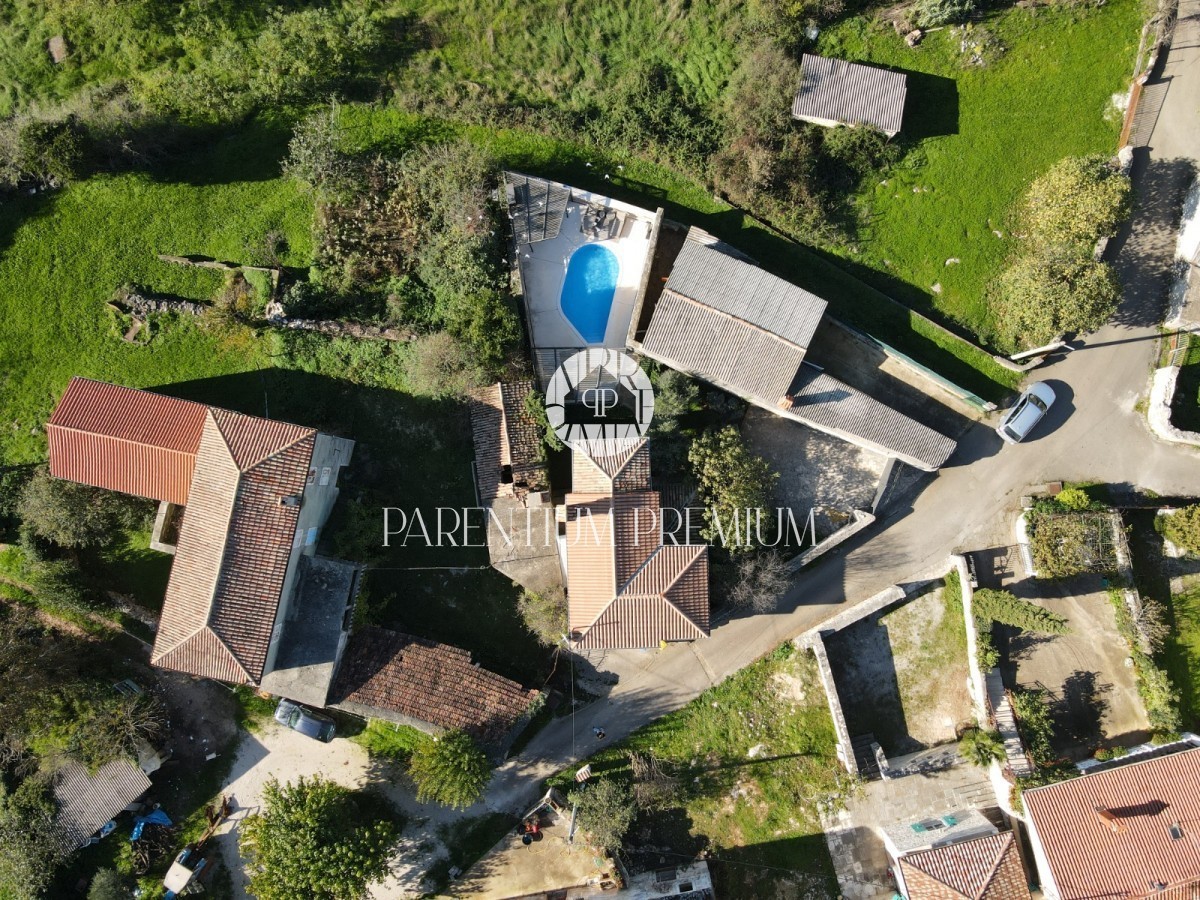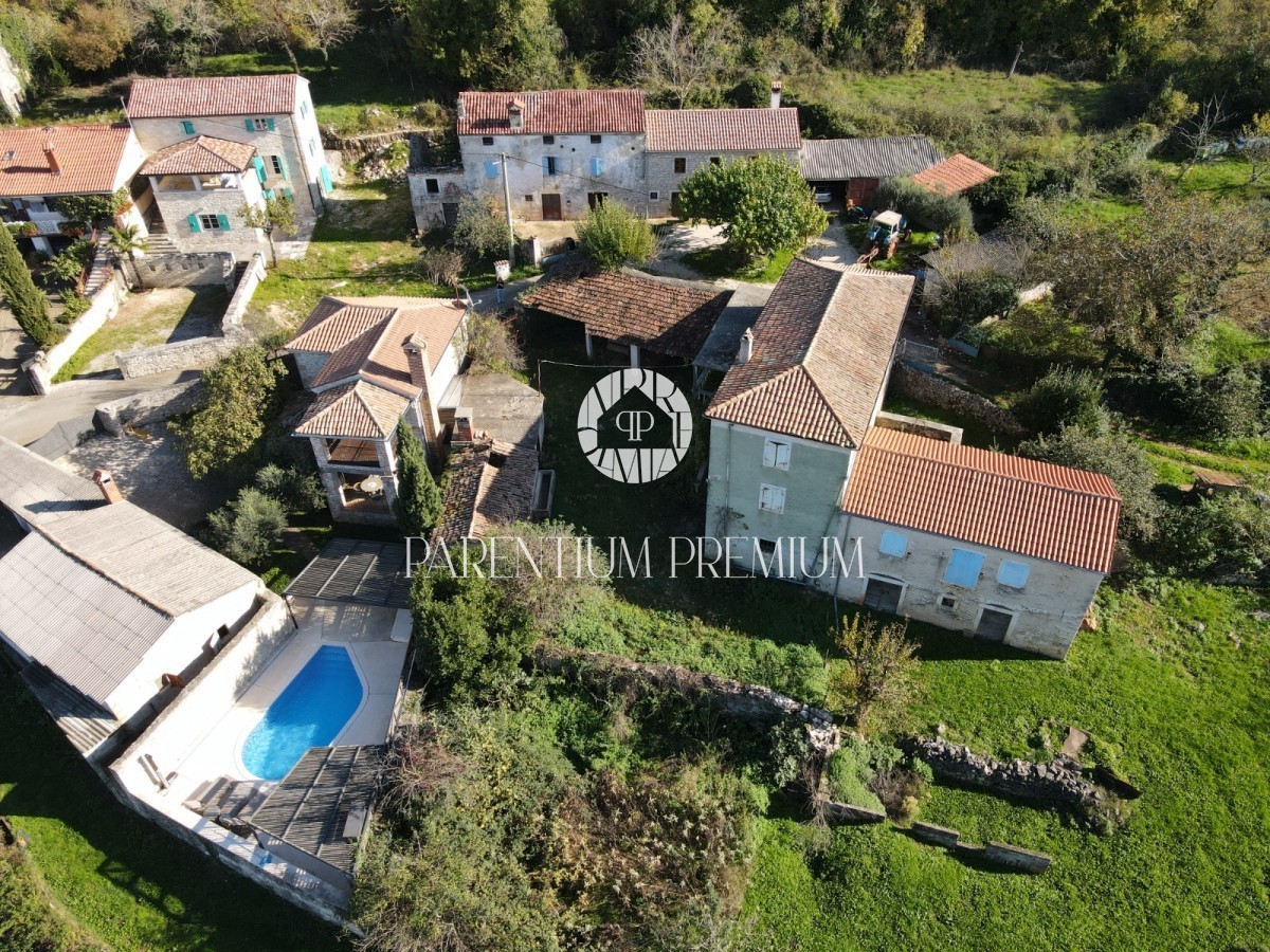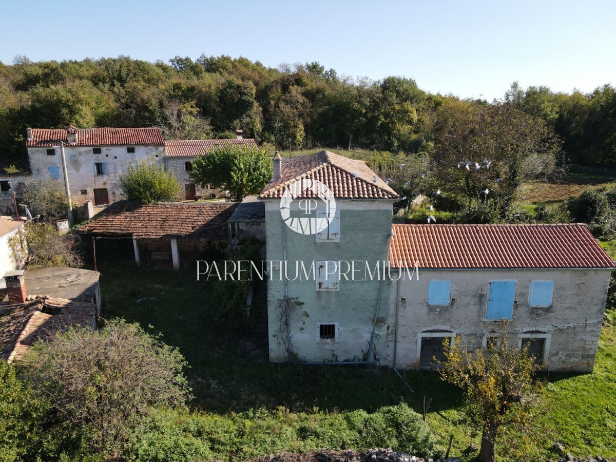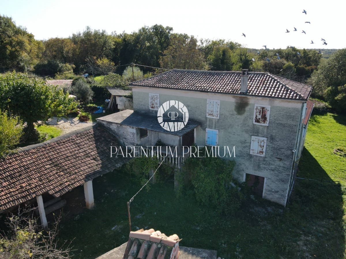 Istria, Tinjan An Istrian estate with a preliminary project is for sale near Tinjan, located on a plot of 660m2. The estate consists of a house spread over three floors, a 55m2 outbuilding, a 50m2 canopy and a 435m2 yard. The ground floor of the house wo