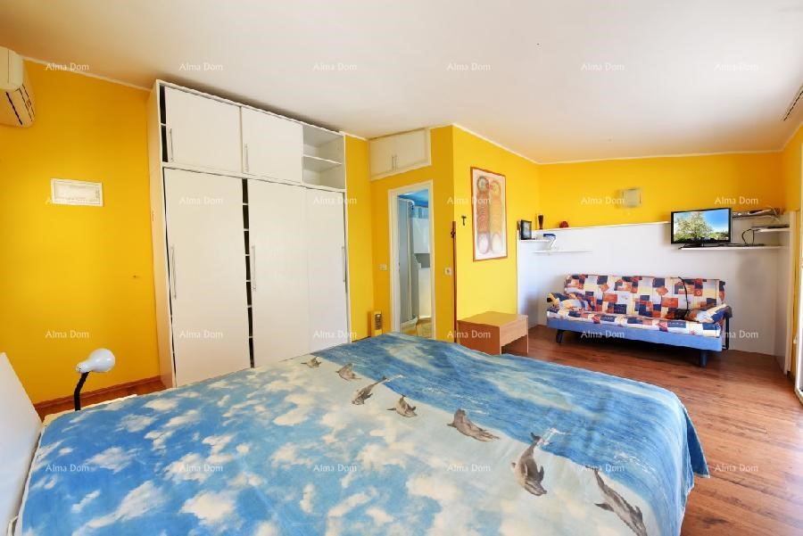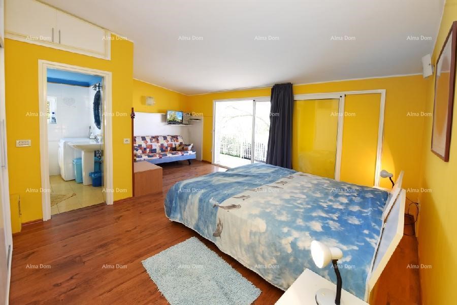 We sell detached house with three apartments,work shop in Istrian stile.Each apartment has two bedrooms.There is another separate apartment with one bedroom,bathroom,kitchen and big yard cca 1020 m2. In each apartment,and in tavern there is air condit