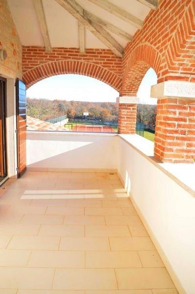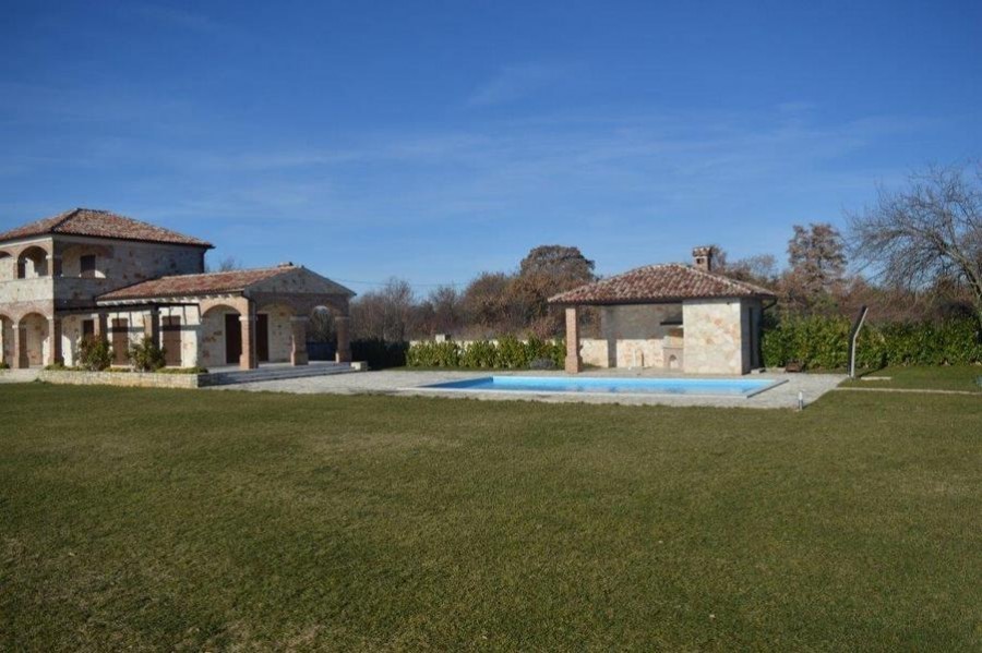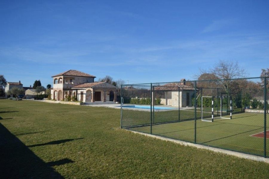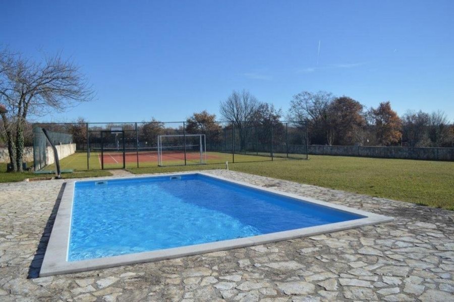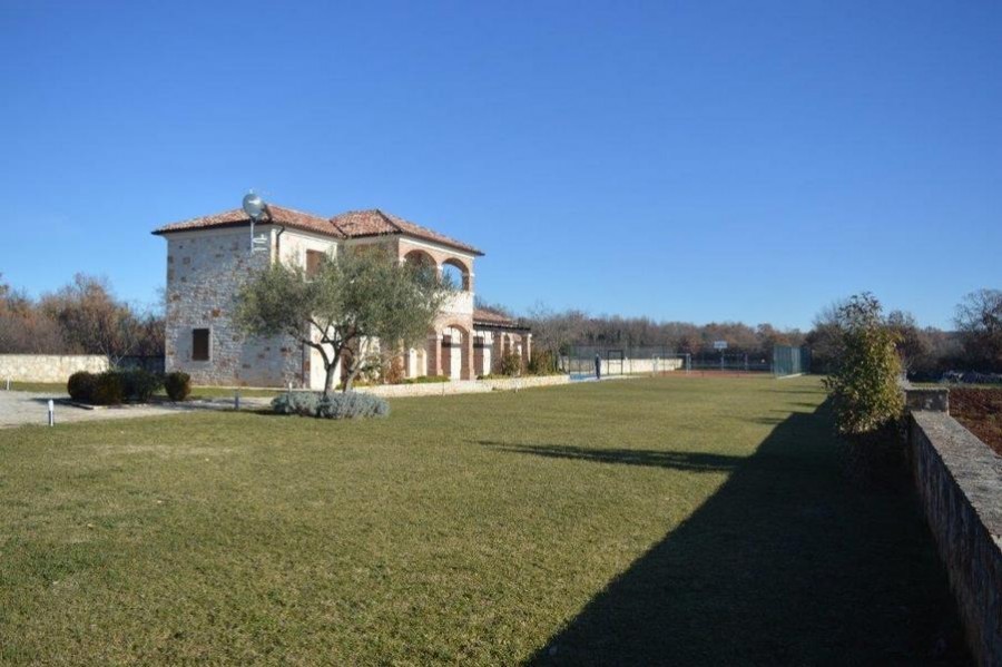 Beautiful stone villa, in a quiet location, guaranteed by the intimate. Large landscaped garden of 4000 m2 with lawn irrigation, swimming pool and sports court. The ground floor villa has a living room, kitchen and dining room with fireplace, and 2 bedroo
