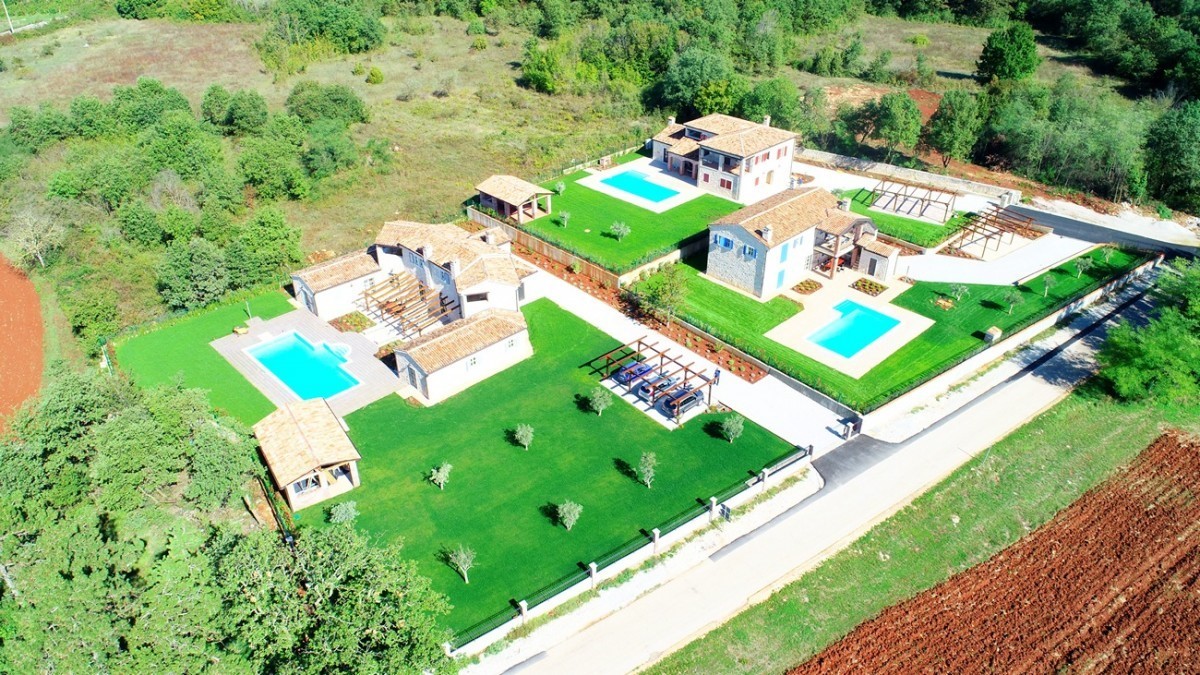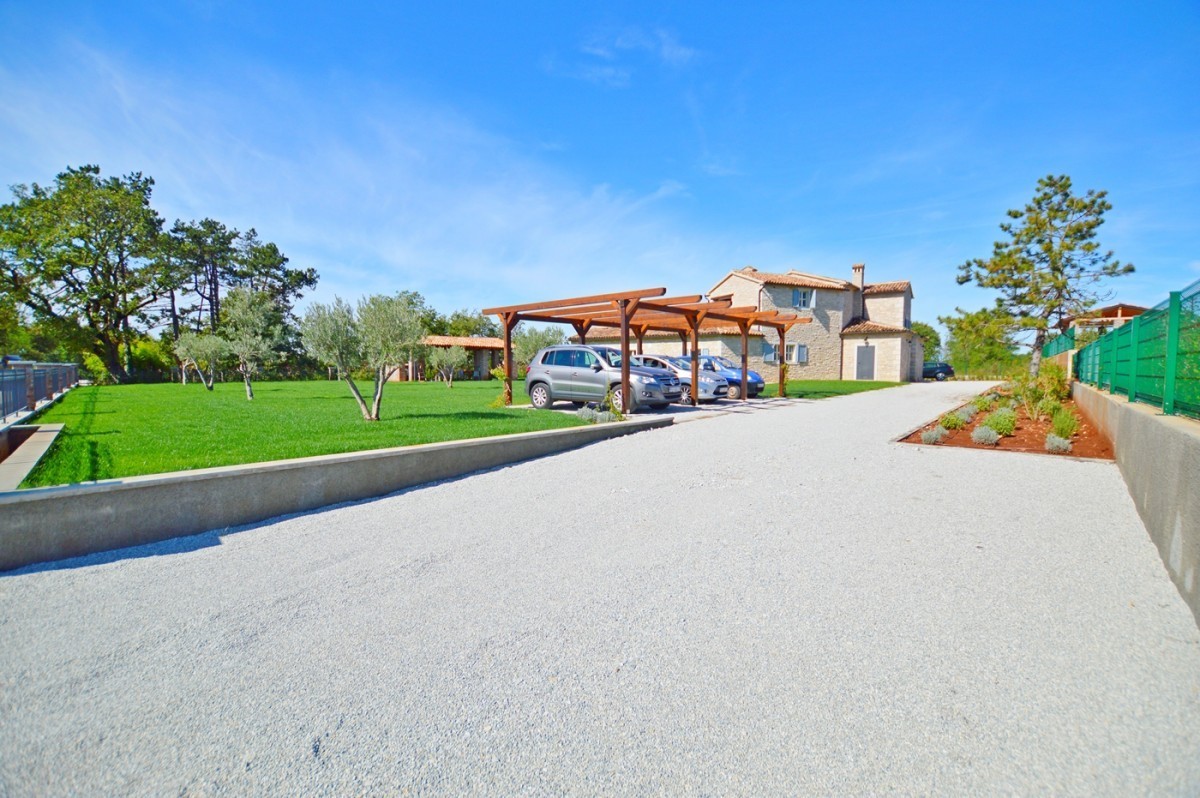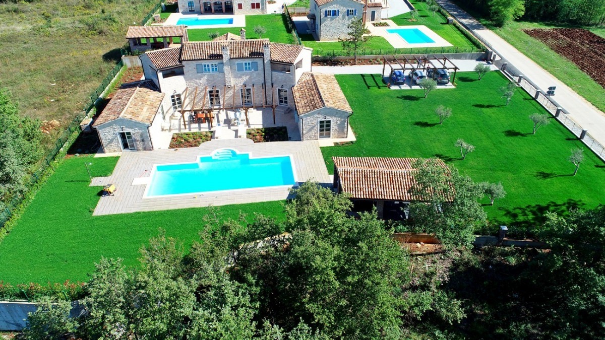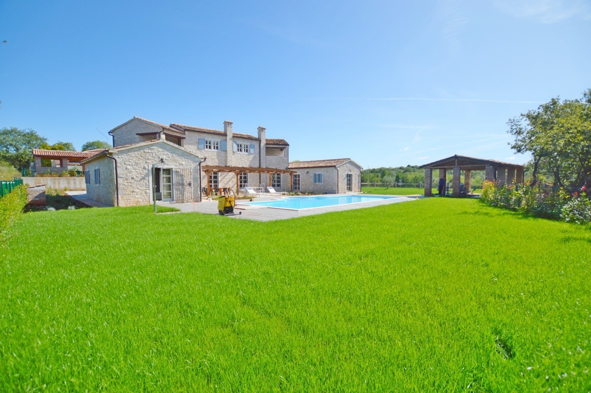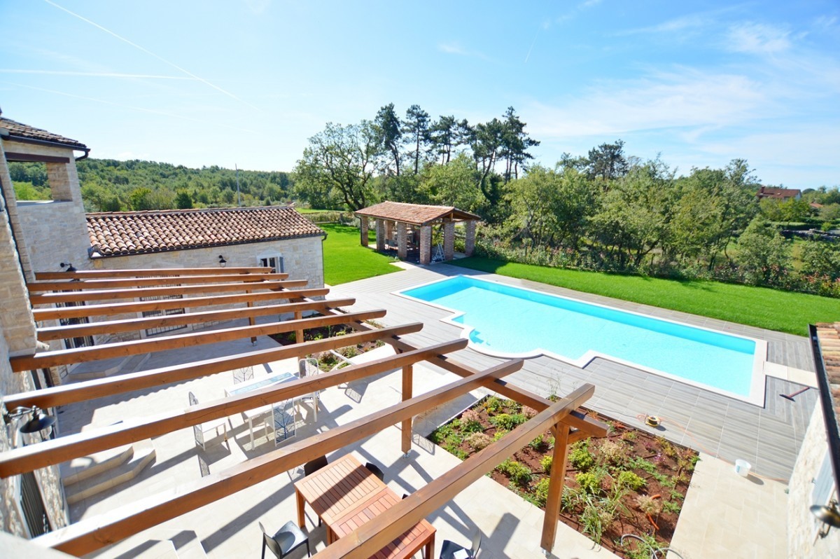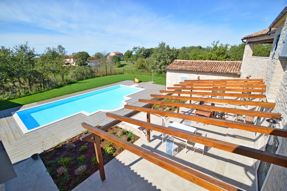 Luxury villa for sale in Porec, Istria. The villa is located 10 km from Porec in a quiet location. The ground floor consists of a living room, kitchen, two bedrooms, two bathrooms, toilet and storage. The first floor consists of two bedrooms with bathroom