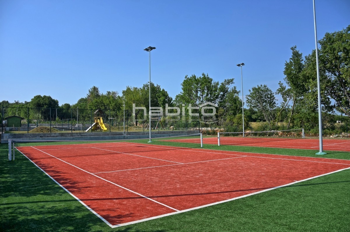 This beautiful villa is set within a luxury project with 5600 m2 of private land offering to the guests of these 4 villas an organic garden with seasonal vegetables, open-air fitness, 2 tennis courts, 2 bocce courts, as well as courts for handball, footba
