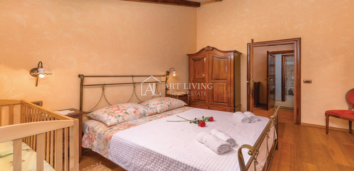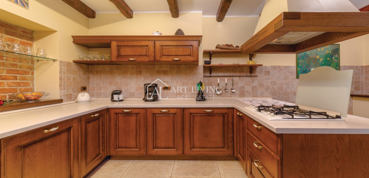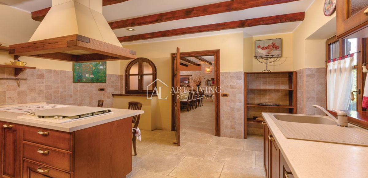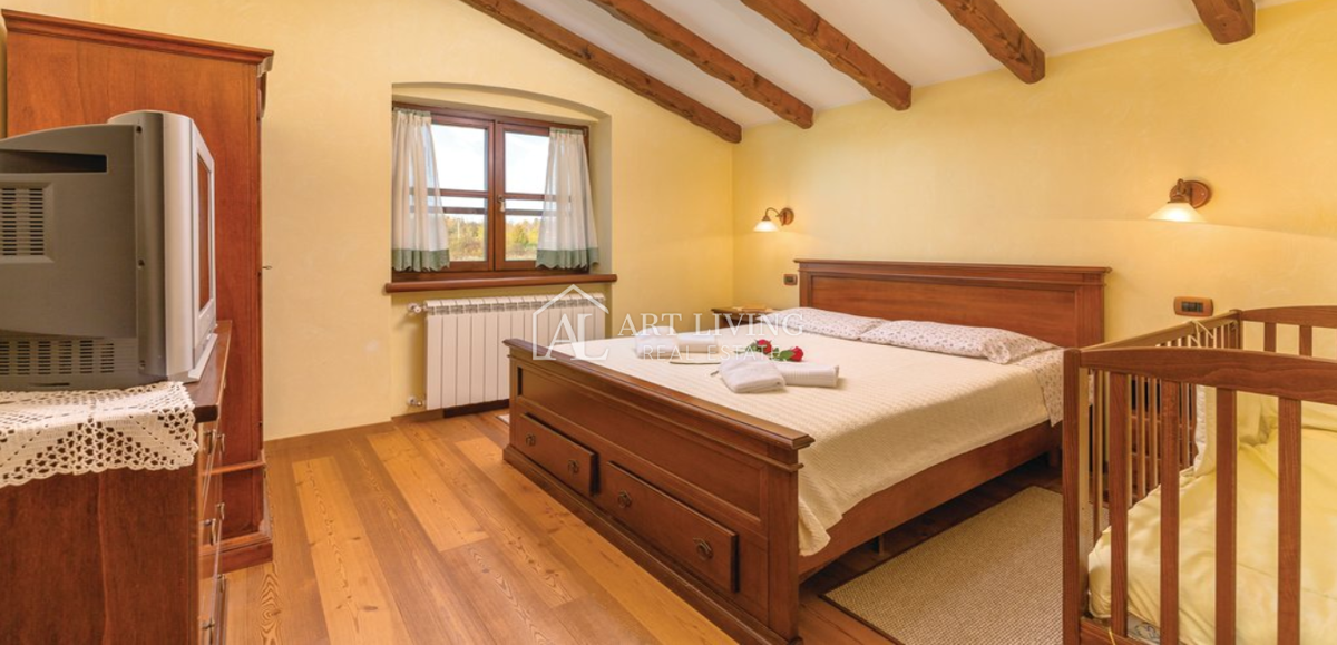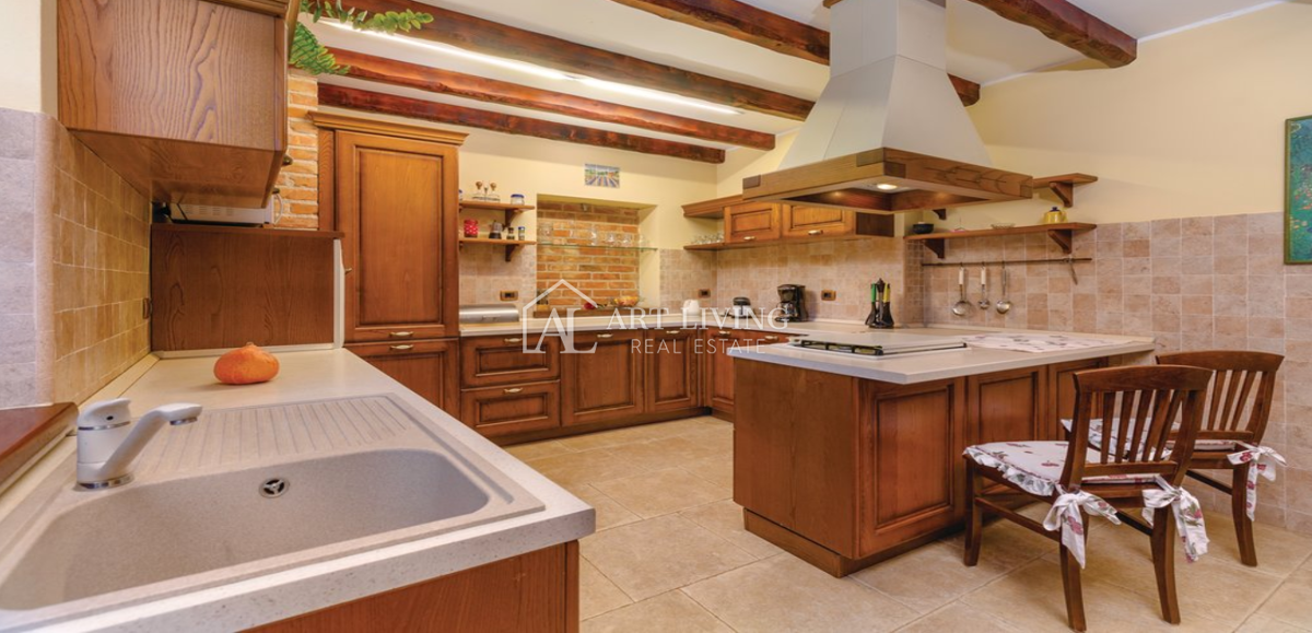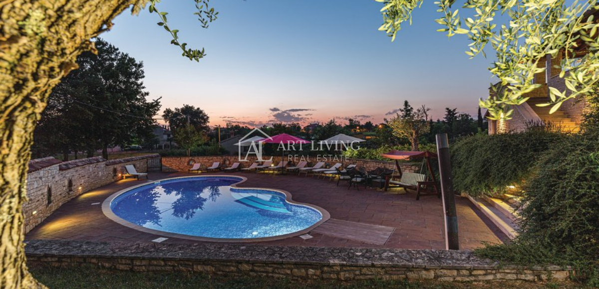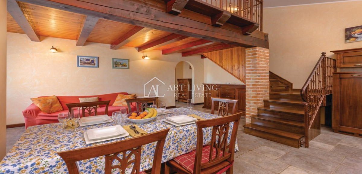 Istria, Porec, Visnjan A beautiful stone house with wooden details and a large pool is for sale. The house is located in a quiet location surrounded by nature and greenery. It is 15 km away from the ugly Porec and the sea. 40 km from the border crossing